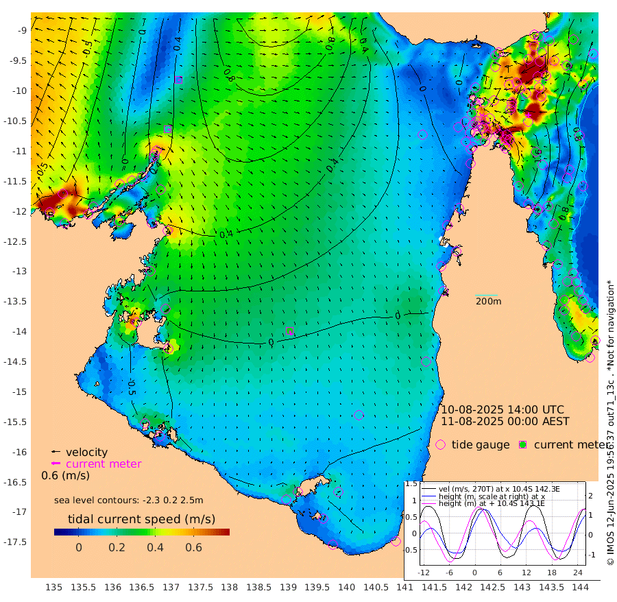 18cm/s 113T +3cm/s rms + 7cm/s -42T. ARA-GOC87 57m 32cm/s 167T +3cm/s rms + 2cm/s -2T. ARA-GOC87 60m 7cm/s 111T +2cm/s rms + 3cm/s 61T. ARA-GOC87 47m 188cm Daru 176cm Bobo Island 93cm Meer Island Barge 132cm Bramble Cay 171cm Unnamed Cay 169cm Pearce Cay 156cm Stephens Island 169cm Merrie England Shoals 193cm Mutacomal Reef 141cm Darnley Island Barge 102cm East Cay 160cm Yorke Island Barge 175cm Rennel Island 163cm Aureed Island 175cm Dungeness Reef 165cm Zagai Island 172cm Yam Island 145cm Dauan Island 132cm Saibai Island 135cm Phipi Reef 177cm Warrior Reef - West 117cm Mabuiag Island Barge 170cm Half Way Island 179cm Coconut Island 183cm Dugong Islet 177cm Poll Island 177cm Kirkcaldie Reef 163cm Suarji Island 169cm Sue Islet 94cm Hawkesbury Island 160cm Alert Patches 167cm Twin Island 95cm Badu Island 167cm St Pauls (Moa Island) 114cm Kubin (Moa Island) 141cm Ince Point 125cm Thursday Island 129cm Nardana Patches 111cm Turtle Head 88cm Round Island 79cm Goods Island 50cm Booby Island 63cm White Rocks Area 23cm Carpentaria 144cm Papou Point 59cm Bampfield Head 34cm Crab Island 61cm Red Wallis Island 102cm Packe Island 193cm Harrington Reef 72cm Herald Camp 44cm Sharp Point 87cm Red Island Point 117cm Possession Island 165cm Alpha Rock 179cm Frederick Point 196cm Wyborn Reef Light 196cm Tetley Island 99cm Triangle Reef 194cm Turtle Head Island 96cm Maclennan Cay 63cm Raine Island 159cm Mcsweeny Reef 142cm Collette Reef 96cm Shadwell Reef 152cm Hannibal Island 137cm Round Point 21cm Vrilya Point 117cm Cape Grenville 108cm Hicks Island 113cm Sir Charles Hardy Island 36cm Harvey Island 98cm Kay Reef 77cm Rocky Island 68cm Chapman Island 65cm Ham Reef 76cm Jubilee Reef 73cm Night Island 69cm Unnamed Reef No. 3 80cm Morris Island 70cm 1st 3 Mile Opening 75cm Creech Reef 86cm Fife Island 78cm Eden Reef 80cm Stanley Island 89cm Normanby River 12cm Yabooma Island 30cm Hutchison River 3cm Elcho Island -1cm North West Crocodile Island 43cm Cape Wessel 33cm Stevens Island 81cm Guluwuru Island 10cm Hopeful Bay 29cm Auster Point 32cm Two Island Bay 59cm Cadell Strait 185cm Mallison Island 60cm Melville Bay (Gove Harbour) 69cm Truant Island 44cm Cape Arnhem 9cm Cape Grey -7cm Hawk Island -56cm Milner Bay (Groote Eylandt) -51cm Cape Beatrice -84cm West Island -96cm Centre Island -72cm Mornington Island -65cm West Wellesley Islands -94cm Bountiful Island -129cm Albert River Mouth -161cm Sweers Island -128cm Karumba -32cm Nassau River Offshore 6cm Christmas Creek 11cm Archer River 28cm Boyd Point 20cm Weipa (Humbug Point) 14cm Pennefather River 21cm Cullen Point