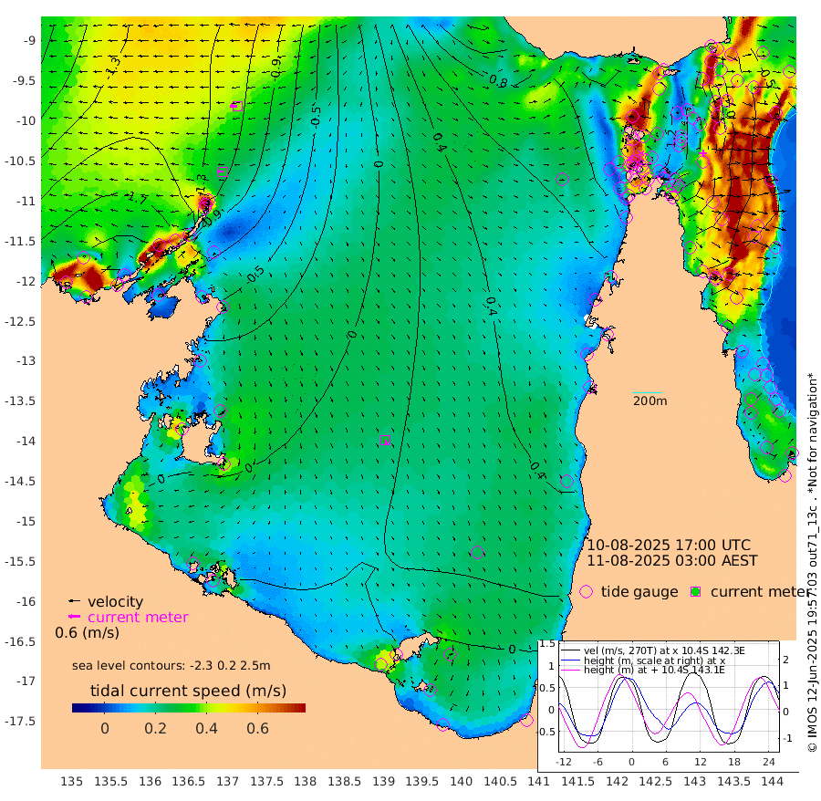 30cm/s -83T +3cm/s rms + 7cm/s -42T. ARA-GOC87 57m 28cm/s 171T +3cm/s rms + 2cm/s -2T. ARA-GOC87 60m 40cm/s -90T +2cm/s rms + 3cm/s 61T. ARA-GOC87 47m 28cm Daru 7cm Bobo Island -43cm Meer Island Barge -39cm Bramble Cay -12cm Unnamed Cay -14cm Pearce Cay -23cm Stephens Island -21cm Merrie England Shoals 20cm Mutacomal Reef -22cm Darnley Island Barge -44cm East Cay 2cm Yorke Island Barge 7cm Rennel Island 10cm Aureed Island 35cm Dungeness Reef 92cm Zagai Island 96cm Yam Island 150cm Dauan Island 146cm Saibai Island 126cm Phipi Reef 113cm Warrior Reef - West 117cm Mabuiag Island Barge 3cm Half Way Island 38cm Coconut Island 22cm Dugong Islet 64cm Poll Island 59cm Kirkcaldie Reef 94cm Suarji Island 70cm Sue Islet 82cm Hawkesbury Island 92cm Alert Patches 90cm Twin Island 92cm Badu Island 108cm St Pauls (Moa Island) 90cm Kubin (Moa Island) 100cm Ince Point 97cm Thursday Island 100cm Nardana Patches 92cm Turtle Head 82cm Round Island 74cm Goods Island 74cm Booby Island 64cm White Rocks Area 79cm Carpentaria 85cm Papou Point 69cm Bampfield Head 71cm Crab Island 85cm Red Wallis Island 95cm Packe Island 26cm Harrington Reef 97cm Herald Camp 44cm Sharp Point 76cm Red Island Point 76cm Possession Island 84cm Alpha Rock 66cm Frederick Point 27cm Wyborn Reef Light 41cm Tetley Island -14cm Triangle Reef 1cm Turtle Head Island -30cm Maclennan Cay -44cm Raine Island -8cm Mcsweeny Reef -15cm Collette Reef -28cm Shadwell Reef -26cm Hannibal Island -40cm Round Point 68cm Vrilya Point -35cm Cape Grenville -39cm Hicks Island -27cm Sir Charles Hardy Island -10cm Harvey Island -48cm Kay Reef -45cm Rocky Island -45cm Chapman Island -41cm Ham Reef -44cm Jubilee Reef -35cm Night Island -40cm Unnamed Reef No. 3 -51cm Morris Island -49cm 1st 3 Mile Opening -45cm Creech Reef -41cm Fife Island -71cm Eden Reef -54cm Stanley Island -67cm Normanby River -211cm Yabooma Island -236cm Hutchison River -208cm Elcho Island -198cm North West Crocodile Island -131cm Cape Wessel -187cm Stevens Island -111cm Guluwuru Island -175cm Hopeful Bay -157cm Auster Point -155cm Two Island Bay -193cm Cadell Strait -28cm Mallison Island -108cm Melville Bay (Gove Harbour) -110cm Truant Island -65cm Cape Arnhem -61cm Cape Grey -44cm Hawk Island -42cm Milner Bay (Groote Eylandt) -26cm Cape Beatrice 2cm West Island 1cm Centre Island 17cm Mornington Island 13cm West Wellesley Islands -14cm Bountiful Island -31cm Albert River Mouth -61cm Sweers Island -17cm Karumba 39cm Nassau River Offshore 61cm Christmas Creek 48cm Archer River 61cm Boyd Point 54cm Weipa (Humbug Point) 48cm Pennefather River 76cm Cullen Point