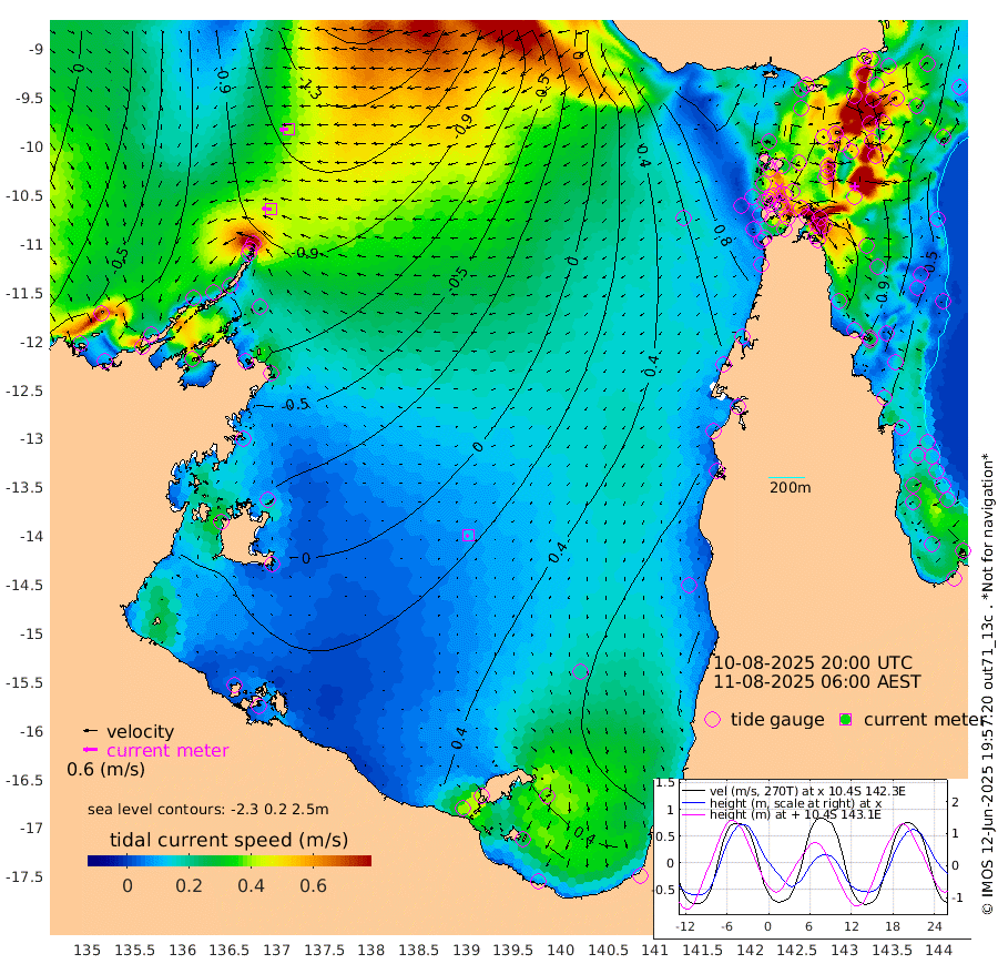 40cm/s -88T +3cm/s rms + 7cm/s -42T. ARA-GOC87 57m 13cm/s -125T +3cm/s rms + 2cm/s -2T. ARA-GOC87 60m 40cm/s -96T +2cm/s rms + 3cm/s 61T. ARA-GOC87 47m -118cm Daru -122cm Bobo Island -57cm Meer Island Barge -87cm Bramble Cay -114cm Unnamed Cay -113cm Pearce Cay -103cm Stephens Island -113cm Merrie England Shoals -122cm Mutacomal Reef -94cm Darnley Island Barge -61cm East Cay -107cm Yorke Island Barge -108cm Rennel Island -107cm Aureed Island -100cm Dungeness Reef -91cm Zagai Island -81cm Yam Island -29cm Dauan Island -38cm Saibai Island -27cm Phipi Reef -79cm Warrior Reef - West -31cm Mabuiag Island Barge -107cm Half Way Island -112cm Coconut Island -110cm Dugong Islet -99cm Poll Island -94cm Kirkcaldie Reef -81cm Suarji Island -99cm Sue Islet 33cm Hawkesbury Island -69cm Alert Patches -77cm Twin Island 18cm Badu Island -75cm St Pauls (Moa Island) 5cm Kubin (Moa Island) -42cm Ince Point -22cm Thursday Island -27cm Nardana Patches 7cm Turtle Head 22cm Round Island 43cm Goods Island 69cm Booby Island 50cm White Rocks Area 59cm Carpentaria -66cm Papou Point 50cm Bampfield Head 71cm Crab Island 65cm Red Wallis Island 33cm Packe Island -124cm Harrington Reef 68cm Herald Camp -19cm Sharp Point 9cm Red Island Point -34cm Possession Island -86cm Alpha Rock -99cm Frederick Point -131cm Wyborn Reef Light -128cm Tetley Island -54cm Triangle Reef -137cm Turtle Head Island -51cm Maclennan Cay -29cm Raine Island -105cm Mcsweeny Reef -92cm Collette Reef -55cm Shadwell Reef -102cm Hannibal Island -88cm Round Point 71cm Vrilya Point -71cm Cape Grenville -64cm Hicks Island -58cm Sir Charles Hardy Island -21cm Harvey Island -59cm Kay Reef -41cm Rocky Island -32cm Chapman Island -30cm Ham Reef -41cm Jubilee Reef -35cm Night Island -30cm Unnamed Reef No. 3 -43cm Morris Island -35cm 1st 3 Mile Opening -36cm Creech Reef -45cm Fife Island -41cm Eden Reef -41cm Stanley Island -53cm Normanby River -95cm Yabooma Island -123cm Hutchison River -94cm Elcho Island -84cm North West Crocodile Island -119cm Cape Wessel -124cm Stevens Island -143cm Guluwuru Island -94cm Hopeful Bay -113cm Auster Point -109cm Two Island Bay -143cm Cadell Strait -210cm Mallison Island -122cm Melville Bay (Gove Harbour) -134cm Truant Island -89cm Cape Arnhem -66cm Cape Grey -38cm Hawk Island -14cm Milner Bay (Groote Eylandt) 4cm Cape Beatrice 34cm West Island 45cm Centre Island 72cm Mornington Island 64cm West Wellesley Islands 75cm Bountiful Island 97cm Albert River Mouth 80cm Sweers Island 111cm Karumba 87cm Nassau River Offshore 85cm Christmas Creek 75cm Archer River 61cm Boyd Point 78cm Weipa (Humbug Point) 57cm Pennefather River 79cm Cullen Point
