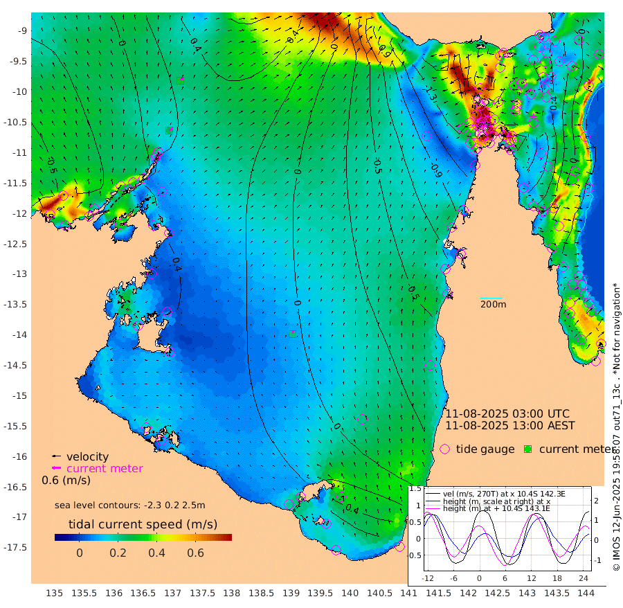 25cm/s 59T +3cm/s rms + 7cm/s -42T. ARA-GOC87 57m 21cm/s 5T +3cm/s rms + 2cm/s -2T. ARA-GOC87 60m 30cm/s 52T +2cm/s rms + 3cm/s 61T. ARA-GOC87 47m 69cm Daru 66cm Bobo Island -7cm Meer Island Barge 16cm Bramble Cay 46cm Unnamed Cay 44cm Pearce Cay 33cm Stephens Island 44cm Merrie England Shoals 64cm Mutacomal Reef 29cm Darnley Island Barge -8cm East Cay 49cm Yorke Island Barge 45cm Rennel Island 54cm Aureed Island 52cm Dungeness Reef 71cm Zagai Island 52cm Yam Island 27cm Dauan Island 37cm Saibai Island 45cm Phipi Reef 64cm Warrior Reef - West 5cm Mabuiag Island Barge 42cm Half Way Island 64cm Coconut Island 46cm Dugong Islet 57cm Poll Island 49cm Kirkcaldie Reef 56cm Suarji Island 62cm Sue Islet -129cm Hawkesbury Island 29cm Alert Patches 34cm Twin Island -90cm Badu Island 42cm St Pauls (Moa Island) -78cm Kubin (Moa Island) -4cm Ince Point -31cm Thursday Island -23cm Nardana Patches -71cm Turtle Head -83cm Round Island -134cm Goods Island -167cm Booby Island -152cm White Rocks Area -147cm Carpentaria 27cm Papou Point -149cm Bampfield Head -139cm Crab Island -158cm Red Wallis Island -109cm Packe Island 63cm Harrington Reef -142cm Herald Camp 26cm Sharp Point -63cm Red Island Point -5cm Possession Island 44cm Alpha Rock 50cm Frederick Point 71cm Wyborn Reef Light 71cm Tetley Island -2cm Triangle Reef 60cm Turtle Head Island -15cm Maclennan Cay -32cm Raine Island 41cm Mcsweeny Reef 33cm Collette Reef -2cm Shadwell Reef 36cm Hannibal Island 14cm Round Point -136cm Vrilya Point 3cm Cape Grenville -3cm Hicks Island -19cm Sir Charles Hardy Island 1cm Harvey Island -13cm Kay Reef -23cm Rocky Island -32cm Chapman Island -34cm Ham Reef -26cm Jubilee Reef -20cm Night Island -34cm Unnamed Reef No. 3 -25cm Morris Island -33cm 1st 3 Mile Opening -30cm Creech Reef -16cm Fife Island -39cm Eden Reef -29cm Stanley Island -26cm Normanby River -30cm Yabooma Island -19cm Hutchison River -21cm Elcho Island -23cm North West Crocodile Island 21cm Cape Wessel 18cm Stevens Island 53cm Guluwuru Island 5cm Hopeful Bay 17cm Auster Point 9cm Two Island Bay 22cm Cadell Strait 150cm Mallison Island 52cm Melville Bay (Gove Harbour) 52cm Truant Island 48cm Cape Arnhem 58cm Cape Grey 60cm Hawk Island 71cm Milner Bay (Groote Eylandt) 57cm Cape Beatrice 66cm West Island 65cm Centre Island 65cm Mornington Island 60cm West Wellesley Islands 71cm Bountiful Island 85cm Albert River Mouth 131cm Sweers Island 81cm Karumba 8cm Nassau River Offshore -38cm Christmas Creek -79cm Archer River -93cm Boyd Point -111cm Weipa (Humbug Point) -86cm Pennefather River -130cm Cullen Point