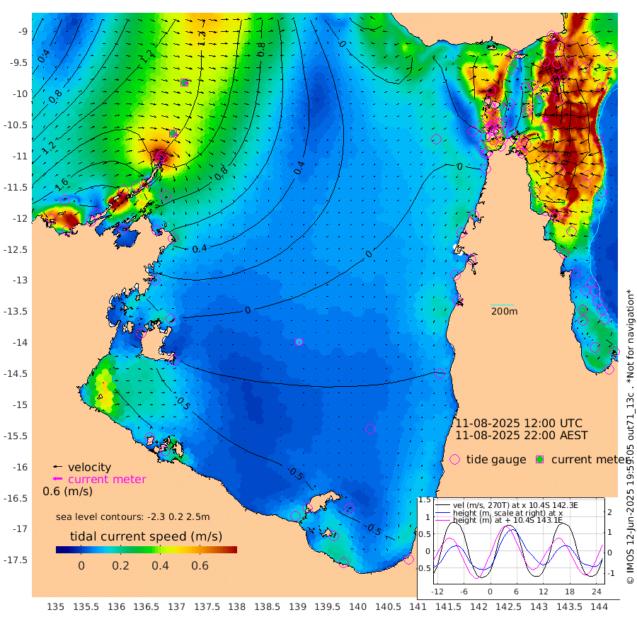 31cm/s 119T +3cm/s rms + 7cm/s -42T. ARA-GOC87 57m 12cm/s 174T +3cm/s rms + 2cm/s -2T. ARA-GOC87 60m 29cm/s 112T +2cm/s rms + 3cm/s 61T. ARA-GOC87 47m 83cm Daru 94cm Bobo Island 104cm Meer Island Barge 117cm Bramble Cay 110cm Unnamed Cay 116cm Pearce Cay 116cm Stephens Island 113cm Merrie England Shoals 92cm Mutacomal Reef 106cm Darnley Island Barge 113cm East Cay 93cm Yorke Island Barge 102cm Rennel Island 88cm Aureed Island 78cm Dungeness Reef 22cm Zagai Island 33cm Yam Island -11cm Dauan Island -23cm Saibai Island -14cm Phipi Reef 19cm Warrior Reef - West 2cm Mabuiag Island Barge 101cm Half Way Island 73cm Coconut Island 96cm Dugong Islet 57cm Poll Island 62cm Kirkcaldie Reef 27cm Suarji Island 43cm Sue Islet 77cm Hawkesbury Island 36cm Alert Patches 41cm Twin Island 51cm Badu Island 25cm St Pauls (Moa Island) 60cm Kubin (Moa Island) 34cm Ince Point 37cm Thursday Island 35cm Nardana Patches 51cm Turtle Head 47cm Round Island 73cm Goods Island 66cm Booby Island 78cm White Rocks Area 29cm Carpentaria 34cm Papou Point 70cm Bampfield Head 40cm Crab Island 61cm Red Wallis Island 59cm Packe Island 92cm Harrington Reef 53cm Herald Camp -14cm Sharp Point 42cm Red Island Point 34cm Possession Island 37cm Alpha Rock 60cm Frederick Point 89cm Wyborn Reef Light 79cm Tetley Island 85cm Triangle Reef 114cm Turtle Head Island 101cm Maclennan Cay 96cm Raine Island 102cm Mcsweeny Reef 97cm Collette Reef 91cm Shadwell Reef 110cm Hannibal Island 122cm Round Point 27cm Vrilya Point 108cm Cape Grenville 110cm Hicks Island 115cm Sir Charles Hardy Island 33cm Harvey Island 112cm Kay Reef 102cm Rocky Island 100cm Chapman Island 96cm Ham Reef 102cm Jubilee Reef 88cm Night Island 97cm Unnamed Reef No. 3 109cm Morris Island 105cm 1st 3 Mile Opening 103cm Creech Reef 102cm Fife Island 129cm Eden Reef 111cm Stanley Island 129cm Normanby River 215cm Yabooma Island 247cm Hutchison River 200cm Elcho Island 190cm North West Crocodile Island 144cm Cape Wessel 183cm Stevens Island 139cm Guluwuru Island 160cm Hopeful Bay 156cm Auster Point 162cm Two Island Bay 211cm Cadell Strait 80cm Mallison Island 120cm Melville Bay (Gove Harbour) 130cm Truant Island 71cm Cape Arnhem 33cm Cape Grey 2cm Hawk Island -46cm Milner Bay (Groote Eylandt) -50cm Cape Beatrice -106cm West Island -117cm Centre Island -112cm Mornington Island -101cm West Wellesley Islands -102cm Bountiful Island -126cm Albert River Mouth -150cm Sweers Island -135cm Karumba -70cm Nassau River Offshore -34cm Christmas Creek 3cm Archer River 17cm Boyd Point 25cm Weipa (Humbug Point) 8cm Pennefather River 19cm Cullen Point