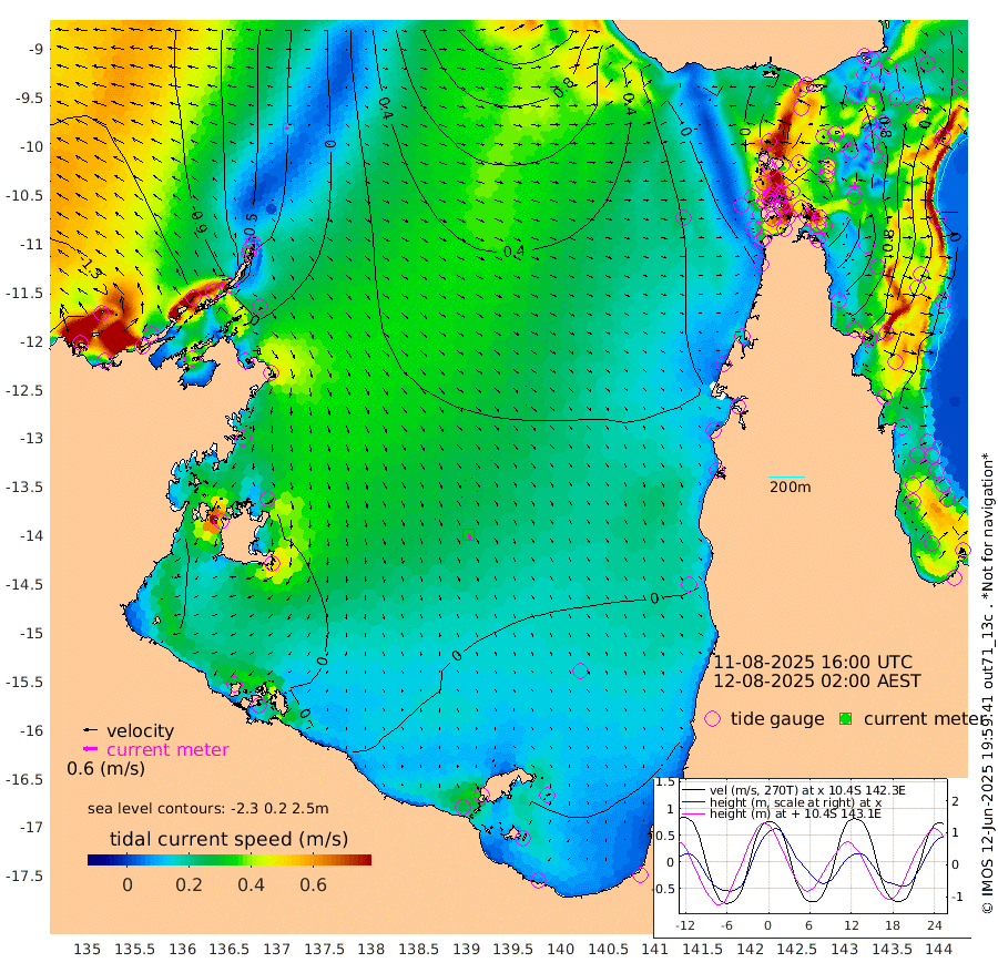 2cm/s -19T +3cm/s rms + 7cm/s -42T. ARA-GOC87 57m 30cm/s 165T +3cm/s rms + 2cm/s -2T. ARA-GOC87 60m 12cm/s -76T +2cm/s rms + 3cm/s 61T. ARA-GOC87 47m 124cm Daru 106cm Bobo Island 23cm Meer Island Barge 48cm Bramble Cay 88cm Unnamed Cay 84cm Pearce Cay 73cm Stephens Island 81cm Merrie England Shoals 120cm Mutacomal Reef 67cm Darnley Island Barge 25cm East Cay 93cm Yorke Island Barge 100cm Rennel Island 97cm Aureed Island 116cm Dungeness Reef 150cm Zagai Island 153cm Yam Island 164cm Dauan Island 160cm Saibai Island 141cm Phipi Reef 166cm Warrior Reef - West 123cm Mabuiag Island Barge 97cm Half Way Island 121cm Coconut Island 115cm Dugong Islet 134cm Poll Island 133cm Kirkcaldie Reef 137cm Suarji Island 138cm Sue Islet 62cm Hawkesbury Island 131cm Alert Patches 137cm Twin Island 75cm Badu Island 150cm St Pauls (Moa Island) 88cm Kubin (Moa Island) 121cm Ince Point 106cm Thursday Island 111cm Nardana Patches 86cm Turtle Head 64cm Round Island 46cm Goods Island 25cm Booby Island 27cm White Rocks Area 25cm Carpentaria 125cm Papou Point 25cm Bampfield Head 24cm Crab Island 40cm Red Wallis Island 74cm Packe Island 122cm Harrington Reef 54cm Herald Camp 52cm Sharp Point 71cm Red Island Point 92cm Possession Island 137cm Alpha Rock 134cm Frederick Point 125cm Wyborn Reef Light 134cm Tetley Island 41cm Triangle Reef 109cm Turtle Head Island 30cm Maclennan Cay 1cm Raine Island 83cm Mcsweeny Reef 69cm Collette Reef 32cm Shadwell Reef 68cm Hannibal Island 47cm Round Point 18cm Vrilya Point 39cm Cape Grenville 32cm Hicks Island 41cm Sir Charles Hardy Island 13cm Harvey Island 19cm Kay Reef 9cm Rocky Island 0cm Chapman Island 4cm Ham Reef 10cm Jubilee Reef 12cm Night Island 5cm Unnamed Reef No. 3 7cm Morris Island 1cm 1st 3 Mile Opening 7cm Creech Reef 17cm Fife Island -8cm Eden Reef 4cm Stanley Island 3cm Normanby River -120cm Yabooma Island -122cm Hutchison River -121cm Elcho Island -116cm North West Crocodile Island -40cm Cape Wessel -84cm Stevens Island 5cm Guluwuru Island -95cm Hopeful Bay -68cm Auster Point -61cm Two Island Bay -63cm Cadell Strait 138cm Mallison Island -13cm Melville Bay (Gove Harbour) -8cm Truant Island 1cm Cape Arnhem -16cm Cape Grey -20cm Hawk Island -44cm Milner Bay (Groote Eylandt) -34cm Cape Beatrice -37cm West Island -46cm Centre Island -27cm Mornington Island -26cm West Wellesley Islands -58cm Bountiful Island -84cm Albert River Mouth -116cm Sweers Island -78cm Karumba -3cm Nassau River Offshore 23cm Christmas Creek 10cm Archer River 27cm Boyd Point 12cm Weipa (Humbug Point) 12cm Pennefather River 23cm Cullen Point