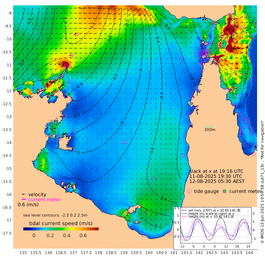 41cm/s -87T +3cm/s rms + 7cm/s -42T. ARA-GOC87 57m 12cm/s -166T +3cm/s rms + 2cm/s -2T. ARA-GOC87 60m 45cm/s -96T +2cm/s rms + 3cm/s 61T. ARA-GOC87 47m -96cm Daru -106cm Bobo Island -74cm Meer Island Barge -96cm Bramble Cay -105cm Unnamed Cay -110cm Pearce Cay -103cm Stephens Island -105cm Merrie England Shoals -97cm Mutacomal Reef -96cm Darnley Island Barge -78cm East Cay -96cm Yorke Island Barge -96cm Rennel Island -94cm Aureed Island -80cm Dungeness Reef -48cm Zagai Island -37cm Yam Island 15cm Dauan Island 15cm Saibai Island 3cm Phipi Reef -35cm Warrior Reef - West 15cm Mabuiag Island Barge -93cm Half Way Island -84cm Coconut Island -89cm Dugong Islet -64cm Poll Island -60cm Kirkcaldie Reef -42cm Suarji Island -59cm Sue Islet 53cm Hawkesbury Island -27cm Alert Patches -33cm Twin Island 44cm Badu Island -26cm St Pauls (Moa Island) 30cm Kubin (Moa Island) -1cm Ince Point 15cm Thursday Island 11cm Nardana Patches 32cm Turtle Head 39cm Round Island 56cm Goods Island 83cm Booby Island 64cm White Rocks Area 91cm Carpentaria -25cm Papou Point 60cm Bampfield Head 85cm Crab Island 86cm Red Wallis Island 56cm Packe Island -98cm Harrington Reef 80cm Herald Camp 2cm Sharp Point 32cm Red Island Point -7cm Possession Island -38cm Alpha Rock -61cm Frederick Point -102cm Wyborn Reef Light -93cm Tetley Island -59cm Triangle Reef -118cm Turtle Head Island -64cm Maclennan Cay -51cm Raine Island -97cm Mcsweeny Reef -90cm Collette Reef -65cm Shadwell Reef -102cm Hannibal Island -97cm Round Point 91cm Vrilya Point -80cm Cape Grenville -79cm Hicks Island -70cm Sir Charles Hardy Island -25cm Harvey Island -74cm Kay Reef -62cm Rocky Island -54cm Chapman Island -50cm Ham Reef -60cm Jubilee Reef -52cm Night Island -49cm Unnamed Reef No. 3 -66cm Morris Island -59cm 1st 3 Mile Opening -58cm Creech Reef -65cm Fife Island -74cm Eden Reef -64cm Stanley Island -80cm Normanby River -174cm Yabooma Island -212cm Hutchison River -171cm Elcho Island -158cm North West Crocodile Island -149cm Cape Wessel -180cm Stevens Island -165cm Guluwuru Island -154cm Hopeful Bay -160cm Auster Point -156cm Two Island Bay -206cm Cadell Strait -169cm Mallison Island -150cm Melville Bay (Gove Harbour) -159cm Truant Island -104cm Cape Arnhem -82cm Cape Grey -55cm Hawk Island -26cm Milner Bay (Groote Eylandt) -8cm Cape Beatrice 33cm West Island 41cm Centre Island 47cm Mornington Island 42cm West Wellesley Islands 28cm Bountiful Island 39cm Albert River Mouth 12cm Sweers Island 52cm Karumba 65cm Nassau River Offshore 73cm Christmas Creek 69cm Archer River 66cm Boyd Point 73cm Weipa (Humbug Point) 67cm Pennefather River 93cm Cullen Point