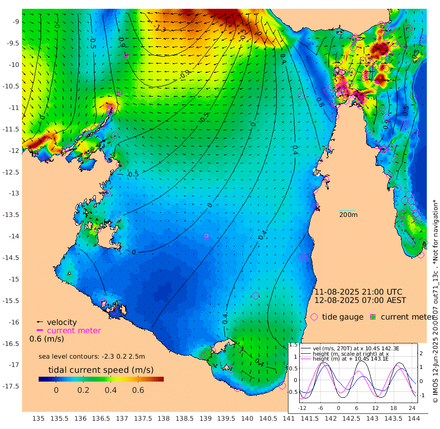 33cm/s -93T +3cm/s rms + 7cm/s -42T. ARA-GOC87 57m 11cm/s -103T +3cm/s rms + 2cm/s -2T. ARA-GOC87 60m 32cm/s -103T +2cm/s rms + 3cm/s 61T. ARA-GOC87 47m -115cm Daru -115cm Bobo Island -47cm Meer Island Barge -72cm Bramble Cay -102cm Unnamed Cay -101cm Pearce Cay -91cm Stephens Island -96cm Merrie England Shoals -112cm Mutacomal Reef -86cm Darnley Island Barge -48cm East Cay -102cm Yorke Island Barge -100cm Rennel Island -102cm Aureed Island -98cm Dungeness Reef -105cm Zagai Island -92cm Yam Island -58cm Dauan Island -68cm Saibai Island -51cm Phipi Reef -97cm Warrior Reef - West -48cm Mabuiag Island Barge -96cm Half Way Island -109cm Coconut Island -104cm Dugong Islet -101cm Poll Island -94cm Kirkcaldie Reef -92cm Suarji Island -106cm Sue Islet 34cm Hawkesbury Island -75cm Alert Patches -82cm Twin Island 15cm Badu Island -86cm St Pauls (Moa Island) 1cm Kubin (Moa Island) -49cm Ince Point -28cm Thursday Island -34cm Nardana Patches 3cm Turtle Head 17cm Round Island 45cm Goods Island 73cm Booby Island 59cm White Rocks Area 57cm Carpentaria -74cm Papou Point 48cm Bampfield Head 74cm Crab Island 69cm Red Wallis Island 34cm Packe Island -117cm Harrington Reef 60cm Herald Camp -25cm Sharp Point 7cm Red Island Point -41cm Possession Island -90cm Alpha Rock -99cm Frederick Point -124cm Wyborn Reef Light -123cm Tetley Island -47cm Triangle Reef -125cm Turtle Head Island -42cm Maclennan Cay -18cm Raine Island -95cm Mcsweeny Reef -82cm Collette Reef -46cm Shadwell Reef -89cm Hannibal Island -71cm Round Point 75cm Vrilya Point -57cm Cape Grenville -52cm Hicks Island -50cm Sir Charles Hardy Island -18cm Harvey Island -43cm Kay Reef -30cm Rocky Island -19cm Chapman Island -21cm Ham Reef -30cm Jubilee Reef -24cm Night Island -19cm Unnamed Reef No. 3 -30cm Morris Island -24cm 1st 3 Mile Opening -25cm Creech Reef -34cm Fife Island -25cm Eden Reef -27cm Stanley Island -35cm Normanby River -48cm Yabooma Island -74cm Hutchison River -49cm Elcho Island -41cm North West Crocodile Island -94cm Cape Wessel -81cm Stevens Island -129cm Guluwuru Island -57cm Hopeful Bay -82cm Auster Point -80cm Two Island Bay -105cm Cadell Strait -208cm Mallison Island -107cm Melville Bay (Gove Harbour) -118cm Truant Island -82cm Cape Arnhem -63cm Cape Grey -36cm Hawk Island -12cm Milner Bay (Groote Eylandt) 4cm Cape Beatrice 28cm West Island 39cm Centre Island 60cm Mornington Island 55cm West Wellesley Islands 63cm Bountiful Island 91cm Albert River Mouth 74cm Sweers Island 101cm Karumba 79cm Nassau River Offshore 75cm Christmas Creek 72cm Archer River 55cm Boyd Point 75cm Weipa (Humbug Point) 60cm Pennefather River 76cm Cullen Point