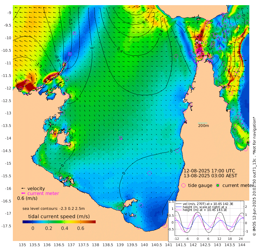 7cm/s -33T +3cm/s rms + 7cm/s -42T. ARA-GOC87 57m 24cm/s 161T +3cm/s rms + 2cm/s -2T. ARA-GOC87 60m 15cm/s -67T +2cm/s rms + 3cm/s 61T. ARA-GOC87 47m 82cm Daru 65cm Bobo Island 2cm Meer Island Barge 17cm Bramble Cay 49cm Unnamed Cay 42cm Pearce Cay 37cm Stephens Island 43cm Merrie England Shoals 76cm Mutacomal Reef 36cm Darnley Island Barge 1cm East Cay 58cm Yorke Island Barge 58cm Rennel Island 58cm Aureed Island 73cm Dungeness Reef 112cm Zagai Island 114cm Yam Island 125cm Dauan Island 130cm Saibai Island 102cm Phipi Reef 124cm Warrior Reef - West 91cm Mabuiag Island Barge 58cm Half Way Island 77cm Coconut Island 73cm Dugong Islet 91cm Poll Island 93cm Kirkcaldie Reef 91cm Suarji Island 101cm Sue Islet 27cm Hawkesbury Island 86cm Alert Patches 93cm Twin Island 38cm Badu Island 106cm St Pauls (Moa Island) 49cm Kubin (Moa Island) 81cm Ince Point 67cm Thursday Island 72cm Nardana Patches 46cm Turtle Head 28cm Round Island 10cm Goods Island -4cm Booby Island -7cm White Rocks Area 13cm Carpentaria 89cm Papou Point -10cm Bampfield Head 4cm Crab Island 10cm Red Wallis Island 36cm Packe Island 76cm Harrington Reef 24cm Herald Camp 44cm Sharp Point 42cm Red Island Point 55cm Possession Island 97cm Alpha Rock 90cm Frederick Point 79cm Wyborn Reef Light 88cm Tetley Island 16cm Triangle Reef 62cm Turtle Head Island 7cm Maclennan Cay -16cm Raine Island 46cm Mcsweeny Reef 36cm Collette Reef 9cm Shadwell Reef 33cm Hannibal Island 13cm Round Point 6cm Vrilya Point 11cm Cape Grenville 6cm Hicks Island 15cm Sir Charles Hardy Island 5cm Harvey Island -4cm Kay Reef -11cm Rocky Island -19cm Chapman Island -12cm Ham Reef -7cm Jubilee Reef -6cm Night Island -12cm Unnamed Reef No. 3 -14cm Morris Island -17cm 1st 3 Mile Opening -11cm Creech Reef -6cm Fife Island -27cm Eden Reef -14cm Stanley Island -18cm Normanby River -148cm Yabooma Island -156cm Hutchison River -145cm Elcho Island -138cm North West Crocodile Island -58cm Cape Wessel -110cm Stevens Island -13cm Guluwuru Island -115cm Hopeful Bay -89cm Auster Point -78cm Two Island Bay -89cm Cadell Strait 125cm Mallison Island -32cm Melville Bay (Gove Harbour) -29cm Truant Island -12cm Cape Arnhem -20cm Cape Grey -22cm Hawk Island -33cm Milner Bay (Groote Eylandt) -24cm Cape Beatrice -15cm West Island -22cm Centre Island -12cm Mornington Island -12cm West Wellesley Islands -44cm Bountiful Island -62cm Albert River Mouth -91cm Sweers Island -57cm Karumba 1cm Nassau River Offshore 18cm Christmas Creek 1cm Archer River 15cm Boyd Point -2cm Weipa (Humbug Point) 3cm Pennefather River 10cm Cullen Point