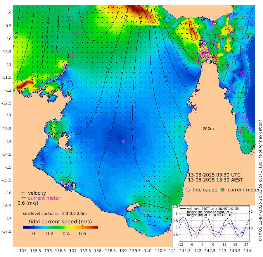 31cm/s 81T +3cm/s rms + 7cm/s -42T. ARA-GOC87 57m 7cm/s -1T +3cm/s rms + 2cm/s -2T. ARA-GOC87 60m 33cm/s 66T +2cm/s rms + 3cm/s 61T. ARA-GOC87 47m 82cm Daru 82cm Bobo Island 32cm Meer Island Barge 48cm Bramble Cay 66cm Unnamed Cay 70cm Pearce Cay 63cm Stephens Island 64cm Merrie England Shoals 70cm Mutacomal Reef 61cm Darnley Island Barge 30cm East Cay 70cm Yorke Island Barge 63cm Rennel Island 72cm Aureed Island 66cm Dungeness Reef 67cm Zagai Island 46cm Yam Island 28cm Dauan Island 24cm Saibai Island 49cm Phipi Reef 64cm Warrior Reef - West -10cm Mabuiag Island Barge 61cm Half Way Island 71cm Coconut Island 60cm Dugong Islet 57cm Poll Island 52cm Kirkcaldie Reef 47cm Suarji Island 57cm Sue Islet -116cm Hawkesbury Island 23cm Alert Patches 27cm Twin Island -79cm Badu Island 32cm St Pauls (Moa Island) -64cm Kubin (Moa Island) -8cm Ince Point -31cm Thursday Island -24cm Nardana Patches -58cm Turtle Head -72cm Round Island -110cm Goods Island -143cm Booby Island -136cm White Rocks Area -138cm Carpentaria 18cm Papou Point -127cm Bampfield Head -119cm Crab Island -139cm Red Wallis Island -89cm Packe Island 71cm Harrington Reef -120cm Herald Camp 15cm Sharp Point -62cm Red Island Point -5cm Possession Island 31cm Alpha Rock 48cm Frederick Point 75cm Wyborn Reef Light 71cm Tetley Island 26cm Triangle Reef 76cm Turtle Head Island 21cm Maclennan Cay 9cm Raine Island 63cm Mcsweeny Reef 57cm Collette Reef 31cm Shadwell Reef 64cm Hannibal Island 47cm Round Point -119cm Vrilya Point 34cm Cape Grenville 34cm Hicks Island 20cm Sir Charles Hardy Island 12cm Harvey Island 21cm Kay Reef 16cm Rocky Island 6cm Chapman Island 3cm Ham Reef 14cm Jubilee Reef 18cm Night Island 3cm Unnamed Reef No. 3 17cm Morris Island 13cm 1st 3 Mile Opening 12cm Creech Reef 26cm Fife Island 14cm Eden Reef 14cm Stanley Island 17cm Normanby River 7cm Yabooma Island 32cm Hutchison River 18cm Elcho Island 8cm North West Crocodile Island 42cm Cape Wessel 46cm Stevens Island 91cm Guluwuru Island 33cm Hopeful Bay 44cm Auster Point 41cm Two Island Bay 75cm Cadell Strait 190cm Mallison Island 83cm Melville Bay (Gove Harbour) 85cm Truant Island 70cm Cape Arnhem 62cm Cape Grey 59cm Hawk Island 48cm Milner Bay (Groote Eylandt) 36cm Cape Beatrice 24cm West Island 24cm Centre Island 51cm Mornington Island 42cm West Wellesley Islands 53cm Bountiful Island 69cm Albert River Mouth 102cm Sweers Island 65cm Karumba 14cm Nassau River Offshore -17cm Christmas Creek -55cm Archer River -69cm Boyd Point -80cm Weipa (Humbug Point) -66cm Pennefather River -111cm Cullen Point