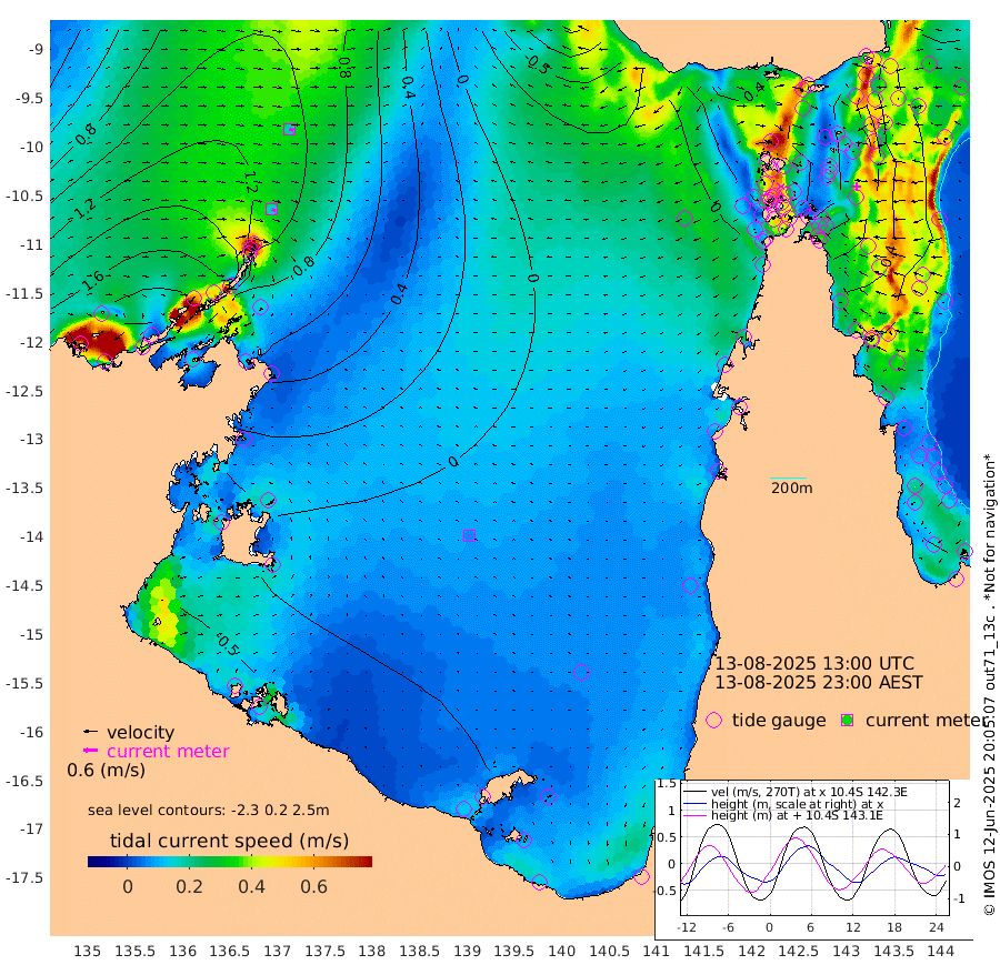 17cm/s 120T +3cm/s rms + 7cm/s -42T. ARA-GOC87 57m 7cm/s -139T +3cm/s rms + 2cm/s -2T. ARA-GOC87 60m 19cm/s 105T +2cm/s rms + 3cm/s 61T. ARA-GOC87 47m 47cm Daru 58cm Bobo Island 63cm Meer Island Barge 70cm Bramble Cay 62cm Unnamed Cay 75cm Pearce Cay 68cm Stephens Island 58cm Merrie England Shoals 48cm Mutacomal Reef 60cm Darnley Island Barge 72cm East Cay 53cm Yorke Island Barge 62cm Rennel Island 55cm Aureed Island 49cm Dungeness Reef 17cm Zagai Island 23cm Yam Island 11cm Dauan Island -2cm Saibai Island 8cm Phipi Reef 20cm Warrior Reef - West 12cm Mabuiag Island Barge 55cm Half Way Island 42cm Coconut Island 54cm Dugong Islet 35cm Poll Island 32cm Kirkcaldie Reef 26cm Suarji Island 23cm Sue Islet 65cm Hawkesbury Island 23cm Alert Patches 26cm Twin Island 48cm Badu Island 18cm St Pauls (Moa Island) 50cm Kubin (Moa Island) 25cm Ince Point 26cm Thursday Island 26cm Nardana Patches 42cm Turtle Head 44cm Round Island 59cm Goods Island 48cm Booby Island 61cm White Rocks Area 3cm Carpentaria 25cm Papou Point 57cm Bampfield Head 23cm Crab Island 43cm Red Wallis Island 44cm Packe Island 52cm Harrington Reef 48cm Herald Camp -13cm Sharp Point 35cm Red Island Point 29cm Possession Island 19cm Alpha Rock 36cm Frederick Point 50cm Wyborn Reef Light 45cm Tetley Island 54cm Triangle Reef 66cm Turtle Head Island 64cm Maclennan Cay 61cm Raine Island 59cm Mcsweeny Reef 54cm Collette Reef 53cm Shadwell Reef 61cm Hannibal Island 74cm Round Point 1cm Vrilya Point 61cm Cape Grenville 69cm Hicks Island 74cm Sir Charles Hardy Island 19cm Harvey Island 64cm Kay Reef 66cm Rocky Island 66cm Chapman Island 61cm Ham Reef 63cm Jubilee Reef 53cm Night Island 60cm Unnamed Reef No. 3 69cm Morris Island 65cm 1st 3 Mile Opening 63cm Creech Reef 66cm Fife Island 81cm Eden Reef 65cm Stanley Island 81cm Normanby River 223cm Yabooma Island 254cm Hutchison River 209cm Elcho Island 202cm North West Crocodile Island 139cm Cape Wessel 181cm Stevens Island 120cm Guluwuru Island 164cm Hopeful Bay 154cm Auster Point 156cm Two Island Bay 205cm Cadell Strait 10cm Mallison Island 113cm Melville Bay (Gove Harbour) 119cm Truant Island 66cm Cape Arnhem 39cm Cape Grey 16cm Hawk Island -25cm Milner Bay (Groote Eylandt) -29cm Cape Beatrice -78cm West Island -88cm Centre Island -71cm Mornington Island -63cm West Wellesley Islands -40cm Bountiful Island -55cm Albert River Mouth -68cm Sweers Island -60cm Karumba -45cm Nassau River Offshore -25cm Christmas Creek -3cm Archer River 6cm Boyd Point 19cm Weipa (Humbug Point) -15cm Pennefather River 5cm Cullen Point