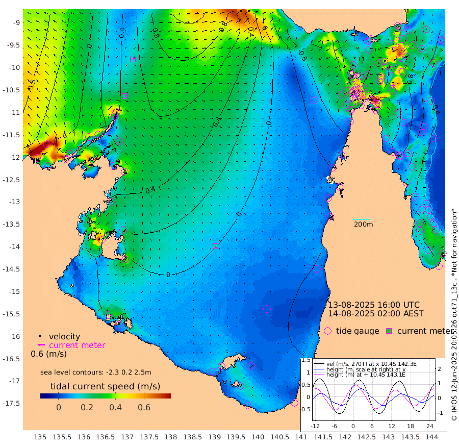 20cm/s 80T +3cm/s rms + 7cm/s -42T. ARA-GOC87 57m 18cm/s 169T +3cm/s rms + 2cm/s -2T. ARA-GOC87 60m 16cm/s 55T +2cm/s rms + 3cm/s 61T. ARA-GOC87 47m 114cm Daru 109cm Bobo Island 52cm Meer Island Barge 71cm Bramble Cay 94cm Unnamed Cay 95cm Pearce Cay 89cm Stephens Island 86cm Merrie England Shoals 104cm Mutacomal Reef 86cm Darnley Island Barge 56cm East Cay 99cm Yorke Island Barge 98cm Rennel Island 97cm Aureed Island 99cm Dungeness Reef 109cm Zagai Island 108cm Yam Island 98cm Dauan Island 97cm Saibai Island 83cm Phipi Reef 119cm Warrior Reef - West 56cm Mabuiag Island Barge 95cm Half Way Island 99cm Coconut Island 104cm Dugong Islet 99cm Poll Island 101cm Kirkcaldie Reef 82cm Suarji Island 103cm Sue Islet -5cm Hawkesbury Island 68cm Alert Patches 79cm Twin Island 4cm Badu Island 86cm St Pauls (Moa Island) 24cm Kubin (Moa Island) 54cm Ince Point 35cm Thursday Island 41cm Nardana Patches 16cm Turtle Head -1cm Round Island -21cm Goods Island -51cm Booby Island -45cm White Rocks Area -54cm Carpentaria 76cm Papou Point -47cm Bampfield Head -45cm Crab Island -41cm Red Wallis Island -2cm Packe Island 105cm Harrington Reef -17cm Herald Camp 28cm Sharp Point 15cm Red Island Point 38cm Possession Island 83cm Alpha Rock 93cm Frederick Point 107cm Wyborn Reef Light 108cm Tetley Island 51cm Triangle Reef 105cm Turtle Head Island 51cm Maclennan Cay 27cm Raine Island 88cm Mcsweeny Reef 77cm Collette Reef 49cm Shadwell Reef 81cm Hannibal Island 68cm Round Point -54cm Vrilya Point 56cm Cape Grenville 58cm Hicks Island 64cm Sir Charles Hardy Island 20cm Harvey Island 43cm Kay Reef 37cm Rocky Island 26cm Chapman Island 31cm Ham Reef 38cm Jubilee Reef 33cm Night Island 28cm Unnamed Reef No. 3 37cm Morris Island 30cm 1st 3 Mile Opening 34cm Creech Reef 44cm Fife Island 35cm Eden Reef 34cm Stanley Island 43cm Normanby River 18cm Yabooma Island 39cm Hutchison River 16cm Elcho Island 15cm North West Crocodile Island 57cm Cape Wessel 38cm Stevens Island 105cm Guluwuru Island 19cm Hopeful Bay 39cm Auster Point 54cm Two Island Bay 88cm Cadell Strait 198cm Mallison Island 77cm Melville Bay (Gove Harbour) 84cm Truant Island 59cm Cape Arnhem 34cm Cape Grey 14cm Hawk Island -22cm Milner Bay (Groote Eylandt) -21cm Cape Beatrice -48cm West Island -61cm Centre Island -33cm Mornington Island -32cm West Wellesley Islands -39cm Bountiful Island -55cm Albert River Mouth -76cm Sweers Island -56cm Karumba -24cm Nassau River Offshore -12cm Christmas Creek -30cm Archer River -19cm Boyd Point -32cm Weipa (Humbug Point) -42cm Pennefather River -43cm Cullen Point
