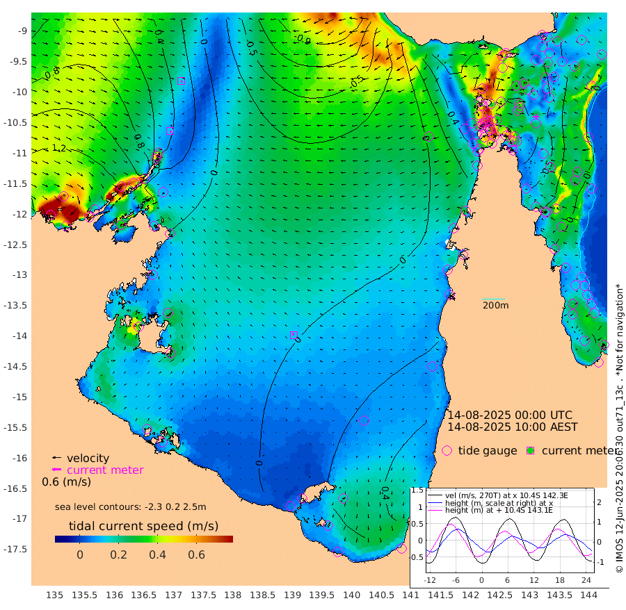 13cm/s 158T +3cm/s rms + 7cm/s -42T. ARA-GOC87 57m 12cm/s -54T +3cm/s rms + 2cm/s -2T. ARA-GOC87 60m 15cm/s 138T +2cm/s rms + 3cm/s 61T. ARA-GOC87 47m -50cm Daru -43cm Bobo Island -7cm Meer Island Barge -13cm Bramble Cay -37cm Unnamed Cay -21cm Pearce Cay -26cm Stephens Island -30cm Merrie England Shoals -47cm Mutacomal Reef -33cm Darnley Island Barge -3cm East Cay -46cm Yorke Island Barge -35cm Rennel Island -40cm Aureed Island -40cm Dungeness Reef -68cm Zagai Island -61cm Yam Island -53cm Dauan Island -75cm Saibai Island -37cm Phipi Reef -64cm Warrior Reef - West -44cm Mabuiag Island Barge -34cm Half Way Island -46cm Coconut Island -45cm Dugong Islet -49cm Poll Island -49cm Kirkcaldie Reef -55cm Suarji Island -69cm Sue Islet 28cm Hawkesbury Island -44cm Alert Patches -46cm Twin Island 22cm Badu Island -54cm St Pauls (Moa Island) 8cm Kubin (Moa Island) -30cm Ince Point -17cm Thursday Island -21cm Nardana Patches 8cm Turtle Head 11cm Round Island 40cm Goods Island 47cm Booby Island 51cm White Rocks Area 0cm Carpentaria -44cm Papou Point 23cm Bampfield Head 47cm Crab Island 46cm Red Wallis Island 30cm Packe Island -48cm Harrington Reef 22cm Herald Camp -26cm Sharp Point 10cm Red Island Point -24cm Possession Island -59cm Alpha Rock -49cm Frederick Point -53cm Wyborn Reef Light -56cm Tetley Island -11cm Triangle Reef -42cm Turtle Head Island -8cm Maclennan Cay 12cm Raine Island -33cm Mcsweeny Reef -29cm Collette Reef -11cm Shadwell Reef -28cm Hannibal Island -7cm Round Point 38cm Vrilya Point -13cm Cape Grenville -6cm Hicks Island -17cm Sir Charles Hardy Island -4cm Harvey Island -5cm Kay Reef 2cm Rocky Island 11cm Chapman Island 2cm Ham Reef 0cm Jubilee Reef 5cm Night Island 7cm Unnamed Reef No. 3 5cm Morris Island 6cm 1st 3 Mile Opening 4cm Creech Reef 8cm Fife Island 14cm Eden Reef 4cm Stanley Island 8cm Normanby River 138cm Yabooma Island 144cm Hutchison River 132cm Elcho Island 132cm North West Crocodile Island 39cm Cape Wessel 101cm Stevens Island -3cm Guluwuru Island 96cm Hopeful Bay 66cm Auster Point 64cm Two Island Bay 97cm Cadell Strait -113cm Mallison Island 15cm Melville Bay (Gove Harbour) 11cm Truant Island -2cm Cape Arnhem -9cm Cape Grey 0cm Hawk Island -1cm Milner Bay (Groote Eylandt) 2cm Cape Beatrice -16cm West Island -11cm Centre Island 16cm Mornington Island 12cm West Wellesley Islands 27cm Bountiful Island 67cm Albert River Mouth 59cm Sweers Island 67cm Karumba 37cm Nassau River Offshore 29cm Christmas Creek 36cm Archer River 16cm Boyd Point 38cm Weipa (Humbug Point) 33cm Pennefather River 29cm Cullen Point