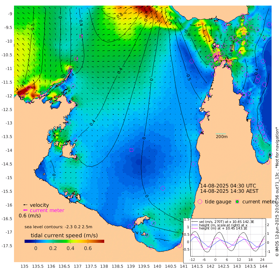 30cm/s 86T +3cm/s rms + 7cm/s -42T. ARA-GOC87 57m 3cm/s 79T +3cm/s rms + 2cm/s -2T. ARA-GOC87 60m 28cm/s 70T +2cm/s rms + 3cm/s 61T. ARA-GOC87 47m 67cm Daru 67cm Bobo Island 33cm Meer Island Barge 40cm Bramble Cay 53cm Unnamed Cay 55cm Pearce Cay 53cm Stephens Island 50cm Merrie England Shoals 52cm Mutacomal Reef 56cm Darnley Island Barge 27cm East Cay 61cm Yorke Island Barge 49cm Rennel Island 61cm Aureed Island 52cm Dungeness Reef 57cm Zagai Island 34cm Yam Island 25cm Dauan Island 24cm Saibai Island 38cm Phipi Reef 53cm Warrior Reef - West -12cm Mabuiag Island Barge 49cm Half Way Island 56cm Coconut Island 47cm Dugong Islet 43cm Poll Island 40cm Kirkcaldie Reef 33cm Suarji Island 47cm Sue Islet -107cm Hawkesbury Island 14cm Alert Patches 17cm Twin Island -72cm Badu Island 23cm St Pauls (Moa Island) -60cm Kubin (Moa Island) -11cm Ince Point -31cm Thursday Island -25cm Nardana Patches -53cm Turtle Head -68cm Round Island -97cm Goods Island -121cm Booby Island -122cm White Rocks Area -103cm Carpentaria 10cm Papou Point -107cm Bampfield Head -100cm Crab Island -120cm Red Wallis Island -80cm Packe Island 54cm Harrington Reef -106cm Herald Camp 12cm Sharp Point -60cm Red Island Point -10cm Possession Island 21cm Alpha Rock 35cm Frederick Point 58cm Wyborn Reef Light 55cm Tetley Island 25cm Triangle Reef 60cm Turtle Head Island 21cm Maclennan Cay 13cm Raine Island 53cm Mcsweeny Reef 48cm Collette Reef 31cm Shadwell Reef 54cm Hannibal Island 37cm Round Point -95cm Vrilya Point 30cm Cape Grenville 30cm Hicks Island 21cm Sir Charles Hardy Island 11cm Harvey Island 20cm Kay Reef 17cm Rocky Island 8cm Chapman Island 8cm Ham Reef 17cm Jubilee Reef 20cm Night Island 7cm Unnamed Reef No. 3 18cm Morris Island 17cm 1st 3 Mile Opening 16cm Creech Reef 26cm Fife Island 18cm Eden Reef 16cm Stanley Island 15cm Normanby River -33cm Yabooma Island -11cm Hutchison River -19cm Elcho Island -30cm North West Crocodile Island 24cm Cape Wessel 10cm Stevens Island 81cm Guluwuru Island 1cm Hopeful Bay 18cm Auster Point 18cm Two Island Bay 42cm Cadell Strait 202cm Mallison Island 68cm Melville Bay (Gove Harbour) 71cm Truant Island 62cm Cape Arnhem 50cm Cape Grey 45cm Hawk Island 33cm Milner Bay (Groote Eylandt) 22cm Cape Beatrice 12cm West Island 12cm Centre Island 31cm Mornington Island 23cm West Wellesley Islands 23cm Bountiful Island 30cm Albert River Mouth 56cm Sweers Island 25cm Karumba 3cm Nassau River Offshore -15cm Christmas Creek -44cm Archer River -51cm Boyd Point -64cm Weipa (Humbug Point) -49cm Pennefather River -88cm Cullen Point