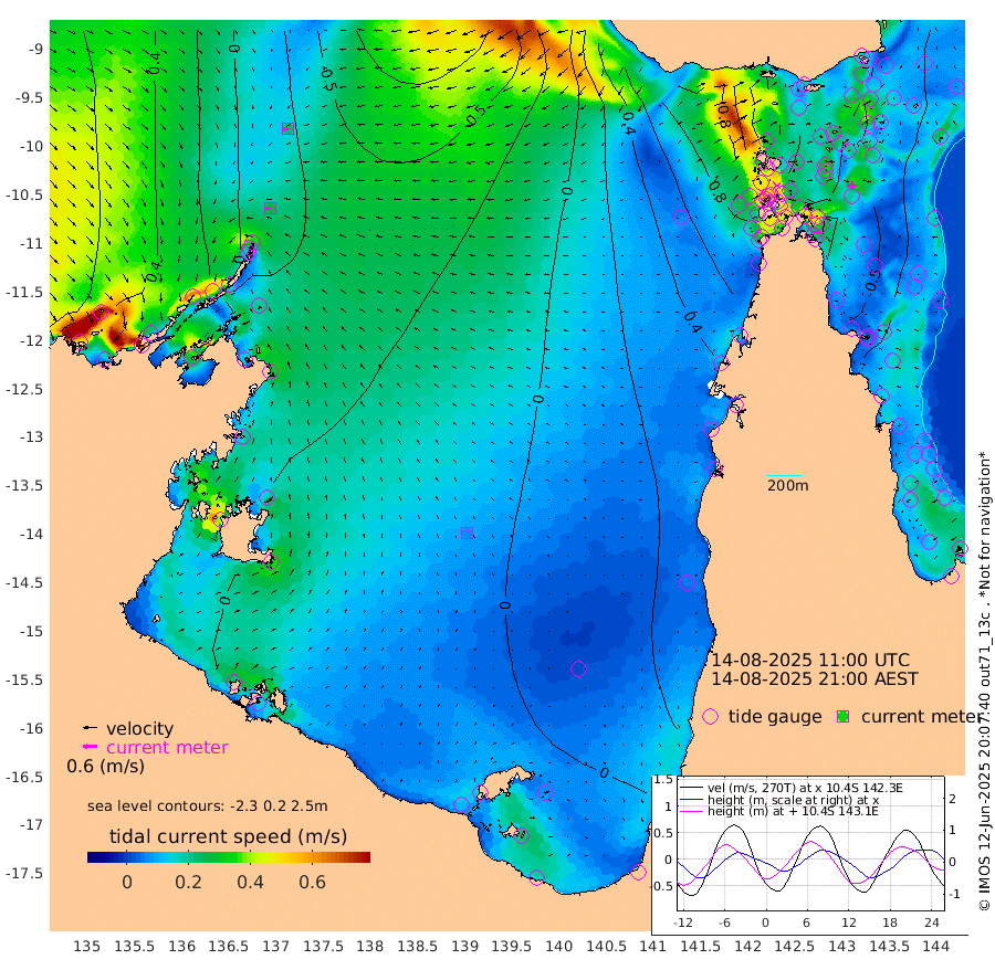 27cm/s -96T +3cm/s rms + 7cm/s -42T. ARA-GOC87 57m 6cm/s -26T +3cm/s rms + 2cm/s -2T. ARA-GOC87 60m 24cm/s -113T +2cm/s rms + 3cm/s 61T. ARA-GOC87 47m -55cm Daru -52cm Bobo Island -17cm Meer Island Barge -24cm Bramble Cay -35cm Unnamed Cay -37cm Pearce Cay -36cm Stephens Island -34cm Merrie England Shoals -41cm Mutacomal Reef -38cm Darnley Island Barge -13cm East Cay -44cm Yorke Island Barge -34cm Rennel Island -41cm Aureed Island -38cm Dungeness Reef -49cm Zagai Island -39cm Yam Island -31cm Dauan Island -30cm Saibai Island -31cm Phipi Reef -52cm Warrior Reef - West 11cm Mabuiag Island Barge -40cm Half Way Island -40cm Coconut Island -38cm Dugong Islet -35cm Poll Island -39cm Kirkcaldie Reef -9cm Suarji Island -39cm Sue Islet 90cm Hawkesbury Island 0cm Alert Patches -11cm Twin Island 66cm Badu Island -17cm St Pauls (Moa Island) 51cm Kubin (Moa Island) 13cm Ince Point 30cm Thursday Island 26cm Nardana Patches 52cm Turtle Head 71cm Round Island 91cm Goods Island 113cm Booby Island 116cm White Rocks Area 96cm Carpentaria -11cm Papou Point 127cm Bampfield Head 79cm Crab Island 102cm Red Wallis Island 66cm Packe Island -39cm Harrington Reef 94cm Herald Camp -15cm Sharp Point 45cm Red Island Point 25cm Possession Island -16cm Alpha Rock -26cm Frederick Point -40cm Wyborn Reef Light -40cm Tetley Island -11cm Triangle Reef -38cm Turtle Head Island -8cm Maclennan Cay 1cm Raine Island -34cm Mcsweeny Reef -30cm Collette Reef -14cm Shadwell Reef -33cm Hannibal Island -20cm Round Point 71cm Vrilya Point -13cm Cape Grenville -15cm Hicks Island -8cm Sir Charles Hardy Island -7cm Harvey Island -4cm Kay Reef -1cm Rocky Island 8cm Chapman Island 4cm Ham Reef -4cm Jubilee Reef -7cm Night Island 4cm Unnamed Reef No. 3 -2cm Morris Island 3cm 1st 3 Mile Opening -2cm Creech Reef -13cm Fife Island 0cm Eden Reef -1cm Stanley Island -2cm Normanby River 53cm Yabooma Island 41cm Hutchison River 43cm Elcho Island 44cm North West Crocodile Island -6cm Cape Wessel 11cm Stevens Island -60cm Guluwuru Island 24cm Hopeful Bay 9cm Auster Point -5cm Two Island Bay -33cm Cadell Strait -206cm Mallison Island -40cm Melville Bay (Gove Harbour) -42cm Truant Island -39cm Cape Arnhem -23cm Cape Grey -19cm Hawk Island -9cm Milner Bay (Groote Eylandt) -7cm Cape Beatrice 0cm West Island 3cm Centre Island -26cm Mornington Island -17cm West Wellesley Islands -1cm Bountiful Island -22cm Albert River Mouth -17cm Sweers Island -21cm Karumba -17cm Nassau River Offshore -4cm Christmas Creek 31cm Archer River 41cm Boyd Point 55cm Weipa (Humbug Point) 35cm Pennefather River 69cm Cullen Point