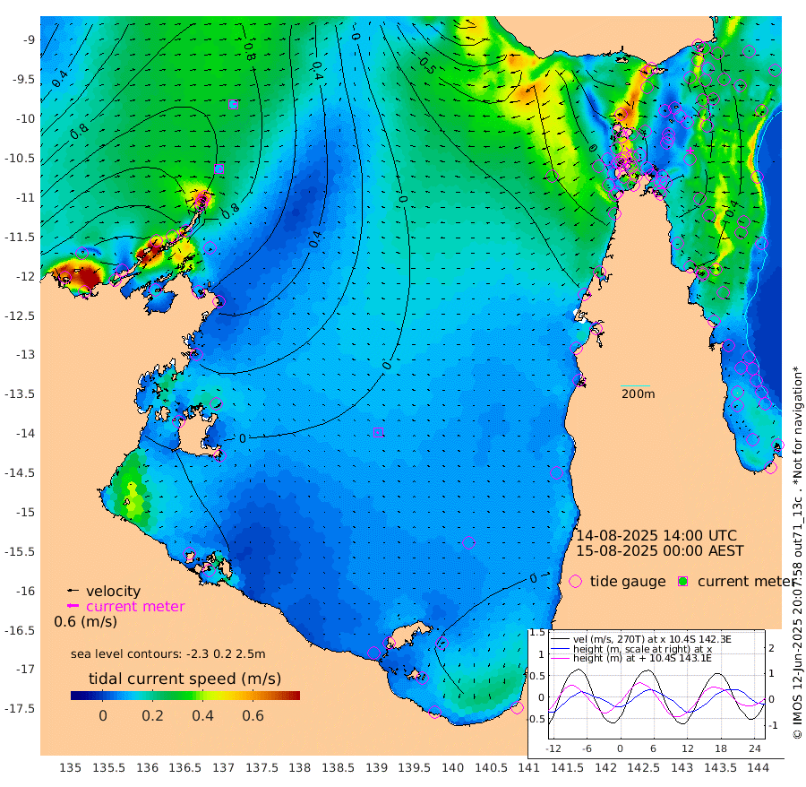 11cm/s 108T +3cm/s rms + 7cm/s -42T. ARA-GOC87 57m 9cm/s -125T +3cm/s rms + 2cm/s -2T. ARA-GOC87 60m 15cm/s 86T +2cm/s rms + 3cm/s 61T. ARA-GOC87 47m 42cm Daru 50cm Bobo Island 44cm Meer Island Barge 49cm Bramble Cay 45cm Unnamed Cay 59cm Pearce Cay 51cm Stephens Island 37cm Merrie England Shoals 37cm Mutacomal Reef 44cm Darnley Island Barge 51cm East Cay 43cm Yorke Island Barge 49cm Rennel Island 47cm Aureed Island 44cm Dungeness Reef 31cm Zagai Island 33cm Yam Island 40cm Dauan Island 26cm Saibai Island 35cm Phipi Reef 39cm Warrior Reef - West 22cm Mabuiag Island Barge 40cm Half Way Island 37cm Coconut Island 42cm Dugong Islet 35cm Poll Island 28cm Kirkcaldie Reef 35cm Suarji Island 25cm Sue Islet 42cm Hawkesbury Island 22cm Alert Patches 25cm Twin Island 36cm Badu Island 24cm St Pauls (Moa Island) 39cm Kubin (Moa Island) 22cm Ince Point 19cm Thursday Island 21cm Nardana Patches 31cm Turtle Head 32cm Round Island 35cm Goods Island 18cm Booby Island 29cm White Rocks Area -28cm Carpentaria 26cm Papou Point 30cm Bampfield Head 0cm Crab Island 15cm Red Wallis Island 26cm Packe Island 40cm Harrington Reef 32cm Herald Camp -7cm Sharp Point 24cm Red Island Point 25cm Possession Island 18cm Alpha Rock 32cm Frederick Point 41cm Wyborn Reef Light 38cm Tetley Island 40cm Triangle Reef 48cm Turtle Head Island 45cm Maclennan Cay 41cm Raine Island 44cm Mcsweeny Reef 39cm Collette Reef 36cm Shadwell Reef 42cm Hannibal Island 52cm Round Point -27cm Vrilya Point 39cm Cape Grenville 50cm Hicks Island 54cm Sir Charles Hardy Island 13cm Harvey Island 40cm Kay Reef 46cm Rocky Island 45cm Chapman Island 41cm Ham Reef 42cm Jubilee Reef 35cm Night Island 39cm Unnamed Reef No. 3 46cm Morris Island 43cm 1st 3 Mile Opening 41cm Creech Reef 48cm Fife Island 53cm Eden Reef 40cm Stanley Island 53cm Normanby River 199cm Yabooma Island 231cm Hutchison River 189cm Elcho Island 183cm North West Crocodile Island 127cm Cape Wessel 163cm Stevens Island 117cm Guluwuru Island 149cm Hopeful Bay 139cm Auster Point 142cm Two Island Bay 192cm Cadell Strait 24cm Mallison Island 111cm Melville Bay (Gove Harbour) 116cm Truant Island 69cm Cape Arnhem 44cm Cape Grey 26cm Hawk Island -14cm Milner Bay (Groote Eylandt) -16cm Cape Beatrice -62cm West Island -72cm Centre Island -39cm Mornington Island -36cm West Wellesley Islands -3cm Bountiful Island -10cm Albert River Mouth -20cm Sweers Island -14cm Karumba -24cm Nassau River Offshore -15cm Christmas Creek -9cm Archer River -4cm Boyd Point 8cm Weipa (Humbug Point) -33cm Pennefather River -14cm Cullen Point