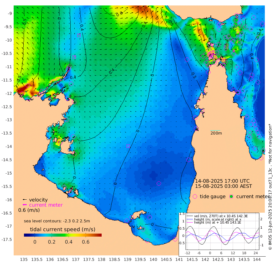 17cm/s 58T +3cm/s rms + 7cm/s -42T. ARA-GOC87 57m 11cm/s 169T +3cm/s rms + 2cm/s -2T. ARA-GOC87 60m 18cm/s 37T +2cm/s rms + 3cm/s 61T. ARA-GOC87 47m 72cm Daru 70cm Bobo Island 33cm Meer Island Barge 42cm Bramble Cay 57cm Unnamed Cay 54cm Pearce Cay 55cm Stephens Island 49cm Merrie England Shoals 61cm Mutacomal Reef 57cm Darnley Island Barge 34cm East Cay 65cm Yorke Island Barge 57cm Rennel Island 60cm Aureed Island 57cm Dungeness Reef 70cm Zagai Island 67cm Yam Island 58cm Dauan Island 64cm Saibai Island 44cm Phipi Reef 77cm Warrior Reef - West 18cm Mabuiag Island Barge 56cm Half Way Island 55cm Coconut Island 62cm Dugong Islet 54cm Poll Island 58cm Kirkcaldie Reef 36cm Suarji Island 64cm Sue Islet -51cm Hawkesbury Island 20cm Alert Patches 32cm Twin Island -43cm Badu Island 39cm St Pauls (Moa Island) -22cm Kubin (Moa Island) 9cm Ince Point -10cm Thursday Island -4cm Nardana Patches -30cm Turtle Head -41cm Round Island -66cm Goods Island -90cm Booby Island -89cm White Rocks Area -76cm Carpentaria 35cm Papou Point -87cm Bampfield Head -75cm Crab Island -81cm Red Wallis Island -48cm Packe Island 59cm Harrington Reef -53cm Herald Camp 18cm Sharp Point -22cm Red Island Point -2cm Possession Island 41cm Alpha Rock 47cm Frederick Point 62cm Wyborn Reef Light 62cm Tetley Island 29cm Triangle Reef 57cm Turtle Head Island 30cm Maclennan Cay 12cm Raine Island 52cm Mcsweeny Reef 46cm Collette Reef 29cm Shadwell Reef 49cm Hannibal Island 36cm Round Point -78cm Vrilya Point 32cm Cape Grenville 35cm Hicks Island 41cm Sir Charles Hardy Island 13cm Harvey Island 23cm Kay Reef 20cm Rocky Island 10cm Chapman Island 17cm Ham Reef 22cm Jubilee Reef 17cm Night Island 13cm Unnamed Reef No. 3 19cm Morris Island 12cm 1st 3 Mile Opening 18cm Creech Reef 25cm Fife Island 19cm Eden Reef 18cm Stanley Island 25cm Normanby River -14cm Yabooma Island 0cm Hutchison River -12cm Elcho Island -11cm North West Crocodile Island 37cm Cape Wessel 10cm Stevens Island 85cm Guluwuru Island -1cm Hopeful Bay 16cm Auster Point 33cm Two Island Bay 56cm Cadell Strait 189cm Mallison Island 58cm Melville Bay (Gove Harbour) 63cm Truant Island 48cm Cape Arnhem 32cm Cape Grey 17cm Hawk Island -6cm Milner Bay (Groote Eylandt) -5cm Cape Beatrice -20cm West Island -29cm Centre Island -5cm Mornington Island -7cm West Wellesley Islands -10cm Bountiful Island -17cm Albert River Mouth -31cm Sweers Island -19cm Karumba -12cm Nassau River Offshore -12cm Christmas Creek -40cm Archer River -35cm Boyd Point -48cm Weipa (Humbug Point) -57cm Pennefather River -63cm Cullen Point