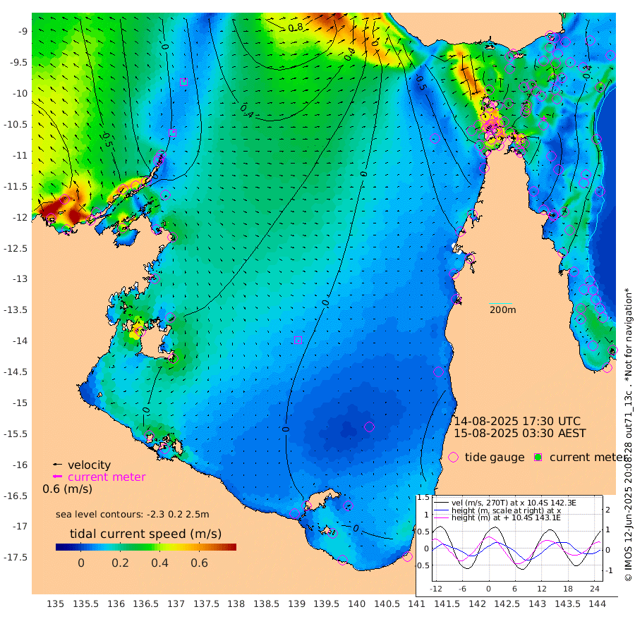 14cm/s 42T +3cm/s rms + 7cm/s -42T. ARA-GOC87 57m 11cm/s 160T +3cm/s rms + 2cm/s -2T. ARA-GOC87 60m 15cm/s 20T +2cm/s rms + 3cm/s 61T. ARA-GOC87 47m 62cm Daru 58cm Bobo Island 22cm Meer Island Barge 31cm Bramble Cay 46cm Unnamed Cay 40cm Pearce Cay 43cm Stephens Island 41cm Merrie England Shoals 53cm Mutacomal Reef 46cm Darnley Island Barge 22cm East Cay 55cm Yorke Island Barge 46cm Rennel Island 49cm Aureed Island 46cm Dungeness Reef 63cm Zagai Island 61cm Yam Island 50cm Dauan Island 61cm Saibai Island 35cm Phipi Reef 68cm Warrior Reef - West 16cm Mabuiag Island Barge 48cm Half Way Island 47cm Coconut Island 53cm Dugong Islet 47cm Poll Island 53cm Kirkcaldie Reef 28cm Suarji Island 60cm Sue Islet -55cm Hawkesbury Island 16cm Alert Patches 28cm Twin Island -49cm Badu Island 34cm St Pauls (Moa Island) -27cm Kubin (Moa Island) 6cm Ince Point -12cm Thursday Island -7cm Nardana Patches -35cm Turtle Head -45cm Round Island -71cm Goods Island -91cm Booby Island -92cm White Rocks Area -66cm Carpentaria 31cm Papou Point -91cm Bampfield Head -73cm Crab Island -80cm Red Wallis Island -51cm Packe Island 50cm Harrington Reef -54cm Herald Camp 20cm Sharp Point -24cm Red Island Point -6cm Possession Island 39cm Alpha Rock 40cm Frederick Point 52cm Wyborn Reef Light 53cm Tetley Island 19cm Triangle Reef 45cm Turtle Head Island 20cm Maclennan Cay 2cm Raine Island 42cm Mcsweeny Reef 37cm Collette Reef 20cm Shadwell Reef 39cm Hannibal Island 24cm Round Point -69cm Vrilya Point 23cm Cape Grenville 23cm Hicks Island 30cm Sir Charles Hardy Island 10cm Harvey Island 15cm Kay Reef 10cm Rocky Island 0cm Chapman Island 8cm Ham Reef 12cm Jubilee Reef 8cm Night Island 4cm Unnamed Reef No. 3 8cm Morris Island 2cm 1st 3 Mile Opening 8cm Creech Reef 13cm Fife Island 6cm Eden Reef 8cm Stanley Island 13cm Normanby River -60cm Yabooma Island -54cm Hutchison River -56cm Elcho Island -53cm North West Crocodile Island 7cm Cape Wessel -30cm Stevens Island 56cm Guluwuru Island -37cm Hopeful Bay -17cm Auster Point 0cm Two Island Bay 9cm Cadell Strait 177cm Mallison Island 30cm Melville Bay (Gove Harbour) 33cm Truant Island 29cm Cape Arnhem 19cm Cape Grey 9cm Hawk Island -5cm Milner Bay (Groote Eylandt) -3cm Cape Beatrice -7cm West Island -14cm Centre Island 1cm Mornington Island -1cm West Wellesley Islands -11cm Bountiful Island -19cm Albert River Mouth -33cm Sweers Island -19cm Karumba -8cm Nassau River Offshore -9cm Christmas Creek -37cm Archer River -32cm Boyd Point -49cm Weipa (Humbug Point) -50cm Pennefather River -57cm Cullen Point