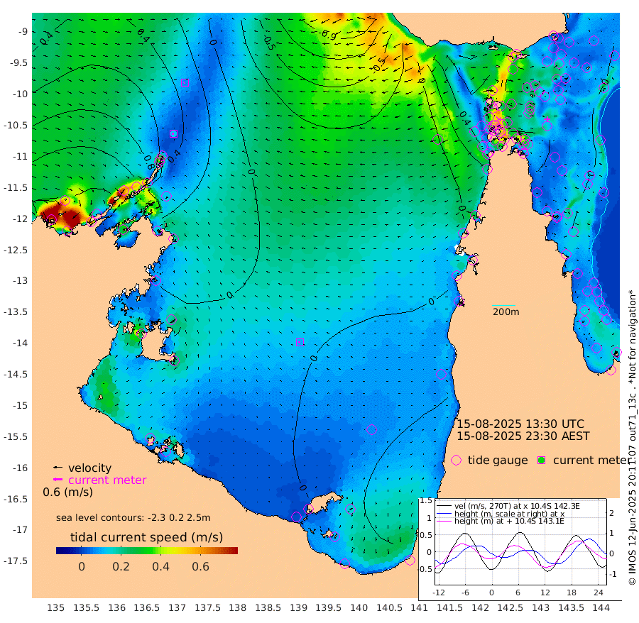 12cm/s -101T +3cm/s rms + 7cm/s -42T. ARA-GOC87 57m 10cm/s -97T +3cm/s rms + 2cm/s -2T. ARA-GOC87 60m 7cm/s -109T +2cm/s rms + 3cm/s 61T. ARA-GOC87 47m -4cm Daru -2cm Bobo Island 2cm Meer Island Barge 2cm Bramble Cay -3cm Unnamed Cay 8cm Pearce Cay -2cm Stephens Island -11cm Merrie England Shoals -6cm Mutacomal Reef -7cm Darnley Island Barge 8cm East Cay -7cm Yorke Island Barge 5cm Rennel Island 1cm Aureed Island 9cm Dungeness Reef 9cm Zagai Island 13cm Yam Island 45cm Dauan Island 29cm Saibai Island 41cm Phipi Reef 19cm Warrior Reef - West 38cm Mabuiag Island Barge -7cm Half Way Island 1cm Coconut Island -1cm Dugong Islet 9cm Poll Island -2cm Kirkcaldie Reef 33cm Suarji Island -1cm Sue Islet 76cm Hawkesbury Island 23cm Alert Patches 19cm Twin Island 70cm Badu Island 21cm St Pauls (Moa Island) 60cm Kubin (Moa Island) 32cm Ince Point 37cm Thursday Island 37cm Nardana Patches 57cm Turtle Head 67cm Round Island 74cm Goods Island 69cm Booby Island 78cm White Rocks Area 18cm Carpentaria 19cm Papou Point 83cm Bampfield Head 42cm Crab Island 63cm Red Wallis Island 59cm Packe Island -3cm Harrington Reef 75cm Herald Camp -6cm Sharp Point 44cm Red Island Point 37cm Possession Island 8cm Alpha Rock 10cm Frederick Point 0cm Wyborn Reef Light 1cm Tetley Island 9cm Triangle Reef -1cm Turtle Head Island 9cm Maclennan Cay 11cm Raine Island -2cm Mcsweeny Reef -4cm Collette Reef 1cm Shadwell Reef -7cm Hannibal Island 6cm Round Point 13cm Vrilya Point -1cm Cape Grenville 8cm Hicks Island 13cm Sir Charles Hardy Island 0cm Harvey Island 2cm Kay Reef 12cm Rocky Island 17cm Chapman Island 11cm Ham Reef 7cm Jubilee Reef 4cm Night Island 9cm Unnamed Reef No. 3 10cm Morris Island 11cm 1st 3 Mile Opening 7cm Creech Reef 9cm Fife Island 10cm Eden Reef 3cm Stanley Island 9cm Normanby River 151cm Yabooma Island 167cm Hutchison River 141cm Elcho Island 139cm North West Crocodile Island 67cm Cape Wessel 105cm Stevens Island 33cm Guluwuru Island 104cm Hopeful Bay 85cm Auster Point 78cm Two Island Bay 100cm Cadell Strait -111cm Mallison Island 46cm Melville Bay (Gove Harbour) 46cm Truant Island 22cm Cape Arnhem 16cm Cape Grey 13cm Hawk Island -7cm Milner Bay (Groote Eylandt) -6cm Cape Beatrice -30cm West Island -35cm Centre Island -10cm Mornington Island -7cm West Wellesley Islands 33cm Bountiful Island 29cm Albert River Mouth 25cm Sweers Island 29cm Karumba 3cm Nassau River Offshore 7cm Christmas Creek 17cm Archer River 21cm Boyd Point 39cm Weipa (Humbug Point) -6cm Pennefather River 26cm Cullen Point