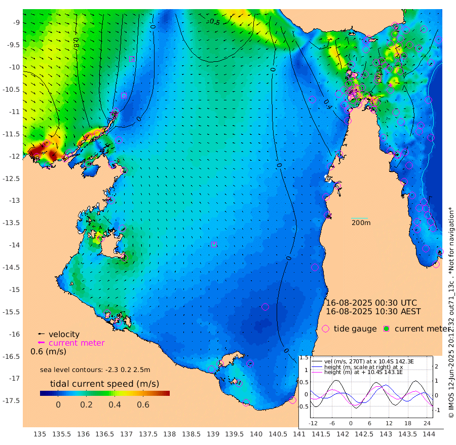 12cm/s 159T +3cm/s rms + 7cm/s -42T. ARA-GOC87 57m 15cm/s -7T +3cm/s rms + 2cm/s -2T. ARA-GOC87 60m 16cm/s 147T +2cm/s rms + 3cm/s 61T. ARA-GOC87 47m -68cm Daru -67cm Bobo Island -57cm Meer Island Barge -59cm Bramble Cay -69cm Unnamed Cay -57cm Pearce Cay -67cm Stephens Island -64cm Merrie England Shoals -62cm Mutacomal Reef -74cm Darnley Island Barge -54cm East Cay -74cm Yorke Island Barge -61cm Rennel Island -67cm Aureed Island -56cm Dungeness Reef -53cm Zagai Island -43cm Yam Island -28cm Dauan Island -38cm Saibai Island -30cm Phipi Reef -53cm Warrior Reef - West 0cm Mabuiag Island Barge -58cm Half Way Island -54cm Coconut Island -62cm Dugong Islet -44cm Poll Island -47cm Kirkcaldie Reef -38cm Suarji Island -57cm Sue Islet 61cm Hawkesbury Island -21cm Alert Patches -23cm Twin Island 55cm Badu Island -23cm St Pauls (Moa Island) 33cm Kubin (Moa Island) -1cm Ince Point 14cm Thursday Island 9cm Nardana Patches 28cm Turtle Head 34cm Round Island 58cm Goods Island 74cm Booby Island 78cm White Rocks Area 43cm Carpentaria -15cm Papou Point 48cm Bampfield Head 72cm Crab Island 75cm Red Wallis Island 48cm Packe Island -59cm Harrington Reef 41cm Herald Camp -11cm Sharp Point 36cm Red Island Point -4cm Possession Island -33cm Alpha Rock -39cm Frederick Point -60cm Wyborn Reef Light -55cm Tetley Island -45cm Triangle Reef -55cm Turtle Head Island -51cm Maclennan Cay -37cm Raine Island -64cm Mcsweeny Reef -64cm Collette Reef -53cm Shadwell Reef -70cm Hannibal Island -53cm Round Point 69cm Vrilya Point -58cm Cape Grenville -55cm Hicks Island -66cm Sir Charles Hardy Island -19cm Harvey Island -54cm Kay Reef -48cm Rocky Island -39cm Chapman Island -45cm Ham Reef -47cm Jubilee Reef -42cm Night Island -40cm Unnamed Reef No. 3 -48cm Morris Island -47cm 1st 3 Mile Opening -48cm Creech Reef -45cm Fife Island -54cm Eden Reef -51cm Stanley Island -51cm Normanby River 107cm Yabooma Island 100cm Hutchison River 98cm Elcho Island 104cm North West Crocodile Island 29cm Cape Wessel 79cm Stevens Island -29cm Guluwuru Island 69cm Hopeful Bay 48cm Auster Point 46cm Two Island Bay 59cm Cadell Strait -136cm Mallison Island -10cm Melville Bay (Gove Harbour) -10cm Truant Island -19cm Cape Arnhem -21cm Cape Grey -17cm Hawk Island -6cm Milner Bay (Groote Eylandt) -8cm Cape Beatrice -14cm West Island -12cm Centre Island -29cm Mornington Island -30cm West Wellesley Islands -32cm Bountiful Island -4cm Albert River Mouth -10cm Sweers Island -2cm Karumba -12cm Nassau River Offshore -11cm Christmas Creek 16cm Archer River 12cm Boyd Point 23cm Weipa (Humbug Point) 42cm Pennefather River 47cm Cullen Point