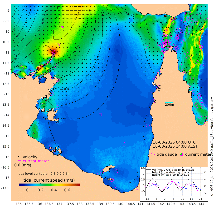 44cm/s 109T +3cm/s rms + 7cm/s -42T. ARA-GOC87 57m 3cm/s 171T +3cm/s rms + 2cm/s -2T. ARA-GOC87 60m 42cm/s 100T +2cm/s rms + 3cm/s 61T. ARA-GOC87 47m -4cm Daru 7cm Bobo Island 20cm Meer Island Barge 11cm Bramble Cay -7cm Unnamed Cay 14cm Pearce Cay 7cm Stephens Island -9cm Merrie England Shoals -21cm Mutacomal Reef 11cm Darnley Island Barge 15cm East Cay 2cm Yorke Island Barge -7cm Rennel Island 5cm Aureed Island -7cm Dungeness Reef -8cm Zagai Island -25cm Yam Island -2cm Dauan Island -15cm Saibai Island -4cm Phipi Reef -7cm Warrior Reef - West -28cm Mabuiag Island Barge -7cm Half Way Island -7cm Coconut Island -16cm Dugong Islet -17cm Poll Island -24cm Kirkcaldie Reef -30cm Suarji Island -24cm Sue Islet -35cm Hawkesbury Island -34cm Alert Patches -30cm Twin Island -13cm Badu Island -29cm St Pauls (Moa Island) -23cm Kubin (Moa Island) -31cm Ince Point -32cm Thursday Island -31cm Nardana Patches -25cm Turtle Head -34cm Round Island -21cm Goods Island -28cm Booby Island -34cm White Rocks Area -43cm Carpentaria -26cm Papou Point -38cm Bampfield Head -19cm Crab Island -32cm Red Wallis Island -26cm Packe Island -17cm Harrington Reef -47cm Herald Camp -17cm Sharp Point -29cm Red Island Point -31cm Possession Island -39cm Alpha Rock -23cm Frederick Point -13cm Wyborn Reef Light -17cm Tetley Island 12cm Triangle Reef -2cm Turtle Head Island 10cm Maclennan Cay 23cm Raine Island 1cm Mcsweeny Reef 1cm Collette Reef 12cm Shadwell Reef 3cm Hannibal Island 10cm Round Point -24cm Vrilya Point 0cm Cape Grenville 13cm Hicks Island 7cm Sir Charles Hardy Island 2cm Harvey Island 4cm Kay Reef 16cm Rocky Island 19cm Chapman Island 15cm Ham Reef 18cm Jubilee Reef 17cm Night Island 15cm Unnamed Reef No. 3 18cm Morris Island 21cm 1st 3 Mile Opening 18cm Creech Reef 27cm Fife Island 28cm Eden Reef 12cm Stanley Island 15cm Normanby River 126cm Yabooma Island 162cm Hutchison River 134cm Elcho Island 121cm North West Crocodile Island 104cm Cape Wessel 131cm Stevens Island 125cm Guluwuru Island 113cm Hopeful Bay 111cm Auster Point 116cm Two Island Bay 177cm Cadell Strait 153cm Mallison Island 113cm Melville Bay (Gove Harbour) 120cm Truant Island 82cm Cape Arnhem 44cm Cape Grey 26cm Hawk Island -6cm Milner Bay (Groote Eylandt) -18cm Cape Beatrice -64cm West Island -66cm Centre Island -40cm Mornington Island -49cm West Wellesley Islands -44cm Bountiful Island -25cm Albert River Mouth -23cm Sweers Island -32cm Karumba -27cm Nassau River Offshore -21cm Christmas Creek -12cm Archer River -15cm Boyd Point -12cm Weipa (Humbug Point) -8cm Pennefather River -27cm Cullen Point