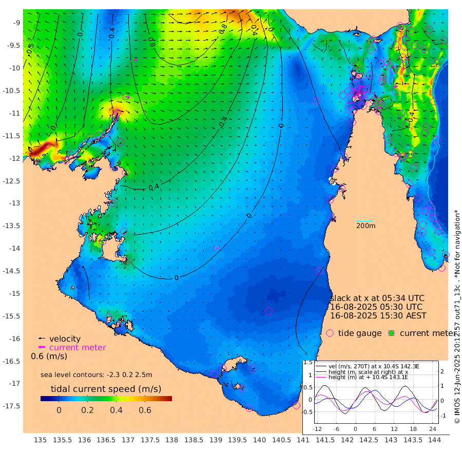 37cm/s 103T +3cm/s rms + 7cm/s -42T. ARA-GOC87 57m 12cm/s 153T +3cm/s rms + 2cm/s -2T. ARA-GOC87 60m 31cm/s 93T +2cm/s rms + 3cm/s 61T. ARA-GOC87 47m 33cm Daru 41cm Bobo Island 51cm Meer Island Barge 44cm Bramble Cay 35cm Unnamed Cay 42cm Pearce Cay 45cm Stephens Island 34cm Merrie England Shoals 19cm Mutacomal Reef 53cm Darnley Island Barge 44cm East Cay 44cm Yorke Island Barge 27cm Rennel Island 40cm Aureed Island 22cm Dungeness Reef 13cm Zagai Island -6cm Yam Island -7cm Dauan Island -9cm Saibai Island -5cm Phipi Reef 9cm Warrior Reef - West -34cm Mabuiag Island Barge 31cm Half Way Island 24cm Coconut Island 22cm Dugong Islet 6cm Poll Island 6cm Kirkcaldie Reef -14cm Suarji Island 9cm Sue Islet -68cm Hawkesbury Island -19cm Alert Patches -16cm Twin Island -46cm Badu Island -17cm St Pauls (Moa Island) -43cm Kubin (Moa Island) -29cm Ince Point -36cm Thursday Island -35cm Nardana Patches -40cm Turtle Head -54cm Round Island -52cm Goods Island -60cm Booby Island -70cm White Rocks Area -43cm Carpentaria -18cm Papou Point -59cm Bampfield Head -48cm Crab Island -64cm Red Wallis Island -50cm Packe Island 20cm Harrington Reef -68cm Herald Camp -8cm Sharp Point -47cm Red Island Point -29cm Possession Island -16cm Alpha Rock 1cm Frederick Point 22cm Wyborn Reef Light 16cm Tetley Island 36cm Triangle Reef 33cm Turtle Head Island 38cm Maclennan Cay 42cm Raine Island 39cm Mcsweeny Reef 39cm Collette Reef 42cm Shadwell Reef 46cm Hannibal Island 41cm Round Point -40cm Vrilya Point 36cm Cape Grenville 42cm Hicks Island 41cm Sir Charles Hardy Island 13cm Harvey Island 38cm Kay Reef 41cm Rocky Island 38cm Chapman Island 38cm Ham Reef 44cm Jubilee Reef 40cm Night Island 38cm Unnamed Reef No. 3 44cm Morris Island 46cm 1st 3 Mile Opening 45cm Creech Reef 48cm Fife Island 56cm Eden Reef 43cm Stanley Island 43cm Normanby River 6cm Yabooma Island 34cm Hutchison River 20cm Elcho Island 5cm North West Crocodile Island 49cm Cape Wessel 36cm Stevens Island 102cm Guluwuru Island 27cm Hopeful Bay 42cm Auster Point 46cm Two Island Bay 82cm Cadell Strait 213cm Mallison Island 80cm Melville Bay (Gove Harbour) 86cm Truant Island 66cm Cape Arnhem 37cm Cape Grey 21cm Hawk Island -6cm Milner Bay (Groote Eylandt) -15cm Cape Beatrice -43cm West Island -43cm Centre Island -26cm Mornington Island -32cm West Wellesley Islands -43cm Bountiful Island -45cm Albert River Mouth -38cm Sweers Island -51cm Karumba -22cm Nassau River Offshore -13cm Christmas Creek -15cm Archer River -15cm Boyd Point -22cm Weipa (Humbug Point) -13cm Pennefather River -40cm Cullen Point