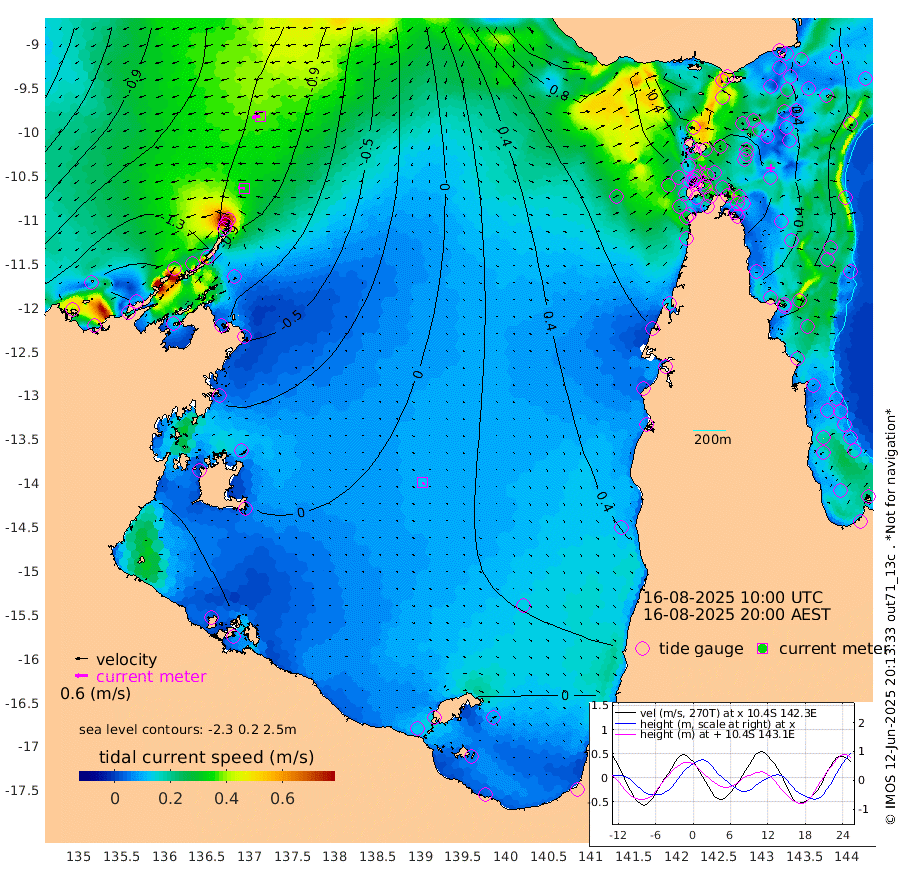 33cm/s -87T +3cm/s rms + 7cm/s -42T. ARA-GOC87 57m 12cm/s 154T +3cm/s rms + 2cm/s -2T. ARA-GOC87 60m 38cm/s -98T +2cm/s rms + 3cm/s 61T. ARA-GOC87 47m 44cm Daru 33cm Bobo Island 20cm Meer Island Barge 30cm Bramble Cay 51cm Unnamed Cay 34cm Pearce Cay 38cm Stephens Island 56cm Merrie England Shoals 60cm Mutacomal Reef 34cm Darnley Island Barge 21cm East Cay 40cm Yorke Island Barge 48cm Rennel Island 40cm Aureed Island 50cm Dungeness Reef 37cm Zagai Island 45cm Yam Island 24cm Dauan Island 27cm Saibai Island 35cm Phipi Reef 34cm Warrior Reef - West 51cm Mabuiag Island Barge 49cm Half Way Island 53cm Coconut Island 57cm Dugong Islet 54cm Poll Island 59cm Kirkcaldie Reef 72cm Suarji Island 56cm Sue Islet 70cm Hawkesbury Island 82cm Alert Patches 70cm Twin Island 59cm Badu Island 67cm St Pauls (Moa Island) 62cm Kubin (Moa Island) 72cm Ince Point 75cm Thursday Island 74cm Nardana Patches 74cm Turtle Head 72cm Round Island 75cm Goods Island 86cm Booby Island 86cm White Rocks Area 99cm Carpentaria 52cm Papou Point 102cm Bampfield Head 64cm Crab Island 82cm Red Wallis Island 74cm Packe Island 64cm Harrington Reef 80cm Herald Camp 21cm Sharp Point 56cm Red Island Point 72cm Possession Island 69cm Alpha Rock 64cm Frederick Point 56cm Wyborn Reef Light 57cm Tetley Island 25cm Triangle Reef 55cm Turtle Head Island 27cm Maclennan Cay 15cm Raine Island 45cm Mcsweeny Reef 43cm Collette Reef 29cm Shadwell Reef 45cm Hannibal Island 34cm Round Point 73cm Vrilya Point 42cm Cape Grenville 25cm Hicks Island 30cm Sir Charles Hardy Island 10cm Harvey Island 36cm Kay Reef 21cm Rocky Island 19cm Chapman Island 19cm Ham Reef 19cm Jubilee Reef 21cm Night Island 21cm Unnamed Reef No. 3 22cm Morris Island 25cm 1st 3 Mile Opening 23cm Creech Reef 12cm Fife Island 17cm Eden Reef 29cm Stanley Island 21cm Normanby River -170cm Yabooma Island -198cm Hutchison River -172cm Elcho Island -169cm North West Crocodile Island -126cm Cape Wessel -162cm Stevens Island -126cm Guluwuru Island -143cm Hopeful Bay -130cm Auster Point -147cm Two Island Bay -208cm Cadell Strait -124cm Mallison Island -114cm Melville Bay (Gove Harbour) -119cm Truant Island -77cm Cape Arnhem -48cm Cape Grey -35cm Hawk Island -13cm Milner Bay (Groote Eylandt) -3cm Cape Beatrice 37cm West Island 41cm Centre Island 13cm Mornington Island 23cm West Wellesley Islands 3cm Bountiful Island -37cm Albert River Mouth -32cm Sweers Island -30cm Karumba 19cm Nassau River Offshore 34cm Christmas Creek 44cm Archer River 52cm Boyd Point 50cm Weipa (Humbug Point) 56cm Pennefather River 66cm Cullen Point