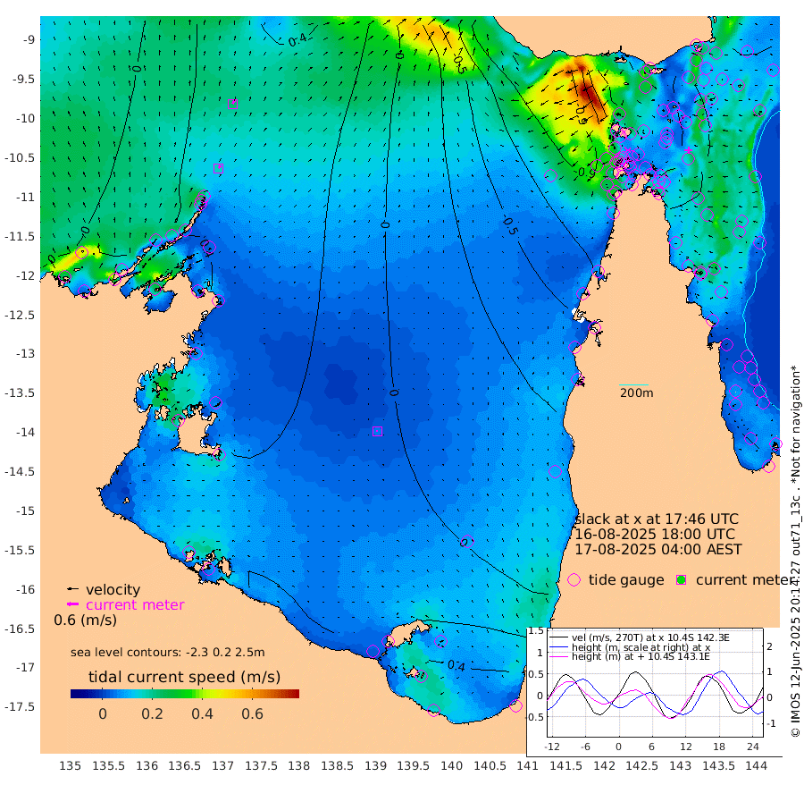 17cm/s 30T +3cm/s rms + 7cm/s -42T. ARA-GOC87 57m 6cm/s -80T +3cm/s rms + 2cm/s -2T. ARA-GOC87 60m 22cm/s 27T +2cm/s rms + 3cm/s 61T. ARA-GOC87 47m 5cm Daru 12cm Bobo Island 21cm Meer Island Barge 16cm Bramble Cay 7cm Unnamed Cay 4cm Pearce Cay 13cm Stephens Island 2cm Merrie England Shoals -6cm Mutacomal Reef 22cm Darnley Island Barge 21cm East Cay 15cm Yorke Island Barge 0cm Rennel Island 8cm Aureed Island -10cm Dungeness Reef -8cm Zagai Island -15cm Yam Island -23cm Dauan Island -12cm Saibai Island -26cm Phipi Reef -6cm Warrior Reef - West -59cm Mabuiag Island Barge -2cm Half Way Island -15cm Coconut Island -5cm Dugong Islet -23cm Poll Island -21cm Kirkcaldie Reef -45cm Suarji Island -13cm Sue Islet -118cm Hawkesbury Island -65cm Alert Patches -54cm Twin Island -114cm Badu Island -54cm St Pauls (Moa Island) -92cm Kubin (Moa Island) -72cm Ince Point -88cm Thursday Island -83cm Nardana Patches -99cm Turtle Head -97cm Round Island -123cm Goods Island -142cm Booby Island -142cm White Rocks Area -122cm Carpentaria -45cm Papou Point -135cm Bampfield Head -120cm Crab Island -137cm Red Wallis Island -112cm Packe Island -15cm Harrington Reef -103cm Herald Camp -10cm Sharp Point -84cm Red Island Point -68cm Possession Island -39cm Alpha Rock -35cm Frederick Point -11cm Wyborn Reef Light -16cm Tetley Island 8cm Triangle Reef -18cm Turtle Head Island 14cm Maclennan Cay 11cm Raine Island 5cm Mcsweeny Reef 9cm Collette Reef 13cm Shadwell Reef 12cm Hannibal Island 9cm Round Point -121cm Vrilya Point 10cm Cape Grenville 18cm Hicks Island 24cm Sir Charles Hardy Island 6cm Harvey Island 13cm Kay Reef 17cm Rocky Island 11cm Chapman Island 17cm Ham Reef 17cm Jubilee Reef 12cm Night Island 11cm Unnamed Reef No. 3 16cm Morris Island 10cm 1st 3 Mile Opening 14cm Creech Reef 19cm Fife Island 24cm Eden Reef 16cm Stanley Island 23cm Normanby River 17cm Yabooma Island 32cm Hutchison River 24cm Elcho Island 22cm North West Crocodile Island 44cm Cape Wessel 30cm Stevens Island 82cm Guluwuru Island 30cm Hopeful Bay 32cm Auster Point 47cm Two Island Bay 68cm Cadell Strait 158cm Mallison Island 61cm Melville Bay (Gove Harbour) 61cm Truant Island 48cm Cape Arnhem 41cm Cape Grey 36cm Hawk Island 25cm Milner Bay (Groote Eylandt) 24cm Cape Beatrice 14cm West Island 10cm Centre Island 44cm Mornington Island 39cm West Wellesley Islands 59cm Bountiful Island 72cm Albert River Mouth 73cm Sweers Island 67cm Karumba 17cm Nassau River Offshore -6cm Christmas Creek -46cm Archer River -55cm Boyd Point -62cm Weipa (Humbug Point) -85cm Pennefather River -95cm Cullen Point