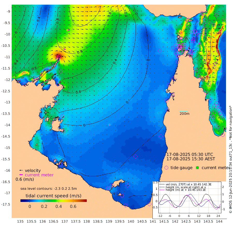 44cm/s 110T +3cm/s rms + 7cm/s -42T. ARA-GOC87 57m 11cm/s 152T +3cm/s rms + 2cm/s -2T. ARA-GOC87 60m 39cm/s 103T +2cm/s rms + 3cm/s 61T. ARA-GOC87 47m -10cm Daru 4cm Bobo Island 37cm Meer Island Barge 22cm Bramble Cay -2cm Unnamed Cay 12cm Pearce Cay 14cm Stephens Island -2cm Merrie England Shoals -24cm Mutacomal Reef 23cm Darnley Island Barge 31cm East Cay 8cm Yorke Island Barge -9cm Rennel Island 4cm Aureed Island -16cm Dungeness Reef -24cm Zagai Island -41cm Yam Island -27cm Dauan Island -29cm Saibai Island -34cm Phipi Reef -27cm Warrior Reef - West -44cm Mabuiag Island Barge -6cm Half Way Island -15cm Coconut Island -18cm Dugong Islet -31cm Poll Island -33cm Kirkcaldie Reef -52cm Suarji Island -29cm Sue Islet -38cm Hawkesbury Island -49cm Alert Patches -45cm Twin Island -24cm Badu Island -48cm St Pauls (Moa Island) -33cm Kubin (Moa Island) -45cm Ince Point -43cm Thursday Island -44cm Nardana Patches -35cm Turtle Head -42cm Round Island -24cm Goods Island -22cm Booby Island -35cm White Rocks Area -14cm Carpentaria -40cm Papou Point -29cm Bampfield Head -15cm Crab Island -29cm Red Wallis Island -33cm Packe Island -24cm Harrington Reef -45cm Herald Camp -22cm Sharp Point -37cm Red Island Point -44cm Possession Island -48cm Alpha Rock -34cm Frederick Point -19cm Wyborn Reef Light -25cm Tetley Island 23cm Triangle Reef -6cm Turtle Head Island 25cm Maclennan Cay 40cm Raine Island 6cm Mcsweeny Reef 9cm Collette Reef 27cm Shadwell Reef 13cm Hannibal Island 19cm Round Point -9cm Vrilya Point 15cm Cape Grenville 26cm Hicks Island 27cm Sir Charles Hardy Island 6cm Harvey Island 24cm Kay Reef 34cm Rocky Island 37cm Chapman Island 36cm Ham Reef 38cm Jubilee Reef 32cm Night Island 36cm Unnamed Reef No. 3 37cm Morris Island 40cm 1st 3 Mile Opening 38cm Creech Reef 40cm Fife Island 52cm Eden Reef 35cm Stanley Island 35cm Normanby River 74cm Yabooma Island 106cm Hutchison River 86cm Elcho Island 70cm North West Crocodile Island 86cm Cape Wessel 89cm Stevens Island 120cm Guluwuru Island 77cm Hopeful Bay 83cm Auster Point 90cm Two Island Bay 137cm Cadell Strait 198cm Mallison Island 98cm Melville Bay (Gove Harbour) 107cm Truant Island 74cm Cape Arnhem 34cm Cape Grey 13cm Hawk Island -22cm Milner Bay (Groote Eylandt) -33cm Cape Beatrice -76cm West Island -76cm Centre Island -64cm Mornington Island -71cm West Wellesley Islands -79cm Bountiful Island -79cm Albert River Mouth -80cm Sweers Island -86cm Karumba -45cm Nassau River Offshore -25cm Christmas Creek -6cm Archer River -2cm Boyd Point -4cm Weipa (Humbug Point) 2cm Pennefather River -14cm Cullen Point