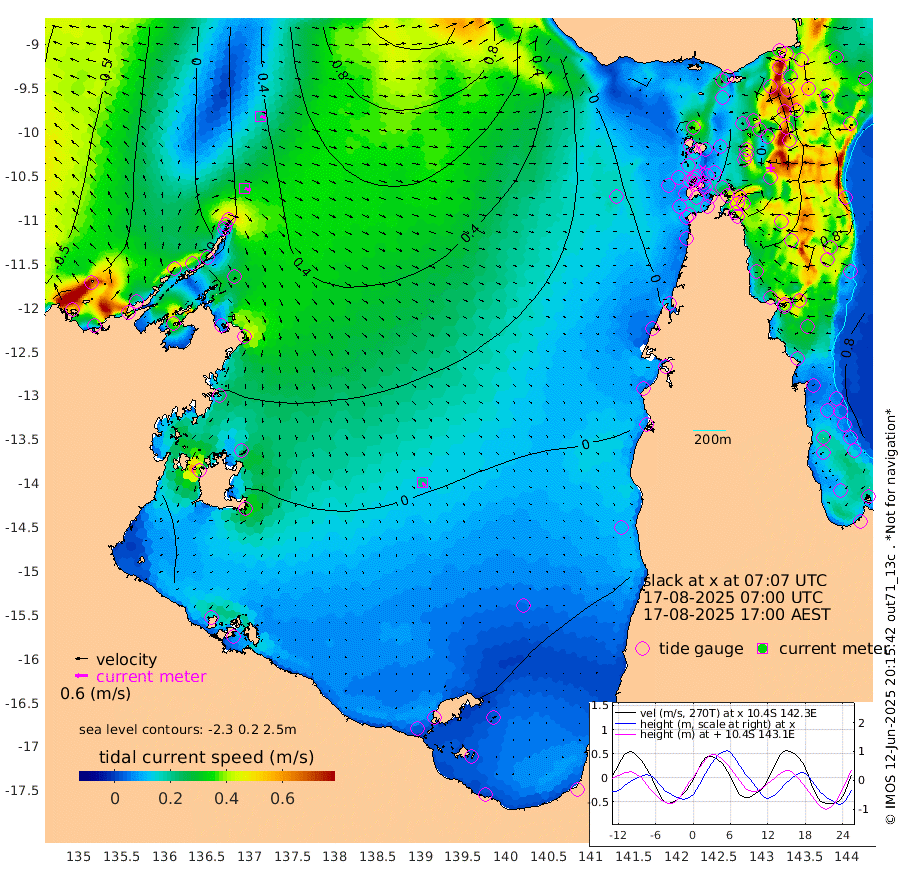 30cm/s 108T +3cm/s rms + 7cm/s -42T. ARA-GOC87 57m 21cm/s 155T +3cm/s rms + 2cm/s -2T. ARA-GOC87 60m 21cm/s 104T +2cm/s rms + 3cm/s 61T. ARA-GOC87 47m 45cm Daru 54cm Bobo Island 77cm Meer Island Barge 71cm Bramble Cay 60cm Unnamed Cay 61cm Pearce Cay 70cm Stephens Island 64cm Merrie England Shoals 40cm Mutacomal Reef 78cm Darnley Island Barge 73cm East Cay 63cm Yorke Island Barge 47cm Rennel Island 55cm Aureed Island 33cm Dungeness Reef 5cm Zagai Island -7cm Yam Island -30cm Dauan Island -26cm Saibai Island -27cm Phipi Reef -2cm Warrior Reef - West -39cm Mabuiag Island Barge 53cm Half Way Island 35cm Coconut Island 43cm Dugong Islet 12cm Poll Island 19cm Kirkcaldie Reef -16cm Suarji Island 17cm Sue Islet -41cm Hawkesbury Island -11cm Alert Patches -9cm Twin Island -37cm Badu Island -18cm St Pauls (Moa Island) -30cm Kubin (Moa Island) -21cm Ince Point -25cm Thursday Island -25cm Nardana Patches -25cm Turtle Head -39cm Round Island -26cm Goods Island -26cm Booby Island -37cm White Rocks Area 2cm Carpentaria -16cm Papou Point -25cm Bampfield Head -22cm Crab Island -31cm Red Wallis Island -27cm Packe Island 39cm Harrington Reef -40cm Herald Camp -10cm Sharp Point -31cm Red Island Point -20cm Possession Island -6cm Alpha Rock 11cm Frederick Point 37cm Wyborn Reef Light 28cm Tetley Island 57cm Triangle Reef 52cm Turtle Head Island 65cm Maclennan Cay 67cm Raine Island 61cm Mcsweeny Reef 64cm Collette Reef 68cm Shadwell Reef 74cm Hannibal Island 69cm Round Point -6cm Vrilya Point 69cm Cape Grenville 69cm Hicks Island 73cm Sir Charles Hardy Island 22cm Harvey Island 74cm Kay Reef 69cm Rocky Island 68cm Chapman Island 69cm Ham Reef 73cm Jubilee Reef 66cm Night Island 69cm Unnamed Reef No. 3 75cm Morris Island 75cm 1st 3 Mile Opening 76cm Creech Reef 72cm Fife Island 92cm Eden Reef 79cm Stanley Island 79cm Normanby River -43cm Yabooma Island -25cm Hutchison River -31cm Elcho Island -45cm North West Crocodile Island 18cm Cape Wessel -13cm Stevens Island 71cm Guluwuru Island -14cm Hopeful Bay 5cm Auster Point 9cm Two Island Bay 25cm Cadell Strait 200cm Mallison Island 45cm Melville Bay (Gove Harbour) 52cm Truant Island 41cm Cape Arnhem 16cm Cape Grey 0cm Hawk Island -26cm Milner Bay (Groote Eylandt) -30cm Cape Beatrice -50cm West Island -49cm Centre Island -45cm Mornington Island -46cm West Wellesley Islands -71cm Bountiful Island -94cm Albert River Mouth -95cm Sweers Island -98cm Karumba -28cm Nassau River Offshore -5cm Christmas Creek 5cm Archer River 9cm Boyd Point 0cm Weipa (Humbug Point) 12cm Pennefather River -11cm Cullen Point