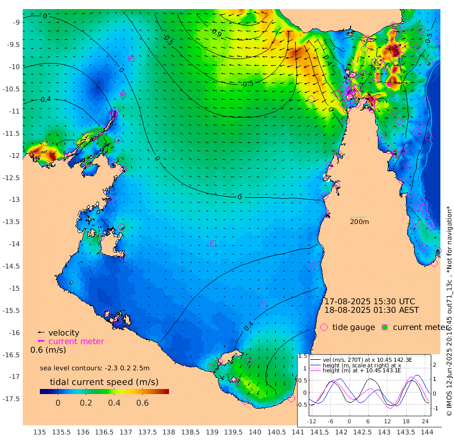 22cm/s -79T +3cm/s rms + 7cm/s -42T. ARA-GOC87 57m 15cm/s -107T +3cm/s rms + 2cm/s -2T. ARA-GOC87 60m 18cm/s -75T +2cm/s rms + 3cm/s 61T. ARA-GOC87 47m -39cm Daru -44cm Bobo Island -38cm Meer Island Barge -49cm Bramble Cay -55cm Unnamed Cay -47cm Pearce Cay -53cm Stephens Island -68cm Merrie England Shoals -53cm Mutacomal Reef -51cm Darnley Island Barge -39cm East Cay -47cm Yorke Island Barge -43cm Rennel Island -39cm Aureed Island -26cm Dungeness Reef 7cm Zagai Island 4cm Yam Island 77cm Dauan Island 60cm Saibai Island 69cm Phipi Reef 26cm Warrior Reef - West 39cm Mabuiag Island Barge -57cm Half Way Island -36cm Coconut Island -48cm Dugong Islet -19cm Poll Island -32cm Kirkcaldie Reef 14cm Suarji Island -22cm Sue Islet 32cm Hawkesbury Island -3cm Alert Patches -8cm Twin Island 45cm Badu Island 5cm St Pauls (Moa Island) 30cm Kubin (Moa Island) 10cm Ince Point 12cm Thursday Island 15cm Nardana Patches 30cm Turtle Head 37cm Round Island 35cm Goods Island 26cm Booby Island 26cm White Rocks Area -17cm Carpentaria -1cm Papou Point 33cm Bampfield Head 15cm Crab Island 22cm Red Wallis Island 26cm Packe Island -55cm Harrington Reef 45cm Herald Camp -1cm Sharp Point 16cm Red Island Point 10cm Possession Island -17cm Alpha Rock -25cm Frederick Point -47cm Wyborn Reef Light -41cm Tetley Island -25cm Triangle Reef -63cm Turtle Head Island -33cm Maclennan Cay -24cm Raine Island -49cm Mcsweeny Reef -48cm Collette Reef -34cm Shadwell Reef -57cm Hannibal Island -51cm Round Point -14cm Vrilya Point -51cm Cape Grenville -38cm Hicks Island -30cm Sir Charles Hardy Island -15cm Harvey Island -49cm Kay Reef -28cm Rocky Island -24cm Chapman Island -27cm Ham Reef -32cm Jubilee Reef -31cm Night Island -30cm Unnamed Reef No. 3 -34cm Morris Island -28cm 1st 3 Mile Opening -33cm Creech Reef -30cm Fife Island -39cm Eden Reef -43cm Stanley Island -47cm Normanby River 69cm Yabooma Island 83cm Hutchison River 70cm Elcho Island 70cm North West Crocodile Island 14cm Cape Wessel 39cm Stevens Island 6cm Guluwuru Island 44cm Hopeful Bay 25cm Auster Point 21cm Two Island Bay 40cm Cadell Strait -85cm Mallison Island 18cm Melville Bay (Gove Harbour) 13cm Truant Island 10cm Cape Arnhem 11cm Cape Grey 18cm Hawk Island 7cm Milner Bay (Groote Eylandt) 14cm Cape Beatrice 1cm West Island -2cm Centre Island 52cm Mornington Island 47cm West Wellesley Islands 95cm Bountiful Island 115cm Albert River Mouth 105cm Sweers Island 114cm Karumba 51cm Nassau River Offshore 41cm Christmas Creek 23cm Archer River 18cm Boyd Point 36cm Weipa (Humbug Point) -17cm Pennefather River 11cm Cullen Point