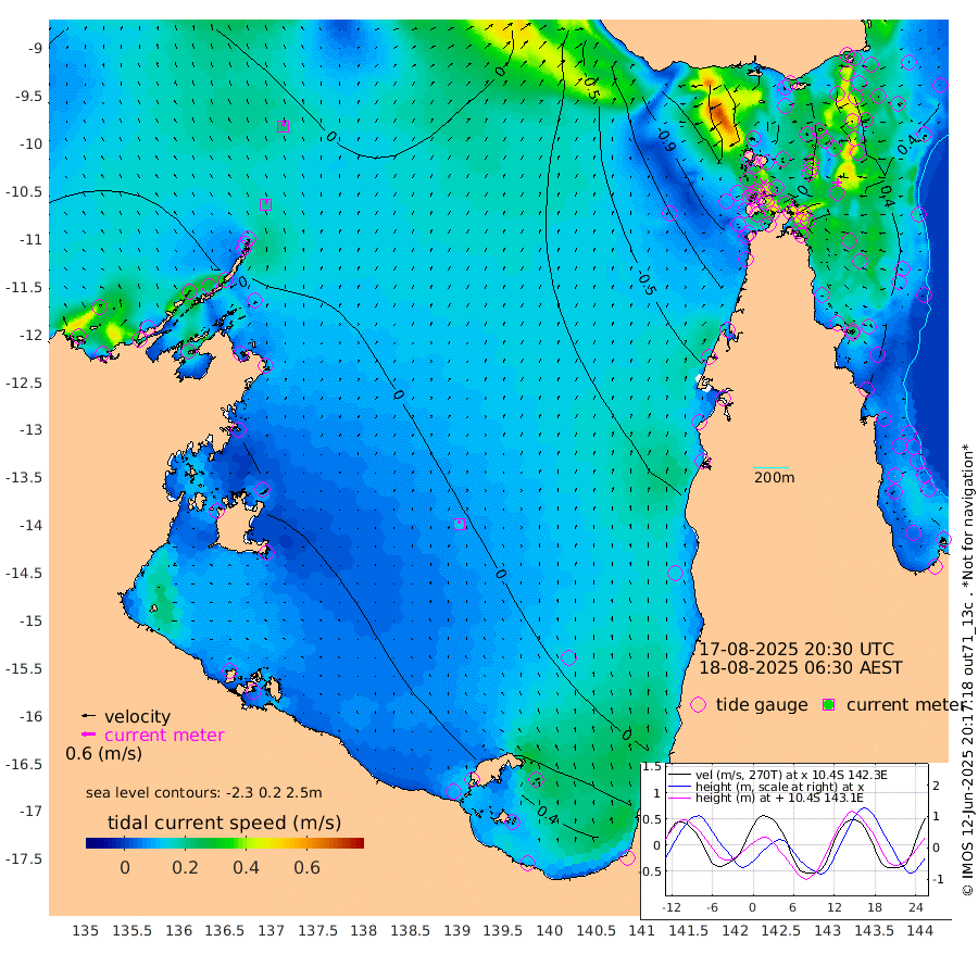 19cm/s 9T +3cm/s rms + 7cm/s -42T. ARA-GOC87 57m 15cm/s -7T +3cm/s rms + 2cm/s -2T. ARA-GOC87 60m 22cm/s 16T +2cm/s rms + 3cm/s 61T. ARA-GOC87 47m 12cm Daru 20cm Bobo Island 27cm Meer Island Barge 32cm Bramble Cay 28cm Unnamed Cay 14cm Pearce Cay 30cm Stephens Island 35cm Merrie England Shoals 18cm Mutacomal Reef 33cm Darnley Island Barge 30cm East Cay 24cm Yorke Island Barge 14cm Rennel Island 14cm Aureed Island -8cm Dungeness Reef -34cm Zagai Island -33cm Yam Island -98cm Dauan Island -77cm Saibai Island -85cm Phipi Reef -45cm Warrior Reef - West -97cm Mabuiag Island Barge 20cm Half Way Island -7cm Coconut Island 11cm Dugong Islet -25cm Poll Island -13cm Kirkcaldie Reef -60cm Suarji Island -16cm Sue Islet -148cm Hawkesbury Island -71cm Alert Patches -59cm Twin Island -158cm Badu Island -70cm St Pauls (Moa Island) -124cm Kubin (Moa Island) -89cm Ince Point -104cm Thursday Island -101cm Nardana Patches -127cm Turtle Head -124cm Round Island -154cm Goods Island -167cm Booby Island -160cm White Rocks Area -122cm Carpentaria -57cm Papou Point -161cm Bampfield Head -137cm Crab Island -156cm Red Wallis Island -135cm Packe Island 7cm Harrington Reef -134cm Herald Camp -11cm Sharp Point -101cm Red Island Point -79cm Possession Island -36cm Alpha Rock -32cm Frederick Point 4cm Wyborn Reef Light -4cm Tetley Island 7cm Triangle Reef 2cm Turtle Head Island 19cm Maclennan Cay 11cm Raine Island 20cm Mcsweeny Reef 25cm Collette Reef 19cm Shadwell Reef 34cm Hannibal Island 27cm Round Point -120cm Vrilya Point 32cm Cape Grenville 27cm Hicks Island 24cm Sir Charles Hardy Island 11cm Harvey Island 33cm Kay Reef 21cm Rocky Island 13cm Chapman Island 19cm Ham Reef 20cm Jubilee Reef 19cm Night Island 17cm Unnamed Reef No. 3 22cm Morris Island 11cm 1st 3 Mile Opening 20cm Creech Reef 21cm Fife Island 31cm Eden Reef 30cm Stanley Island 40cm Normanby River -48cm Yabooma Island -56cm Hutchison River -45cm Elcho Island -41cm North West Crocodile Island -3cm Cape Wessel -24cm Stevens Island 18cm Guluwuru Island -19cm Hopeful Bay -16cm Auster Point -4cm Two Island Bay -17cm Cadell Strait 107cm Mallison Island 4cm Melville Bay (Gove Harbour) 2cm Truant Island 7cm Cape Arnhem 21cm Cape Grey 26cm Hawk Island 44cm Milner Bay (Groote Eylandt) 44cm Cape Beatrice 63cm West Island 65cm Centre Island 62cm Mornington Island 63cm West Wellesley Islands 61cm Bountiful Island 74cm Albert River Mouth 87cm Sweers Island 70cm Karumba 20cm Nassau River Offshore -15cm Christmas Creek -58cm Archer River -74cm Boyd Point -87cm Weipa (Humbug Point) -80cm Pennefather River -107cm Cullen Point