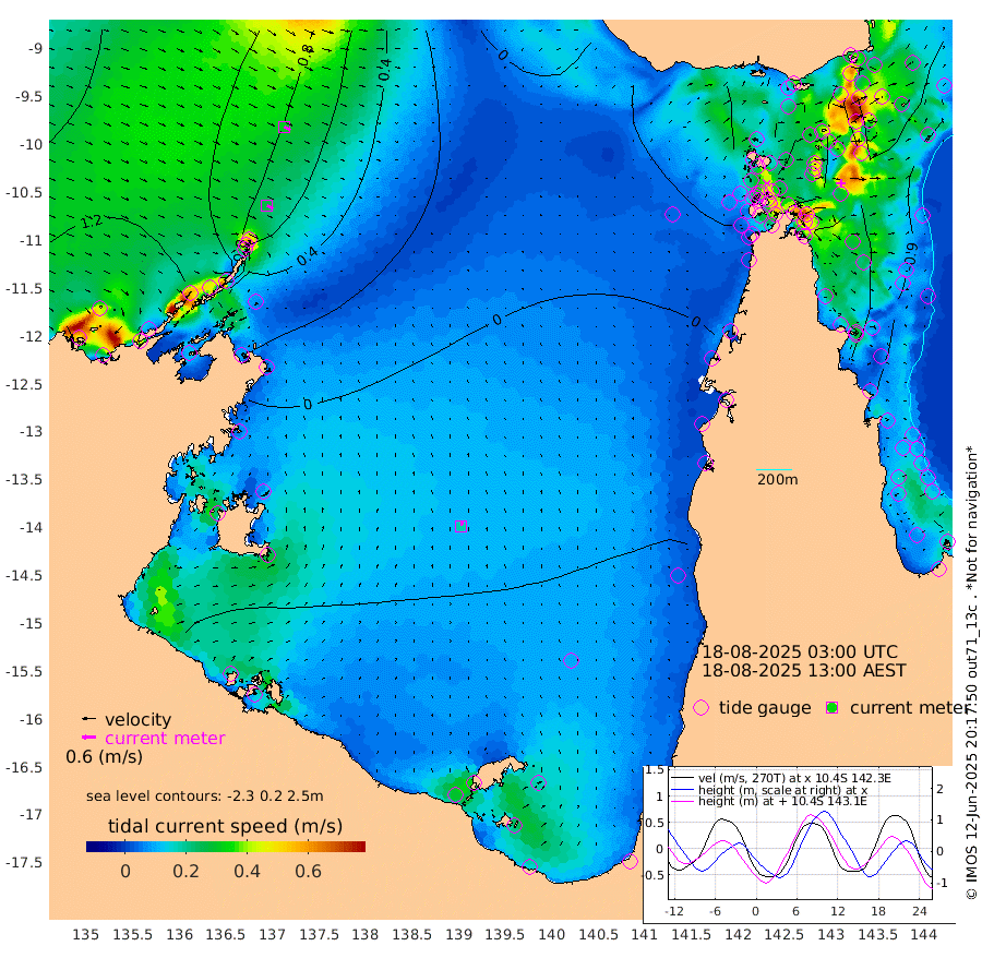 27cm/s 122T +3cm/s rms + 7cm/s -42T. ARA-GOC87 57m 18cm/s 11T +3cm/s rms + 2cm/s -2T. ARA-GOC87 60m 31cm/s 117T +2cm/s rms + 3cm/s 61T. ARA-GOC87 47m -96cm Daru -94cm Bobo Island -83cm Meer Island Barge -97cm Bramble Cay -109cm Unnamed Cay -93cm Pearce Cay -105cm Stephens Island -113cm Merrie England Shoals -104cm Mutacomal Reef -104cm Darnley Island Barge -89cm East Cay -100cm Yorke Island Barge -99cm Rennel Island -95cm Aureed Island -85cm Dungeness Reef -47cm Zagai Island -51cm Yam Island -1cm Dauan Island -5cm Saibai Island -22cm Phipi Reef -50cm Warrior Reef - West 14cm Mabuiag Island Barge -99cm Half Way Island -80cm Coconut Island -100cm Dugong Islet -64cm Poll Island -77cm Kirkcaldie Reef -50cm Suarji Island -67cm Sue Islet 44cm Hawkesbury Island -39cm Alert Patches -39cm Twin Island 53cm Badu Island -29cm St Pauls (Moa Island) 21cm Kubin (Moa Island) -13cm Ince Point 1cm Thursday Island -2cm Nardana Patches 10cm Turtle Head 23cm Round Island 38cm Goods Island 55cm Booby Island 49cm White Rocks Area 39cm Carpentaria -21cm Papou Point 41cm Bampfield Head 54cm Crab Island 50cm Red Wallis Island 22cm Packe Island -99cm Harrington Reef 22cm Herald Camp -12cm Sharp Point 17cm Red Island Point -16cm Possession Island -49cm Alpha Rock -62cm Frederick Point -88cm Wyborn Reef Light -80cm Tetley Island -68cm Triangle Reef -85cm Turtle Head Island -82cm Maclennan Cay -63cm Raine Island -99cm Mcsweeny Reef -99cm Collette Reef -81cm Shadwell Reef -110cm Hannibal Island -96cm Round Point 49cm Vrilya Point -100cm Cape Grenville -89cm Hicks Island -97cm Sir Charles Hardy Island -31cm Harvey Island -95cm Kay Reef -78cm Rocky Island -69cm Chapman Island -70cm Ham Reef -74cm Jubilee Reef -72cm Night Island -71cm Unnamed Reef No. 3 -81cm Morris Island -73cm 1st 3 Mile Opening -79cm Creech Reef -76cm Fife Island -91cm Eden Reef -89cm Stanley Island -94cm Normanby River 143cm Yabooma Island 151cm Hutchison River 140cm Elcho Island 139cm North West Crocodile Island 83cm Cape Wessel 126cm Stevens Island 40cm Guluwuru Island 108cm Hopeful Bay 97cm Auster Point 98cm Two Island Bay 125cm Cadell Strait -36cm Mallison Island 49cm Melville Bay (Gove Harbour) 55cm Truant Island 28cm Cape Arnhem 9cm Cape Grey -2cm Hawk Island -6cm Milner Bay (Groote Eylandt) -22cm Cape Beatrice -47cm West Island -47cm Centre Island -79cm Mornington Island -85cm West Wellesley Islands -84cm Bountiful Island -62cm Albert River Mouth -59cm Sweers Island -66cm Karumba -69cm Nassau River Offshore -60cm Christmas Creek -17cm Archer River -6cm Boyd Point -2cm Weipa (Humbug Point) 21cm Pennefather River 31cm Cullen Point