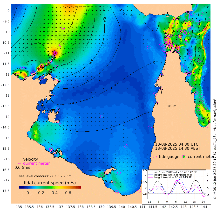 41cm/s 117T +3cm/s rms + 7cm/s -42T. ARA-GOC87 57m 6cm/s 41T +3cm/s rms + 2cm/s -2T. ARA-GOC87 60m 41cm/s 111T +2cm/s rms + 3cm/s 61T. ARA-GOC87 47m -91cm Daru -81cm Bobo Island -39cm Meer Island Barge -63cm Bramble Cay -92cm Unnamed Cay -74cm Pearce Cay -78cm Stephens Island -95cm Merrie England Shoals -105cm Mutacomal Reef -69cm Darnley Island Barge -47cm East Cay -79cm Yorke Island Barge -90cm Rennel Island -80cm Aureed Island -86cm Dungeness Reef -63cm Zagai Island -75cm Yam Island -25cm Dauan Island -27cm Saibai Island -47cm Phipi Reef -67cm Warrior Reef - West -23cm Mabuiag Island Barge -89cm Half Way Island -83cm Coconut Island -98cm Dugong Islet -82cm Poll Island -91cm Kirkcaldie Reef -83cm Suarji Island -81cm Sue Islet 15cm Hawkesbury Island -72cm Alert Patches -71cm Twin Island 23cm Badu Island -66cm St Pauls (Moa Island) -6cm Kubin (Moa Island) -47cm Ince Point -33cm Thursday Island -37cm Nardana Patches -16cm Turtle Head -7cm Round Island 18cm Goods Island 34cm Booby Island 20cm White Rocks Area 27cm Carpentaria -52cm Papou Point 21cm Bampfield Head 35cm Crab Island 25cm Red Wallis Island -4cm Packe Island -104cm Harrington Reef -2cm Herald Camp -28cm Sharp Point -12cm Red Island Point -46cm Possession Island -78cm Alpha Rock -82cm Frederick Point -92cm Wyborn Reef Light -90cm Tetley Island -37cm Triangle Reef -84cm Turtle Head Island -45cm Maclennan Cay -19cm Raine Island -79cm Mcsweeny Reef -74cm Collette Reef -44cm Shadwell Reef -80cm Hannibal Island -64cm Round Point 33cm Vrilya Point -67cm Cape Grenville -51cm Hicks Island -52cm Sir Charles Hardy Island -20cm Harvey Island -53cm Kay Reef -34cm Rocky Island -23cm Chapman Island -24cm Ham Reef -28cm Jubilee Reef -33cm Night Island -26cm Unnamed Reef No. 3 -34cm Morris Island -26cm 1st 3 Mile Opening -32cm Creech Reef -31cm Fife Island -29cm Eden Reef -41cm Stanley Island -45cm Normanby River 152cm Yabooma Island 177cm Hutchison River 157cm Elcho Island 147cm North West Crocodile Island 112cm Cape Wessel 143cm Stevens Island 99cm Guluwuru Island 128cm Hopeful Bay 119cm Auster Point 125cm Two Island Bay 170cm Cadell Strait 86cm Mallison Island 92cm Melville Bay (Gove Harbour) 100cm Truant Island 61cm Cape Arnhem 24cm Cape Grey 4cm Hawk Island -21cm Milner Bay (Groote Eylandt) -38cm Cape Beatrice -83cm West Island -83cm Centre Island -95cm Mornington Island -103cm West Wellesley Islands -102cm Bountiful Island -89cm Albert River Mouth -90cm Sweers Island -96cm Karumba -74cm Nassau River Offshore -53cm Christmas Creek -9cm Archer River 1cm Boyd Point 6cm Weipa (Humbug Point) 17cm Pennefather River 21cm Cullen Point