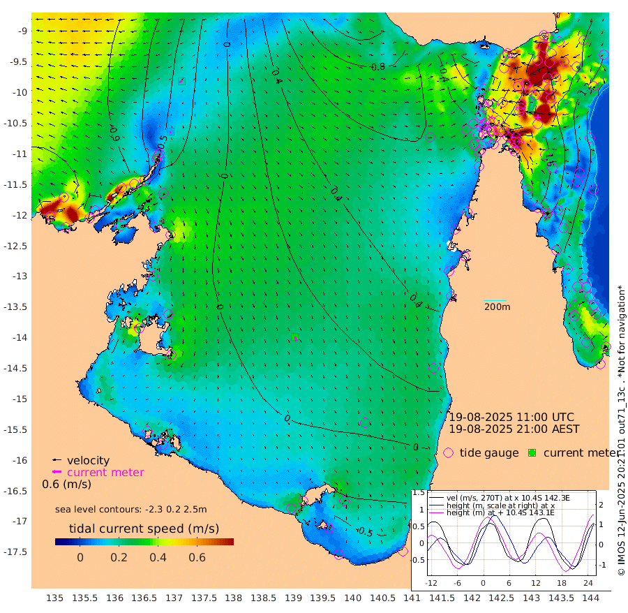 9cm/s -147T +3cm/s rms + 7cm/s -42T. ARA-GOC87 57m 35cm/s 165T +3cm/s rms + 2cm/s -2T. ARA-GOC87 60m 18cm/s -117T +2cm/s rms + 3cm/s 61T. ARA-GOC87 47m 171cm Daru 165cm Bobo Island 116cm Meer Island Barge 146cm Bramble Cay 174cm Unnamed Cay 173cm Pearce Cay 168cm Stephens Island 181cm Merrie England Shoals 183cm Mutacomal Reef 154cm Darnley Island Barge 126cm East Cay 161cm Yorke Island Barge 174cm Rennel Island 163cm Aureed Island 166cm Dungeness Reef 118cm Zagai Island 129cm Yam Island 70cm Dauan Island 61cm Saibai Island 85cm Phipi Reef 122cm Warrior Reef - West 76cm Mabuiag Island Barge 177cm Half Way Island 167cm Coconut Island 183cm Dugong Islet 155cm Poll Island 166cm Kirkcaldie Reef 142cm Suarji Island 146cm Sue Islet 98cm Hawkesbury Island 151cm Alert Patches 149cm Twin Island 84cm Badu Island 137cm St Pauls (Moa Island) 103cm Kubin (Moa Island) 126cm Ince Point 120cm Thursday Island 119cm Nardana Patches 113cm Turtle Head 87cm Round Island 98cm Goods Island 88cm Booby Island 95cm White Rocks Area 79cm Carpentaria 118cm Papou Point 91cm Bampfield Head 66cm Crab Island 91cm Red Wallis Island 110cm Packe Island 195cm Harrington Reef 87cm Herald Camp 33cm Sharp Point 94cm Red Island Point 115cm Possession Island 139cm Alpha Rock 164cm Frederick Point 176cm Wyborn Reef Light 171cm Tetley Island 109cm Triangle Reef 193cm Turtle Head Island 120cm Maclennan Cay 90cm Raine Island 165cm Mcsweeny Reef 153cm Collette Reef 115cm Shadwell Reef 166cm Hannibal Island 153cm Round Point 70cm Vrilya Point 144cm Cape Grenville 128cm Hicks Island 131cm Sir Charles Hardy Island 43cm Harvey Island 129cm Kay Reef 104cm Rocky Island 96cm Chapman Island 93cm Ham Reef 102cm Jubilee Reef 100cm Night Island 99cm Unnamed Reef No. 3 111cm Morris Island 103cm 1st 3 Mile Opening 108cm Creech Reef 107cm Fife Island 116cm Eden Reef 117cm Stanley Island 124cm Normanby River -110cm Yabooma Island -115cm Hutchison River -118cm Elcho Island -118cm North West Crocodile Island -60cm Cape Wessel -97cm Stevens Island -30cm Guluwuru Island -97cm Hopeful Bay -71cm Auster Point -77cm Two Island Bay -90cm Cadell Strait 15cm Mallison Island -40cm Melville Bay (Gove Harbour) -38cm Truant Island -26cm Cape Arnhem -29cm Cape Grey -35cm Hawk Island -56cm Milner Bay (Groote Eylandt) -42cm Cape Beatrice -38cm West Island -42cm Centre Island -38cm Mornington Island -27cm West Wellesley Islands -63cm Bountiful Island -122cm Albert River Mouth -138cm Sweers Island -110cm Karumba 4cm Nassau River Offshore 41cm Christmas Creek 51cm Archer River 61cm Boyd Point 54cm Weipa (Humbug Point) 61cm Pennefather River 58cm Cullen Point