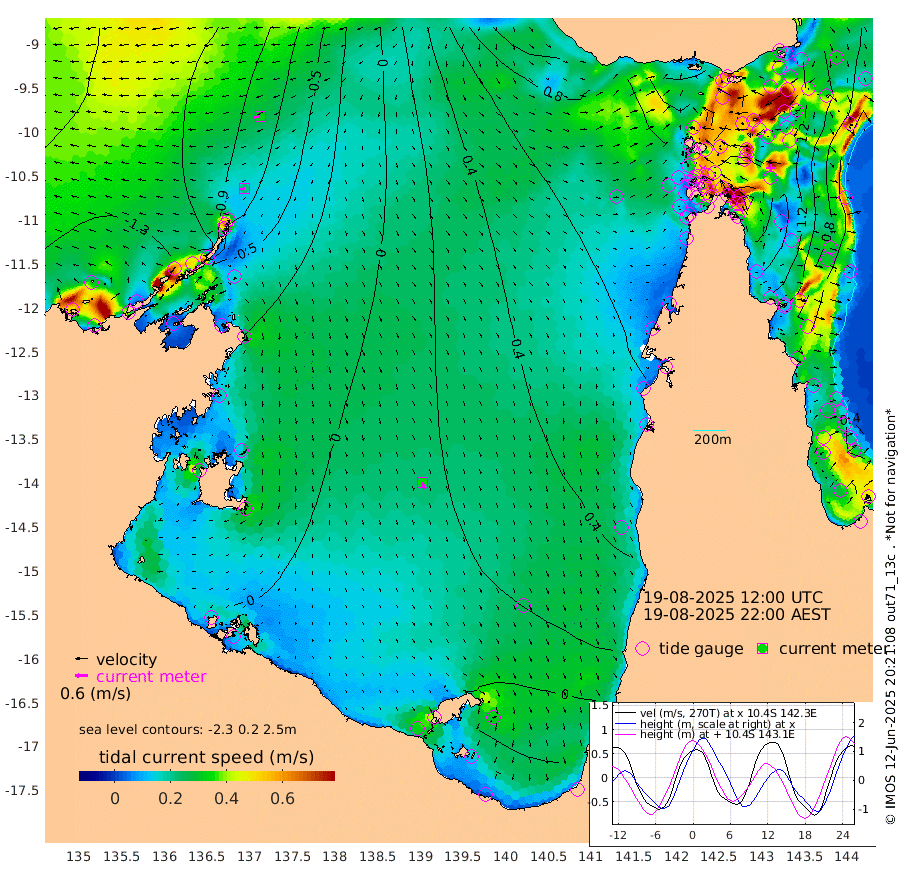 21cm/s -104T +3cm/s rms + 7cm/s -42T. ARA-GOC87 57m 33cm/s 169T +3cm/s rms + 2cm/s -2T. ARA-GOC87 60m 32cm/s -104T +2cm/s rms + 3cm/s 61T. ARA-GOC87 47m 166cm Daru 151cm Bobo Island 78cm Meer Island Barge 110cm Bramble Cay 152cm Unnamed Cay 152cm Pearce Cay 139cm Stephens Island 153cm Merrie England Shoals 175cm Mutacomal Reef 123cm Darnley Island Barge 87cm East Cay 142cm Yorke Island Barge 162cm Rennel Island 150cm Aureed Island 170cm Dungeness Reef 147cm Zagai Island 160cm Yam Island 127cm Dauan Island 112cm Saibai Island 139cm Phipi Reef 158cm Warrior Reef - West 125cm Mabuiag Island Barge 161cm Half Way Island 169cm Coconut Island 177cm Dugong Islet 172cm Poll Island 180cm Kirkcaldie Reef 181cm Suarji Island 162cm Sue Islet 132cm Hawkesbury Island 186cm Alert Patches 181cm Twin Island 126cm Badu Island 179cm St Pauls (Moa Island) 139cm Kubin (Moa Island) 165cm Ince Point 158cm Thursday Island 159cm Nardana Patches 150cm Turtle Head 124cm Round Island 129cm Goods Island 117cm Booby Island 125cm White Rocks Area 95cm Carpentaria 150cm Papou Point 119cm Bampfield Head 92cm Crab Island 121cm Red Wallis Island 143cm Packe Island 192cm Harrington Reef 122cm Herald Camp 50cm Sharp Point 125cm Red Island Point 148cm Possession Island 165cm Alpha Rock 182cm Frederick Point 173cm Wyborn Reef Light 175cm Tetley Island 85cm Triangle Reef 182cm Turtle Head Island 88cm Maclennan Cay 54cm Raine Island 144cm Mcsweeny Reef 128cm Collette Reef 84cm Shadwell Reef 135cm Hannibal Island 117cm Round Point 88cm Vrilya Point 109cm Cape Grenville 94cm Hicks Island 95cm Sir Charles Hardy Island 33cm Harvey Island 88cm Kay Reef 66cm Rocky Island 57cm Chapman Island 54cm Ham Reef 64cm Jubilee Reef 67cm Night Island 61cm Unnamed Reef No. 3 70cm Morris Island 66cm 1st 3 Mile Opening 69cm Creech Reef 69cm Fife Island 63cm Eden Reef 73cm Stanley Island 75cm Normanby River -142cm Yabooma Island -154cm Hutchison River -151cm Elcho Island -145cm North West Crocodile Island -99cm Cape Wessel -134cm Stevens Island -78cm Guluwuru Island -132cm Hopeful Bay -107cm Auster Point -116cm Two Island Bay -140cm Cadell Strait -77cm Mallison Island -76cm Melville Bay (Gove Harbour) -78cm Truant Island -51cm Cape Arnhem -42cm Cape Grey -40cm Hawk Island -50cm Milner Bay (Groote Eylandt) -32cm Cape Beatrice -15cm West Island -20cm Centre Island -11cm Mornington Island -1cm West Wellesley Islands -31cm Bountiful Island -83cm Albert River Mouth -102cm Sweers Island -68cm Karumba 26cm Nassau River Offshore 58cm Christmas Creek 61cm Archer River 72cm Boyd Point 67cm Weipa (Humbug Point) 70cm Pennefather River 77cm Cullen Point