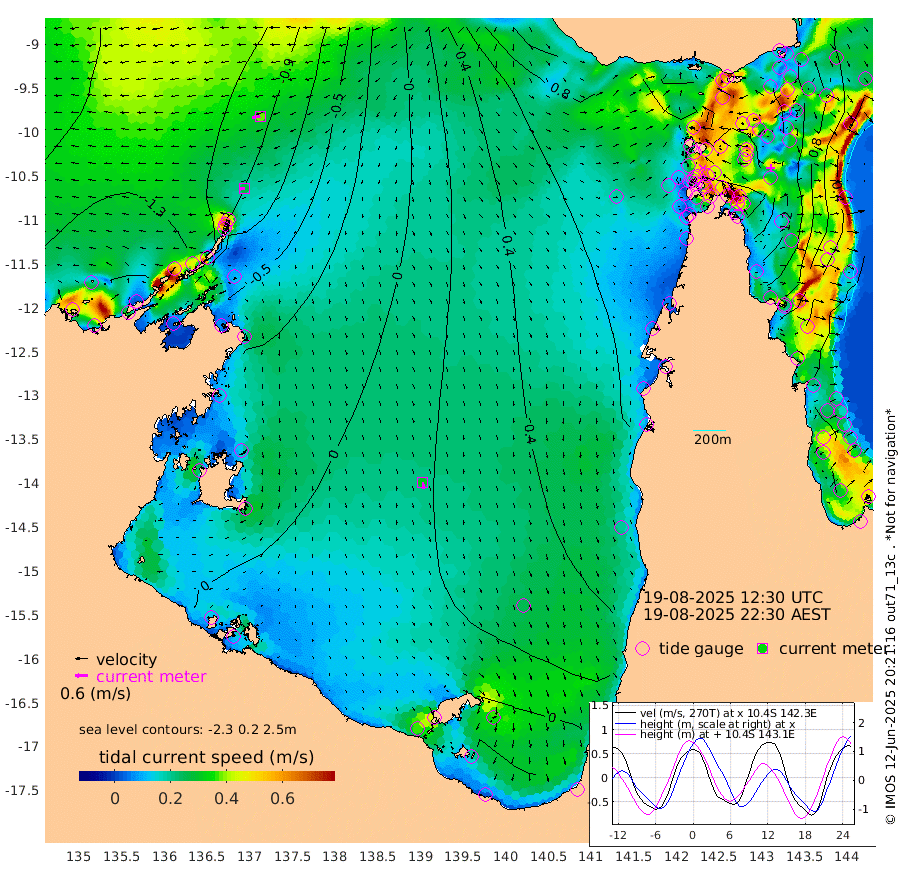 27cm/s -98T +3cm/s rms + 7cm/s -42T. ARA-GOC87 57m 32cm/s 171T +3cm/s rms + 2cm/s -2T. ARA-GOC87 60m 38cm/s -101T +2cm/s rms + 3cm/s 61T. ARA-GOC87 47m 153cm Daru 133cm Bobo Island 54cm Meer Island Barge 85cm Bramble Cay 130cm Unnamed Cay 130cm Pearce Cay 115cm Stephens Island 128cm Merrie England Shoals 159cm Mutacomal Reef 98cm Darnley Island Barge 62cm East Cay 123cm Yorke Island Barge 144cm Rennel Island 133cm Aureed Island 161cm Dungeness Reef 152cm Zagai Island 165cm Yam Island 151cm Dauan Island 133cm Saibai Island 160cm Phipi Reef 166cm Warrior Reef - West 144cm Mabuiag Island Barge 142cm Half Way Island 158cm Coconut Island 162cm Dugong Islet 169cm Poll Island 174cm Kirkcaldie Reef 190cm Suarji Island 160cm Sue Islet 145cm Hawkesbury Island 192cm Alert Patches 185cm Twin Island 143cm Badu Island 189cm St Pauls (Moa Island) 151cm Kubin (Moa Island) 175cm Ince Point 169cm Thursday Island 170cm Nardana Patches 163cm Turtle Head 138cm Round Island 141cm Goods Island 129cm Booby Island 136cm White Rocks Area 100cm Carpentaria 157cm Papou Point 130cm Bampfield Head 103cm Crab Island 133cm Red Wallis Island 154cm Packe Island 176cm Harrington Reef 136cm Herald Camp 55cm Sharp Point 135cm Red Island Point 156cm Possession Island 167cm Alpha Rock 179cm Frederick Point 159cm Wyborn Reef Light 164cm Tetley Island 68cm Triangle Reef 164cm Turtle Head Island 67cm Maclennan Cay 34cm Raine Island 123cm Mcsweeny Reef 106cm Collette Reef 63cm Shadwell Reef 109cm Hannibal Island 91cm Round Point 95cm Vrilya Point 84cm Cape Grenville 70cm Hicks Island 72cm Sir Charles Hardy Island 25cm Harvey Island 61cm Kay Reef 44cm Rocky Island 35cm Chapman Island 32cm Ham Reef 41cm Jubilee Reef 46cm Night Island 38cm Unnamed Reef No. 3 46cm Morris Island 44cm 1st 3 Mile Opening 46cm Creech Reef 46cm Fife Island 33cm Eden Reef 46cm Stanley Island 46cm Normanby River -149cm Yabooma Island -163cm Hutchison River -158cm Elcho Island -150cm North West Crocodile Island -113cm Cape Wessel -145cm Stevens Island -97cm Guluwuru Island -143cm Hopeful Bay -119cm Auster Point -130cm Two Island Bay -157cm Cadell Strait -119cm Mallison Island -90cm Melville Bay (Gove Harbour) -93cm Truant Island -61cm Cape Arnhem -47cm Cape Grey -41cm Hawk Island -46cm Milner Bay (Groote Eylandt) -27cm Cape Beatrice -5cm West Island -10cm Centre Island 2cm Mornington Island 10cm West Wellesley Islands -13cm Bountiful Island -59cm Albert River Mouth -79cm Sweers Island -44cm Karumba 37cm Nassau River Offshore 65cm Christmas Creek 65cm Archer River 76cm Boyd Point 74cm Weipa (Humbug Point) 72cm Pennefather River 85cm Cullen Point