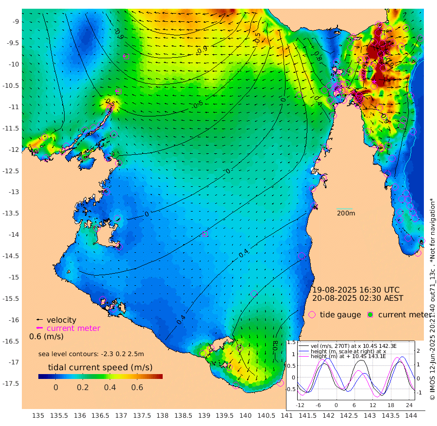 37cm/s -83T +3cm/s rms + 7cm/s -42T. ARA-GOC87 57m 17cm/s -125T +3cm/s rms + 2cm/s -2T. ARA-GOC87 60m 36cm/s -87T +2cm/s rms + 3cm/s 61T. ARA-GOC87 47m -73cm Daru -88cm Bobo Island -74cm Meer Island Barge -93cm Bramble Cay -96cm Unnamed Cay -96cm Pearce Cay -99cm Stephens Island -109cm Merrie England Shoals -88cm Mutacomal Reef -92cm Darnley Island Barge -81cm East Cay -84cm Yorke Island Barge -83cm Rennel Island -79cm Aureed Island -54cm Dungeness Reef -2cm Zagai Island -4cm Yam Island 95cm Dauan Island 78cm Saibai Island 84cm Phipi Reef 20cm Warrior Reef - West 55cm Mabuiag Island Barge -94cm Half Way Island -66cm Coconut Island -82cm Dugong Islet -40cm Poll Island -48cm Kirkcaldie Reef 4cm Suarji Island -36cm Sue Islet 48cm Hawkesbury Island -4cm Alert Patches -15cm Twin Island 68cm Badu Island 4cm St Pauls (Moa Island) 40cm Kubin (Moa Island) 17cm Ince Point 24cm Thursday Island 26cm Nardana Patches 46cm Turtle Head 48cm Round Island 56cm Goods Island 58cm Booby Island 47cm White Rocks Area 21cm Carpentaria -5cm Papou Point 49cm Bampfield Head 52cm Crab Island 52cm Red Wallis Island 44cm Packe Island -92cm Harrington Reef 66cm Herald Camp 7cm Sharp Point 32cm Red Island Point 10cm Possession Island -26cm Alpha Rock -45cm Frederick Point -85cm Wyborn Reef Light -75cm Tetley Island -55cm Triangle Reef -107cm Turtle Head Island -66cm Maclennan Cay -52cm Raine Island -89cm Mcsweeny Reef -84cm Collette Reef -63cm Shadwell Reef -99cm Hannibal Island -97cm Round Point 29cm Vrilya Point -89cm Cape Grenville -78cm Hicks Island -68cm Sir Charles Hardy Island -27cm Harvey Island -86cm Kay Reef -62cm Rocky Island -57cm Chapman Island -57cm Ham Reef -63cm Jubilee Reef -60cm Night Island -60cm Unnamed Reef No. 3 -69cm Morris Island -57cm 1st 3 Mile Opening -65cm Creech Reef -67cm Fife Island -80cm Eden Reef -76cm Stanley Island -92cm Normanby River -44cm Yabooma Island -46cm Hutchison River -37cm Elcho Island -32cm North West Crocodile Island -75cm Cape Wessel -67cm Stevens Island -76cm Guluwuru Island -52cm Hopeful Bay -68cm Auster Point -74cm Two Island Bay -76cm Cadell Strait -144cm Mallison Island -59cm Melville Bay (Gove Harbour) -70cm Truant Island -41cm Cape Arnhem -23cm Cape Grey -6cm Hawk Island 2cm Milner Bay (Groote Eylandt) 16cm Cape Beatrice 27cm West Island 28cm Centre Island 83cm Mornington Island 76cm West Wellesley Islands 116cm Bountiful Island 144cm Albert River Mouth 124cm Sweers Island 145cm Karumba 86cm Nassau River Offshore 77cm Christmas Creek 56cm Archer River 47cm Boyd Point 65cm Weipa (Humbug Point) 21cm Pennefather River 48cm Cullen Point