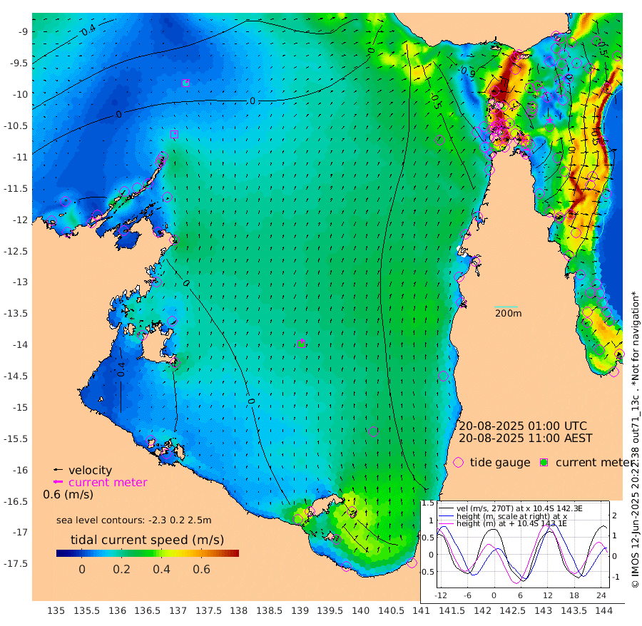 13cm/s 30T +3cm/s rms + 7cm/s -42T. ARA-GOC87 57m 34cm/s 9T +3cm/s rms + 2cm/s -2T. ARA-GOC87 60m 16cm/s 49T +2cm/s rms + 3cm/s 61T. ARA-GOC87 47m 24cm Daru 20cm Bobo Island -46cm Meer Island Barge -25cm Bramble Cay 5cm Unnamed Cay 3cm Pearce Cay -6cm Stephens Island 6cm Merrie England Shoals 29cm Mutacomal Reef -17cm Darnley Island Barge -45cm East Cay 4cm Yorke Island Barge 12cm Rennel Island 10cm Aureed Island 19cm Dungeness Reef 34cm Zagai Island 35cm Yam Island -11cm Dauan Island -3cm Saibai Island -5cm Phipi Reef 20cm Warrior Reef - West 8cm Mabuiag Island Barge 18cm Half Way Island 29cm Coconut Island 24cm Dugong Islet 37cm Poll Island 33cm Kirkcaldie Reef 40cm Suarji Island 34cm Sue Islet -63cm Hawkesbury Island 27cm Alert Patches 34cm Twin Island -55cm Badu Island 41cm St Pauls (Moa Island) -34cm Kubin (Moa Island) 11cm Ince Point -2cm Thursday Island 1cm Nardana Patches -39cm Turtle Head -35cm Round Island -77cm Goods Island -88cm Booby Island -70cm White Rocks Area -63cm Carpentaria 34cm Papou Point -76cm Bampfield Head -71cm Crab Island -77cm Red Wallis Island -54cm Packe Island 41cm Harrington Reef -71cm Herald Camp 23cm Sharp Point -27cm Red Island Point 12cm Possession Island 41cm Alpha Rock 37cm Frederick Point 37cm Wyborn Reef Light 41cm Tetley Island -36cm Triangle Reef 36cm Turtle Head Island -43cm Maclennan Cay -63cm Raine Island 1cm Mcsweeny Reef -10cm Collette Reef -42cm Shadwell Reef -11cm Hannibal Island -25cm Round Point -63cm Vrilya Point -29cm Cape Grenville -37cm Hicks Island -57cm Sir Charles Hardy Island -8cm Harvey Island -47cm Kay Reef -59cm Rocky Island -69cm Chapman Island -66cm Ham Reef -60cm Jubilee Reef -49cm Night Island -65cm Unnamed Reef No. 3 -60cm Morris Island -64cm 1st 3 Mile Opening -62cm Creech Reef -54cm Fife Island -80cm Eden Reef -61cm Stanley Island -56cm Normanby River -11cm Yabooma Island -27cm Hutchison River -17cm Elcho Island -9cm North West Crocodile Island 4cm Cape Wessel 6cm Stevens Island -20cm Guluwuru Island -7cm Hopeful Bay 5cm Auster Point 5cm Two Island Bay -19cm Cadell Strait -51cm Mallison Island -9cm Melville Bay (Gove Harbour) -7cm Truant Island -4cm Cape Arnhem 16cm Cape Grey 22cm Hawk Island 58cm Milner Bay (Groote Eylandt) 45cm Cape Beatrice 73cm West Island 73cm Centre Island 18cm Mornington Island 19cm West Wellesley Islands 7cm Bountiful Island 21cm Albert River Mouth 52cm Sweers Island 18cm Karumba -32cm Nassau River Offshore -66cm Christmas Creek -82cm Archer River -79cm Boyd Point -97cm Weipa (Humbug Point) -54cm Pennefather River -71cm Cullen Point