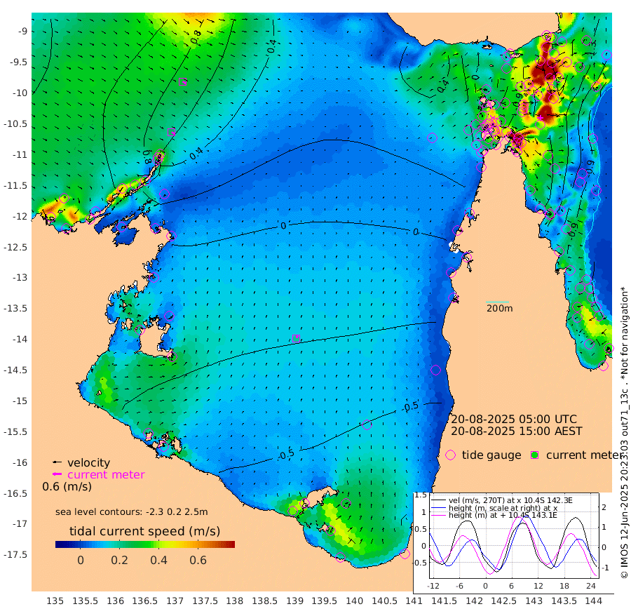 24cm/s 121T +3cm/s rms + 7cm/s -42T. ARA-GOC87 57m 19cm/s 23T +3cm/s rms + 2cm/s -2T. ARA-GOC87 60m 28cm/s 119T +2cm/s rms + 3cm/s 61T. ARA-GOC87 47m -149cm Daru -145cm Bobo Island -97cm Meer Island Barge -128cm Bramble Cay -151cm Unnamed Cay -148cm Pearce Cay -146cm Stephens Island -156cm Merrie England Shoals -157cm Mutacomal Reef -133cm Darnley Island Barge -111cm East Cay -137cm Yorke Island Barge -150cm Rennel Island -142cm Aureed Island -139cm Dungeness Reef -91cm Zagai Island -98cm Yam Island -38cm Dauan Island -28cm Saibai Island -70cm Phipi Reef -101cm Warrior Reef - West -13cm Mabuiag Island Barge -147cm Half Way Island -134cm Coconut Island -151cm Dugong Islet -119cm Poll Island -130cm Kirkcaldie Reef -104cm Suarji Island -108cm Sue Islet 27cm Hawkesbury Island -87cm Alert Patches -90cm Twin Island 27cm Badu Island -79cm St Pauls (Moa Island) -6cm Kubin (Moa Island) -54cm Ince Point -34cm Thursday Island -38cm Nardana Patches -21cm Turtle Head 6cm Round Island 20cm Goods Island 51cm Booby Island 33cm White Rocks Area 64cm Carpentaria -64cm Papou Point 50cm Bampfield Head 47cm Crab Island 38cm Red Wallis Island -6cm Packe Island -159cm Harrington Reef 19cm Herald Camp -26cm Sharp Point -14cm Red Island Point -49cm Possession Island -90cm Alpha Rock -116cm Frederick Point -140cm Wyborn Reef Light -132cm Tetley Island -86cm Triangle Reef -140cm Turtle Head Island -99cm Maclennan Cay -71cm Raine Island -139cm Mcsweeny Reef -131cm Collette Reef -95cm Shadwell Reef -145cm Hannibal Island -132cm Round Point 52cm Vrilya Point -124cm Cape Grenville -112cm Hicks Island -111cm Sir Charles Hardy Island -38cm Harvey Island -109cm Kay Reef -88cm Rocky Island -78cm Chapman Island -73cm Ham Reef -82cm Jubilee Reef -85cm Night Island -79cm Unnamed Reef No. 3 -93cm Morris Island -79cm 1st 3 Mile Opening -88cm Creech Reef -95cm Fife Island -98cm Eden Reef -98cm Stanley Island -110cm Normanby River 109cm Yabooma Island 112cm Hutchison River 111cm Elcho Island 106cm North West Crocodile Island 74cm Cape Wessel 97cm Stevens Island 39cm Guluwuru Island 89cm Hopeful Bay 81cm Auster Point 86cm Two Island Bay 91cm Cadell Strait 3cm Mallison Island 41cm Melville Bay (Gove Harbour) 49cm Truant Island 25cm Cape Arnhem 6cm Cape Grey -8cm Hawk Island -8cm Milner Bay (Groote Eylandt) -29cm Cape Beatrice -50cm West Island -48cm Centre Island -103cm Mornington Island -110cm West Wellesley Islands -111cm Bountiful Island -103cm Albert River Mouth -94cm Sweers Island -110cm Karumba -100cm Nassau River Offshore -81cm Christmas Creek -25cm Archer River -4cm Boyd Point -3cm Weipa (Humbug Point) 18cm Pennefather River 38cm Cullen Point