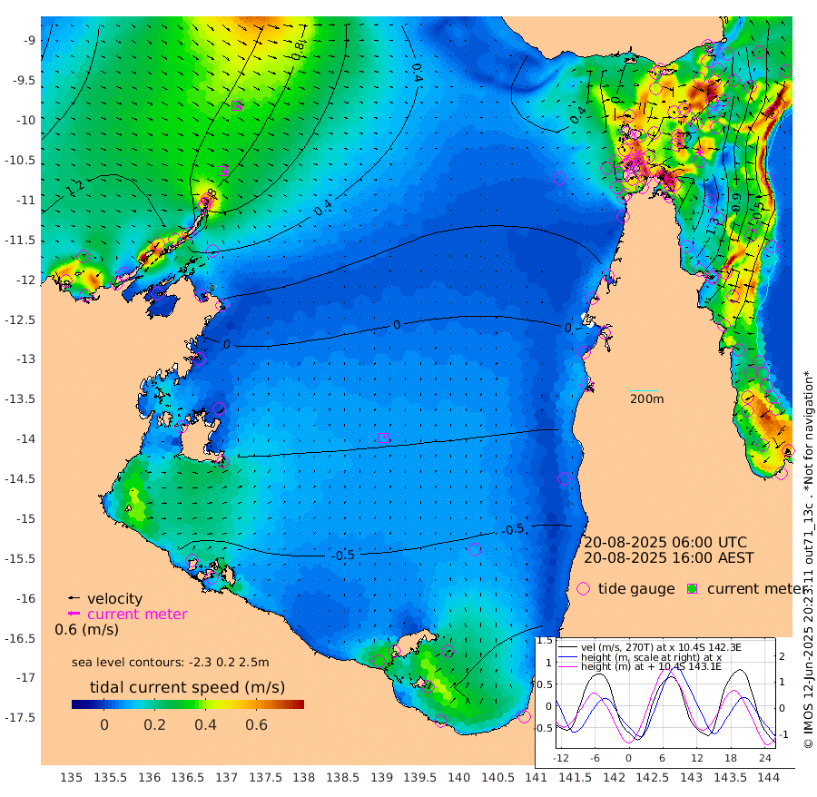 32cm/s 121T +3cm/s rms + 7cm/s -42T. ARA-GOC87 57m 10cm/s 43T +3cm/s rms + 2cm/s -2T. ARA-GOC87 60m 34cm/s 118T +2cm/s rms + 3cm/s 61T. ARA-GOC87 47m -140cm Daru -128cm Bobo Island -52cm Meer Island Barge -86cm Bramble Cay -124cm Unnamed Cay -121cm Pearce Cay -113cm Stephens Island -125cm Merrie England Shoals -145cm Mutacomal Reef -97cm Darnley Island Barge -64cm East Cay -115cm Yorke Island Barge -131cm Rennel Island -124cm Aureed Island -135cm Dungeness Reef -112cm Zagai Island -120cm Yam Island -71cm Dauan Island -60cm Saibai Island -101cm Phipi Reef -122cm Warrior Reef - West -45cm Mabuiag Island Barge -129cm Half Way Island -131cm Coconut Island -140cm Dugong Islet -129cm Poll Island -136cm Kirkcaldie Reef -130cm Suarji Island -118cm Sue Islet 24cm Hawkesbury Island -108cm Alert Patches -111cm Twin Island 14cm Badu Island -110cm St Pauls (Moa Island) -18cm Kubin (Moa Island) -75cm Ince Point -54cm Thursday Island -59cm Nardana Patches -31cm Turtle Head -5cm Round Island 22cm Goods Island 55cm Booby Island 34cm White Rocks Area 68cm Carpentaria -87cm Papou Point 52cm Bampfield Head 48cm Crab Island 40cm Red Wallis Island -10cm Packe Island -153cm Harrington Reef 17cm Herald Camp -41cm Sharp Point -24cm Red Island Point -67cm Possession Island -108cm Alpha Rock -126cm Frederick Point -134cm Wyborn Reef Light -132cm Tetley Island -53cm Triangle Reef -129cm Turtle Head Island -58cm Maclennan Cay -25cm Raine Island -113cm Mcsweeny Reef -101cm Collette Reef -56cm Shadwell Reef -109cm Hannibal Island -89cm Round Point 55cm Vrilya Point -82cm Cape Grenville -70cm Hicks Island -63cm Sir Charles Hardy Island -26cm Harvey Island -59cm Kay Reef -41cm Rocky Island -27cm Chapman Island -25cm Ham Reef -34cm Jubilee Reef -43cm Night Island -30cm Unnamed Reef No. 3 -43cm Morris Island -32cm 1st 3 Mile Opening -38cm Creech Reef -48cm Fife Island -34cm Eden Reef -45cm Stanley Island -53cm Normanby River 134cm Yabooma Island 145cm Hutchison River 136cm Elcho Island 126cm North West Crocodile Island 98cm Cape Wessel 120cm Stevens Island 73cm Guluwuru Island 114cm Hopeful Bay 103cm Auster Point 110cm Two Island Bay 127cm Cadell Strait 71cm Mallison Island 66cm Melville Bay (Gove Harbour) 75cm Truant Island 41cm Cape Arnhem 10cm Cape Grey -9cm Hawk Island -26cm Milner Bay (Groote Eylandt) -46cm Cape Beatrice -81cm West Island -79cm Centre Island -121cm Mornington Island -126cm West Wellesley Islands -129cm Bountiful Island -130cm Albert River Mouth -128cm Sweers Island -137cm Karumba -102cm Nassau River Offshore -72cm Christmas Creek -9cm Archer River 9cm Boyd Point 13cm Weipa (Humbug Point) 25cm Pennefather River 43cm Cullen Point