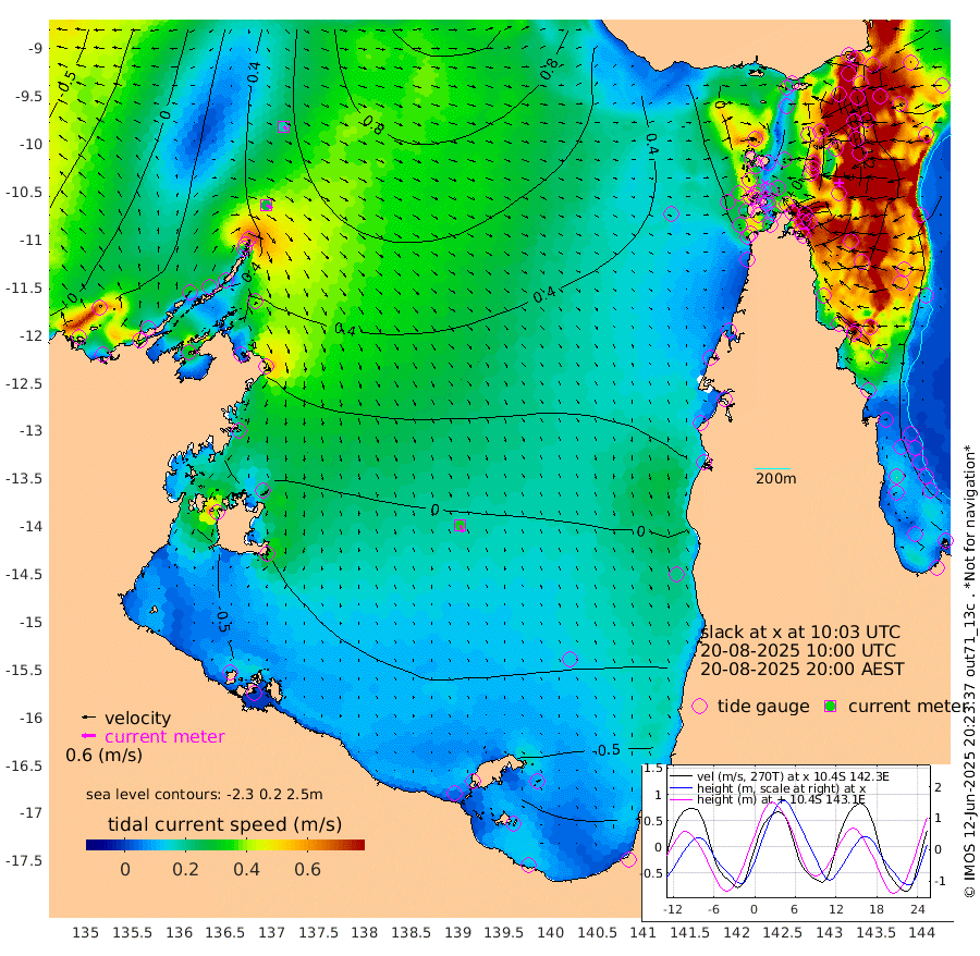 27cm/s 123T +3cm/s rms + 7cm/s -42T. ARA-GOC87 57m 32cm/s 163T +3cm/s rms + 2cm/s -2T. ARA-GOC87 60m 18cm/s 129T +2cm/s rms + 3cm/s 61T. ARA-GOC87 47m 125cm Daru 138cm Bobo Island 142cm Meer Island Barge 159cm Bramble Cay 154cm Unnamed Cay 159cm Pearce Cay 161cm Stephens Island 165cm Merrie England Shoals 137cm Mutacomal Reef 155cm Darnley Island Barge 153cm East Cay 139cm Yorke Island Barge 141cm Rennel Island 135cm Aureed Island 111cm Dungeness Reef 41cm Zagai Island 47cm Yam Island -21cm Dauan Island -20cm Saibai Island -12cm Phipi Reef 38cm Warrior Reef - West -5cm Mabuiag Island Barge 144cm Half Way Island 114cm Coconut Island 136cm Dugong Islet 84cm Poll Island 96cm Kirkcaldie Reef 44cm Suarji Island 77cm Sue Islet 58cm Hawkesbury Island 60cm Alert Patches 63cm Twin Island 31cm Badu Island 40cm St Pauls (Moa Island) 48cm Kubin (Moa Island) 44cm Ince Point 43cm Thursday Island 40cm Nardana Patches 48cm Turtle Head 34cm Round Island 59cm Goods Island 56cm Booby Island 58cm White Rocks Area 53cm Carpentaria 42cm Papou Point 59cm Bampfield Head 37cm Crab Island 55cm Red Wallis Island 59cm Packe Island 138cm Harrington Reef 42cm Herald Camp -5cm Sharp Point 42cm Red Island Point 44cm Possession Island 62cm Alpha Rock 92cm Frederick Point 128cm Wyborn Reef Light 116cm Tetley Island 120cm Triangle Reef 152cm Turtle Head Island 137cm Maclennan Cay 125cm Raine Island 147cm Mcsweeny Reef 144cm Collette Reef 130cm Shadwell Reef 162cm Hannibal Island 166cm Round Point 44cm Vrilya Point 155cm Cape Grenville 147cm Hicks Island 154cm Sir Charles Hardy Island 47cm Harvey Island 157cm Kay Reef 137cm Rocky Island 136cm Chapman Island 132cm Ham Reef 136cm Jubilee Reef 125cm Night Island 137cm Unnamed Reef No. 3 146cm Morris Island 134cm 1st 3 Mile Opening 141cm Creech Reef 141cm Fife Island 169cm Eden Reef 152cm Stanley Island 167cm Normanby River 29cm Yabooma Island 45cm Hutchison River 22cm Elcho Island 12cm North West Crocodile Island 52cm Cape Wessel 35cm Stevens Island 76cm Guluwuru Island 30cm Hopeful Bay 43cm Auster Point 45cm Two Island Bay 66cm Cadell Strait 154cm Mallison Island 52cm Melville Bay (Gove Harbour) 62cm Truant Island 34cm Cape Arnhem 1cm Cape Grey -19cm Hawk Island -66cm Milner Bay (Groote Eylandt) -63cm Cape Beatrice -97cm West Island -101cm Centre Island -97cm Mornington Island -88cm West Wellesley Islands -120cm Bountiful Island -177cm Albert River Mouth -191cm Sweers Island -170cm Karumba -45cm Nassau River Offshore 2cm Christmas Creek 33cm Archer River 42cm Boyd Point 39cm Weipa (Humbug Point) 39cm Pennefather River 34cm Cullen Point