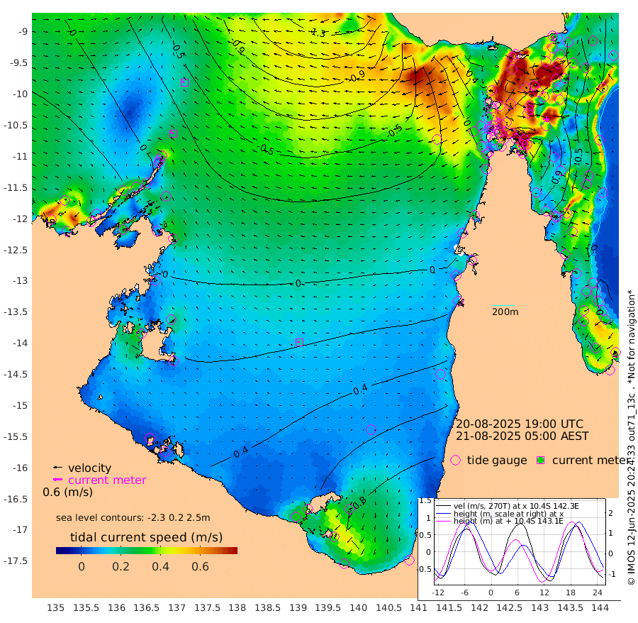 23cm/s -69T +3cm/s rms + 7cm/s -42T. ARA-GOC87 57m 18cm/s -86T +3cm/s rms + 2cm/s -2T. ARA-GOC87 60m 18cm/s -64T +2cm/s rms + 3cm/s 61T. ARA-GOC87 47m -114cm Daru -111cm Bobo Island -37cm Meer Island Barge -64cm Bramble Cay -99cm Unnamed Cay -105cm Pearce Cay -91cm Stephens Island -99cm Merrie England Shoals -119cm Mutacomal Reef -77cm Darnley Island Barge -41cm East Cay -97cm Yorke Island Barge -107cm Rennel Island -102cm Aureed Island -109cm Dungeness Reef -102cm Zagai Island -106cm Yam Island -52cm Dauan Island -55cm Saibai Island -47cm Phipi Reef -92cm Warrior Reef - West -77cm Mabuiag Island Barge -113cm Half Way Island -120cm Coconut Island -122cm Dugong Islet -121cm Poll Island -120cm Kirkcaldie Reef -116cm Suarji Island -115cm Sue Islet -65cm Hawkesbury Island -119cm Alert Patches -125cm Twin Island -57cm Badu Island -125cm St Pauls (Moa Island) -76cm Kubin (Moa Island) -103cm Ince Point -96cm Thursday Island -96cm Nardana Patches -69cm Turtle Head -62cm Round Island -48cm Goods Island -42cm Booby Island -52cm White Rocks Area -55cm Carpentaria -112cm Papou Point -57cm Bampfield Head -29cm Crab Island -47cm Red Wallis Island -63cm Packe Island -141cm Harrington Reef -41cm Herald Camp -34cm Sharp Point -63cm Red Island Point -96cm Possession Island -120cm Alpha Rock -131cm Frederick Point -132cm Wyborn Reef Light -134cm Tetley Island -44cm Triangle Reef -149cm Turtle Head Island -41cm Maclennan Cay -10cm Raine Island -95cm Mcsweeny Reef -77cm Collette Reef -36cm Shadwell Reef -82cm Hannibal Island -69cm Round Point -37cm Vrilya Point -58cm Cape Grenville -47cm Hicks Island -38cm Sir Charles Hardy Island -18cm Harvey Island -38cm Kay Reef -19cm Rocky Island -9cm Chapman Island -11cm Ham Reef -20cm Jubilee Reef -23cm Night Island -14cm Unnamed Reef No. 3 -22cm Morris Island -18cm 1st 3 Mile Opening -20cm Creech Reef -25cm Fife Island -12cm Eden Reef -22cm Stanley Island -30cm Normanby River 6cm Yabooma Island 9cm Hutchison River 17cm Elcho Island 17cm North West Crocodile Island -32cm Cape Wessel -12cm Stevens Island -28cm Guluwuru Island 7cm Hopeful Bay -24cm Auster Point -26cm Two Island Bay -14cm Cadell Strait -33cm Mallison Island -21cm Melville Bay (Gove Harbour) -33cm Truant Island -16cm Cape Arnhem -2cm Cape Grey 14cm Hawk Island 25cm Milner Bay (Groote Eylandt) 37cm Cape Beatrice 41cm West Island 46cm Centre Island 108cm Mornington Island 102cm West Wellesley Islands 145cm Bountiful Island 194cm Albert River Mouth 183cm Sweers Island 187cm Karumba 97cm Nassau River Offshore 69cm Christmas Creek 36cm Archer River 7cm Boyd Point 27cm Weipa (Humbug Point) -15cm Pennefather River -15cm Cullen Point