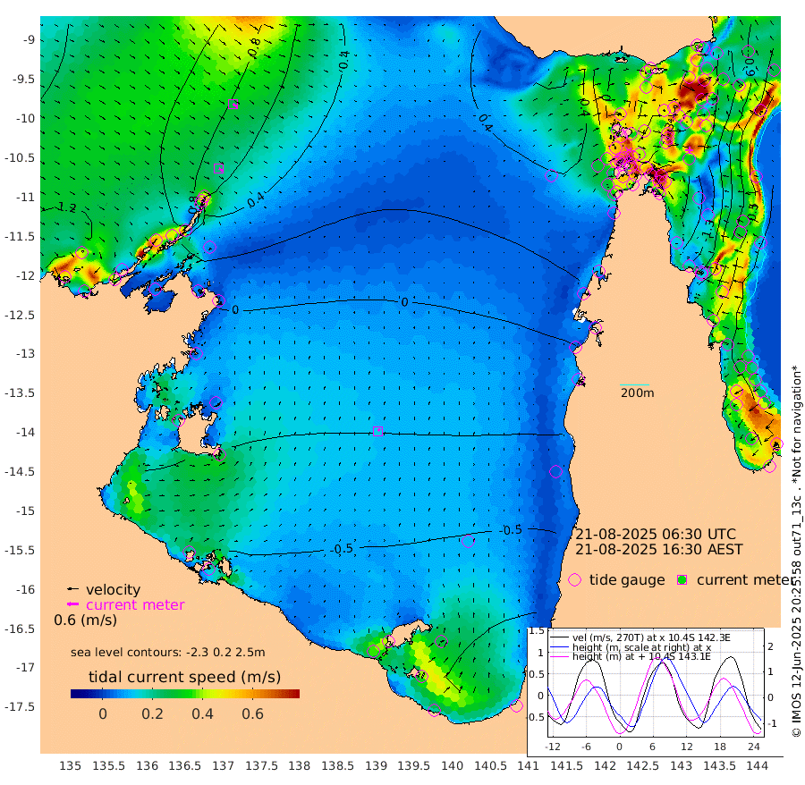 23cm/s 126T +3cm/s rms + 7cm/s -42T. ARA-GOC87 57m 13cm/s 32T +3cm/s rms + 2cm/s -2T. ARA-GOC87 60m 27cm/s 124T +2cm/s rms + 3cm/s 61T. ARA-GOC87 47m -156cm Daru -147cm Bobo Island -63cm Meer Island Barge -99cm Bramble Cay -135cm Unnamed Cay -140cm Pearce Cay -128cm Stephens Island -136cm Merrie England Shoals -156cm Mutacomal Reef -111cm Darnley Island Barge -76cm East Cay -129cm Yorke Island Barge -145cm Rennel Island -141cm Aureed Island -150cm Dungeness Reef -126cm Zagai Island -131cm Yam Island -85cm Dauan Island -71cm Saibai Island -116cm Phipi Reef -140cm Warrior Reef - West -49cm Mabuiag Island Barge -142cm Half Way Island -146cm Coconut Island -153cm Dugong Islet -142cm Poll Island -148cm Kirkcaldie Reef -140cm Suarji Island -129cm Sue Islet 28cm Hawkesbury Island -115cm Alert Patches -120cm Twin Island 12cm Badu Island -119cm St Pauls (Moa Island) -19cm Kubin (Moa Island) -80cm Ince Point -56cm Thursday Island -62cm Nardana Patches -33cm Turtle Head 0cm Round Island 24cm Goods Island 63cm Booby Island 41cm White Rocks Area 82cm Carpentaria -95cm Papou Point 66cm Bampfield Head 52cm Crab Island 46cm Red Wallis Island -10cm Packe Island -168cm Harrington Reef 27cm Herald Camp -42cm Sharp Point -27cm Red Island Point -69cm Possession Island -113cm Alpha Rock -138cm Frederick Point -147cm Wyborn Reef Light -144cm Tetley Island -64cm Triangle Reef -143cm Turtle Head Island -68cm Maclennan Cay -34cm Raine Island -127cm Mcsweeny Reef -112cm Collette Reef -65cm Shadwell Reef -121cm Hannibal Island -102cm Round Point 61cm Vrilya Point -90cm Cape Grenville -81cm Hicks Island -72cm Sir Charles Hardy Island -29cm Harvey Island -67cm Kay Reef -49cm Rocky Island -36cm Chapman Island -32cm Ham Reef -43cm Jubilee Reef -52cm Night Island -38cm Unnamed Reef No. 3 -52cm Morris Island -40cm 1st 3 Mile Opening -47cm Creech Reef -61cm Fife Island -45cm Eden Reef -52cm Stanley Island -62cm Normanby River 118cm Yabooma Island 120cm Hutchison River 119cm Elcho Island 110cm North West Crocodile Island 80cm Cape Wessel 101cm Stevens Island 48cm Guluwuru Island 100cm Hopeful Bay 87cm Auster Point 93cm Two Island Bay 93cm Cadell Strait 36cm Mallison Island 45cm Melville Bay (Gove Harbour) 53cm Truant Island 25cm Cape Arnhem 2cm Cape Grey -13cm Hawk Island -21cm Milner Bay (Groote Eylandt) -40cm Cape Beatrice -66cm West Island -63cm Centre Island -118cm Mornington Island -121cm West Wellesley Islands -124cm Bountiful Island -128cm Albert River Mouth -122cm Sweers Island -135cm Karumba -105cm Nassau River Offshore -76cm Christmas Creek -11cm Archer River 10cm Boyd Point 14cm Weipa (Humbug Point) 27cm Pennefather River 50cm Cullen Point