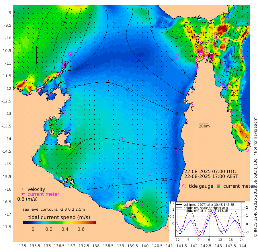 14cm/s 139T +3cm/s rms + 7cm/s -42T. ARA-GOC87 57m 16cm/s 26T +3cm/s rms + 2cm/s -2T. ARA-GOC87 60m 19cm/s 136T +2cm/s rms + 3cm/s 61T. ARA-GOC87 47m -160cm Daru -155cm Bobo Island -68cm Meer Island Barge -103cm Bramble Cay -136cm Unnamed Cay -149cm Pearce Cay -132cm Stephens Island -136cm Merrie England Shoals -157cm Mutacomal Reef -115cm Darnley Island Barge -81cm East Cay -134cm Yorke Island Barge -148cm Rennel Island -148cm Aureed Island -153cm Dungeness Reef -133cm Zagai Island -134cm Yam Island -94cm Dauan Island -79cm Saibai Island -123cm Phipi Reef -148cm Warrior Reef - West -50cm Mabuiag Island Barge -144cm Half Way Island -151cm Coconut Island -154cm Dugong Islet -145cm Poll Island -149cm Kirkcaldie Reef -140cm Suarji Island -131cm Sue Islet 29cm Hawkesbury Island -114cm Alert Patches -121cm Twin Island 9cm Badu Island -120cm St Pauls (Moa Island) -19cm Kubin (Moa Island) -80cm Ince Point -55cm Thursday Island -61cm Nardana Patches -32cm Turtle Head 5cm Round Island 26cm Goods Island 68cm Booby Island 47cm White Rocks Area 91cm Carpentaria -97cm Papou Point 75cm Bampfield Head 54cm Crab Island 50cm Red Wallis Island -8cm Packe Island -170cm Harrington Reef 35cm Herald Camp -41cm Sharp Point -29cm Red Island Point -67cm Possession Island -111cm Alpha Rock -140cm Frederick Point -149cm Wyborn Reef Light -147cm Tetley Island -69cm Triangle Reef -147cm Turtle Head Island -71cm Maclennan Cay -39cm Raine Island -130cm Mcsweeny Reef -115cm Collette Reef -68cm Shadwell Reef -124cm Hannibal Island -106cm Round Point 65cm Vrilya Point -91cm Cape Grenville -84cm Hicks Island -75cm Sir Charles Hardy Island -30cm Harvey Island -68cm Kay Reef -53cm Rocky Island -41cm Chapman Island -36cm Ham Reef -47cm Jubilee Reef -55cm Night Island -42cm Unnamed Reef No. 3 -55cm Morris Island -41cm 1st 3 Mile Opening -51cm Creech Reef -68cm Fife Island -50cm Eden Reef -53cm Stanley Island -65cm Normanby River 96cm Yabooma Island 90cm Hutchison River 95cm Elcho Island 87cm North West Crocodile Island 58cm Cape Wessel 76cm Stevens Island 21cm Guluwuru Island 80cm Hopeful Bay 65cm Auster Point 70cm Two Island Bay 54cm Cadell Strait -3cm Mallison Island 21cm Melville Bay (Gove Harbour) 27cm Truant Island 8cm Cape Arnhem -5cm Cape Grey -17cm Hawk Island -14cm Milner Bay (Groote Eylandt) -32cm Cape Beatrice -47cm West Island -43cm Centre Island -107cm Mornington Island -107cm West Wellesley Islands -109cm Bountiful Island -114cm Albert River Mouth -108cm Sweers Island -124cm Karumba -99cm Nassau River Offshore -73cm Christmas Creek -10cm Archer River 12cm Boyd Point 16cm Weipa (Humbug Point) 27cm Pennefather River 54cm Cullen Point