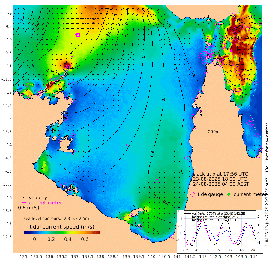39cm/s -86T +3cm/s rms + 7cm/s -42T. ARA-GOC87 57m 16cm/s -171T +3cm/s rms + 2cm/s -2T. ARA-GOC87 60m 44cm/s -94T +2cm/s rms + 3cm/s 61T. ARA-GOC87 47m -66cm Daru -86cm Bobo Island -76cm Meer Island Barge -97cm Bramble Cay -91cm Unnamed Cay -96cm Pearce Cay -93cm Stephens Island -99cm Merrie England Shoals -79cm Mutacomal Reef -85cm Darnley Island Barge -86cm East Cay -74cm Yorke Island Barge -77cm Rennel Island -78cm Aureed Island -47cm Dungeness Reef -1cm Zagai Island 8cm Yam Island 78cm Dauan Island 72cm Saibai Island 68cm Phipi Reef 15cm Warrior Reef - West 62cm Mabuiag Island Barge -74cm Half Way Island -59cm Coconut Island -63cm Dugong Islet -29cm Poll Island -21cm Kirkcaldie Reef 0cm Suarji Island -16cm Sue Islet 78cm Hawkesbury Island 14cm Alert Patches 5cm Twin Island 77cm Badu Island 23cm St Pauls (Moa Island) 56cm Kubin (Moa Island) 36cm Ince Point 48cm Thursday Island 46cm Nardana Patches 59cm Turtle Head 60cm Round Island 70cm Goods Island 89cm Booby Island 65cm White Rocks Area 84cm Carpentaria 16cm Papou Point 64cm Bampfield Head 91cm Crab Island 83cm Red Wallis Island 62cm Packe Island -73cm Harrington Reef 92cm Herald Camp 19cm Sharp Point 60cm Red Island Point 27cm Possession Island -9cm Alpha Rock -28cm Frederick Point -79cm Wyborn Reef Light -67cm Tetley Island -62cm Triangle Reef -83cm Turtle Head Island -68cm Maclennan Cay -62cm Raine Island -85cm Mcsweeny Reef -82cm Collette Reef -67cm Shadwell Reef -97cm Hannibal Island -103cm Round Point 95cm Vrilya Point -87cm Cape Grenville -81cm Hicks Island -76cm Sir Charles Hardy Island -24cm Harvey Island -88cm Kay Reef -73cm Rocky Island -74cm Chapman Island -65cm Ham Reef -68cm Jubilee Reef -64cm Night Island -68cm Unnamed Reef No. 3 -78cm Morris Island -65cm 1st 3 Mile Opening -69cm Creech Reef -81cm Fife Island -93cm Eden Reef -78cm Stanley Island -97cm Normanby River -186cm Yabooma Island -218cm Hutchison River -184cm Elcho Island -168cm North West Crocodile Island -164cm Cape Wessel -194cm Stevens Island -155cm Guluwuru Island -173cm Hopeful Bay -167cm Auster Point -161cm Two Island Bay -198cm Cadell Strait -188cm Mallison Island -144cm Melville Bay (Gove Harbour) -155cm Truant Island -99cm Cape Arnhem -68cm Cape Grey -51cm Hawk Island -27cm Milner Bay (Groote Eylandt) -9cm Cape Beatrice 30cm West Island 35cm Centre Island 49cm Mornington Island 42cm West Wellesley Islands 38cm Bountiful Island 41cm Albert River Mouth 18cm Sweers Island 59cm Karumba 63cm Nassau River Offshore 72cm Christmas Creek 67cm Archer River 68cm Boyd Point 71cm Weipa (Humbug Point) 72cm Pennefather River 90cm Cullen Point