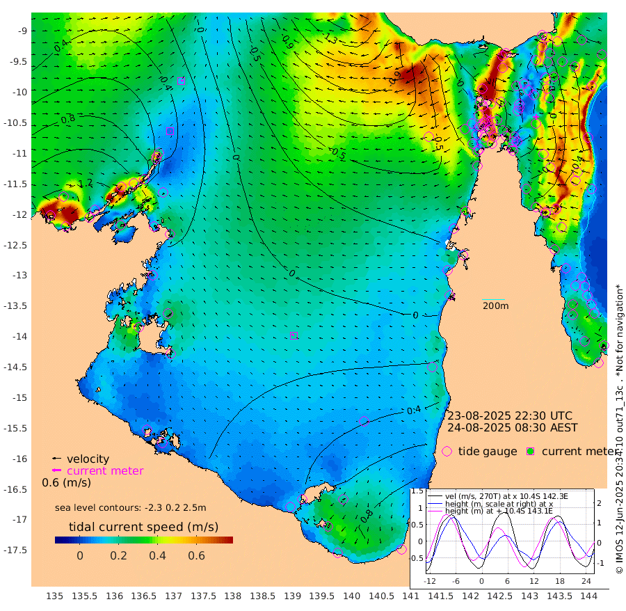 6cm/s 88T +3cm/s rms + 7cm/s -42T. ARA-GOC87 57m 18cm/s -57T +3cm/s rms + 2cm/s -2T. ARA-GOC87 60m 13cm/s 74T +2cm/s rms + 3cm/s 61T. ARA-GOC87 47m -20cm Daru -9cm Bobo Island 34cm Meer Island Barge 38cm Bramble Cay 9cm Unnamed Cay 9cm Pearce Cay 15cm Stephens Island 23cm Merrie England Shoals -10cm Mutacomal Reef 12cm Darnley Island Barge 43cm East Cay -10cm Yorke Island Barge -5cm Rennel Island -12cm Aureed Island -29cm Dungeness Reef -76cm Zagai Island -77cm Yam Island -97cm Dauan Island -101cm Saibai Island -64cm Phipi Reef -75cm Warrior Reef - West -93cm Mabuiag Island Barge -10cm Half Way Island -30cm Coconut Island -28cm Dugong Islet -55cm Poll Island -49cm Kirkcaldie Reef -80cm Suarji Island -65cm Sue Islet -64cm Hawkesbury Island -76cm Alert Patches -78cm Twin Island -61cm Badu Island -97cm St Pauls (Moa Island) -74cm Kubin (Moa Island) -82cm Ince Point -80cm Thursday Island -82cm Nardana Patches -62cm Turtle Head -67cm Round Island -49cm Goods Island -57cm Booby Island -47cm White Rocks Area -91cm Carpentaria -80cm Papou Point -75cm Bampfield Head -42cm Crab Island -57cm Red Wallis Island -58cm Packe Island -32cm Harrington Reef -73cm Herald Camp -34cm Sharp Point -47cm Red Island Point -72cm Possession Island -74cm Alpha Rock -60cm Frederick Point -28cm Wyborn Reef Light -40cm Tetley Island 17cm Triangle Reef -29cm Turtle Head Island 25cm Maclennan Cay 47cm Raine Island 4cm Mcsweeny Reef 17cm Collette Reef 31cm Shadwell Reef 25cm Hannibal Island 42cm Round Point -49cm Vrilya Point 35cm Cape Grenville 35cm Hicks Island 28cm Sir Charles Hardy Island 8cm Harvey Island 49cm Kay Reef 46cm Rocky Island 55cm Chapman Island 44cm Ham Reef 42cm Jubilee Reef 38cm Night Island 48cm Unnamed Reef No. 3 50cm Morris Island 41cm 1st 3 Mile Opening 44cm Creech Reef 49cm Fife Island 67cm Eden Reef 53cm Stanley Island 61cm Normanby River 113cm Yabooma Island 128cm Hutchison River 115cm Elcho Island 112cm North West Crocodile Island 41cm Cape Wessel 98cm Stevens Island 31cm Guluwuru Island 99cm Hopeful Bay 62cm Auster Point 51cm Two Island Bay 96cm Cadell Strait 27cm Mallison Island 38cm Melville Bay (Gove Harbour) 30cm Truant Island 18cm Cape Arnhem 23cm Cape Grey 30cm Hawk Island 30cm Milner Bay (Groote Eylandt) 35cm Cape Beatrice 20cm West Island 23cm Centre Island 81cm Mornington Island 80cm West Wellesley Islands 113cm Bountiful Island 159cm Albert River Mouth 161cm Sweers Island 153cm Karumba 77cm Nassau River Offshore 47cm Christmas Creek 24cm Archer River -17cm Boyd Point 2cm Weipa (Humbug Point) -16cm Pennefather River -46cm Cullen Point