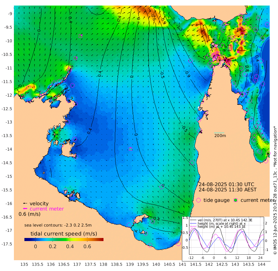 28cm/s 72T +3cm/s rms + 7cm/s -42T. ARA-GOC87 57m 18cm/s -10T +3cm/s rms + 2cm/s -2T. ARA-GOC87 60m 34cm/s 64T +2cm/s rms + 3cm/s 61T. ARA-GOC87 47m 91cm Daru 102cm Bobo Island 40cm Meer Island Barge 65cm Bramble Cay 79cm Unnamed Cay 95cm Pearce Cay 80cm Stephens Island 81cm Merrie England Shoals 86cm Mutacomal Reef 70cm Darnley Island Barge 48cm East Cay 78cm Yorke Island Barge 81cm Rennel Island 92cm Aureed Island 75cm Dungeness Reef 61cm Zagai Island 44cm Yam Island -7cm Dauan Island -7cm Saibai Island 19cm Phipi Reef 56cm Warrior Reef - West -32cm Mabuiag Island Barge 78cm Half Way Island 86cm Coconut Island 75cm Dugong Islet 66cm Poll Island 59cm Kirkcaldie Reef 53cm Suarji Island 53cm Sue Islet -142cm Hawkesbury Island 18cm Alert Patches 30cm Twin Island -103cm Badu Island 25cm St Pauls (Moa Island) -83cm Kubin (Moa Island) -16cm Ince Point -42cm Thursday Island -36cm Nardana Patches -72cm Turtle Head -99cm Round Island -127cm Goods Island -165cm Booby Island -140cm White Rocks Area -158cm Carpentaria 17cm Papou Point -160cm Bampfield Head -139cm Crab Island -150cm Red Wallis Island -100cm Packe Island 94cm Harrington Reef -153cm Herald Camp 11cm Sharp Point -66cm Red Island Point -18cm Possession Island 33cm Alpha Rock 57cm Frederick Point 87cm Wyborn Reef Light 80cm Tetley Island 35cm Triangle Reef 82cm Turtle Head Island 33cm Maclennan Cay 17cm Raine Island 77cm Mcsweeny Reef 68cm Collette Reef 35cm Shadwell Reef 77cm Hannibal Island 67cm Round Point -144cm Vrilya Point 50cm Cape Grenville 47cm Hicks Island 32cm Sir Charles Hardy Island 16cm Harvey Island 37cm Kay Reef 26cm Rocky Island 21cm Chapman Island 13cm Ham Reef 22cm Jubilee Reef 28cm Night Island 18cm Unnamed Reef No. 3 29cm Morris Island 16cm 1st 3 Mile Opening 23cm Creech Reef 42cm Fife Island 28cm Eden Reef 24cm Stanley Island 39cm Normanby River 32cm Yabooma Island 58cm Hutchison River 43cm Elcho Island 37cm North West Crocodile Island 60cm Cape Wessel 65cm Stevens Island 83cm Guluwuru Island 48cm Hopeful Bay 56cm Auster Point 47cm Two Island Bay 83cm Cadell Strait 126cm Mallison Island 79cm Melville Bay (Gove Harbour) 80cm Truant Island 64cm Cape Arnhem 62cm Cape Grey 60cm Hawk Island 63cm Milner Bay (Groote Eylandt) 56cm Cape Beatrice 51cm West Island 49cm Centre Island 74cm Mornington Island 73cm West Wellesley Islands 83cm Bountiful Island 110cm Albert River Mouth 136cm Sweers Island 98cm Karumba 31cm Nassau River Offshore -15cm Christmas Creek -65cm Archer River -87cm Boyd Point -96cm Weipa (Humbug Point) -90cm Pennefather River -134cm Cullen Point