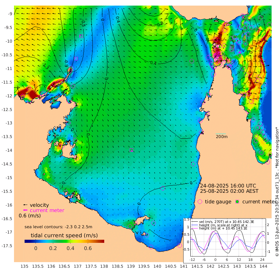 11cm/s -71T +3cm/s rms + 7cm/s -42T. ARA-GOC87 57m 27cm/s 167T +3cm/s rms + 2cm/s -2T. ARA-GOC87 60m 20cm/s -77T +2cm/s rms + 3cm/s 61T. ARA-GOC87 47m 87cm Daru 76cm Bobo Island 5cm Meer Island Barge 15cm Bramble Cay 47cm Unnamed Cay 59cm Pearce Cay 44cm Stephens Island 35cm Merrie England Shoals 72cm Mutacomal Reef 41cm Darnley Island Barge 5cm East Cay 66cm Yorke Island Barge 67cm Rennel Island 74cm Aureed Island 90cm Dungeness Reef 125cm Zagai Island 126cm Yam Island 143cm Dauan Island 138cm Saibai Island 128cm Phipi Reef 141cm Warrior Reef - West 104cm Mabuiag Island Barge 68cm Half Way Island 88cm Coconut Island 86cm Dugong Islet 106cm Poll Island 105cm Kirkcaldie Reef 119cm Suarji Island 110cm Sue Islet 55cm Hawkesbury Island 108cm Alert Patches 114cm Twin Island 57cm Badu Island 129cm St Pauls (Moa Island) 77cm Kubin (Moa Island) 102cm Ince Point 90cm Thursday Island 94cm Nardana Patches 71cm Turtle Head 58cm Round Island 36cm Goods Island 22cm Booby Island 17cm White Rocks Area 28cm Carpentaria 108cm Papou Point 23cm Bampfield Head 22cm Crab Island 33cm Red Wallis Island 62cm Packe Island 93cm Harrington Reef 59cm Herald Camp 47cm Sharp Point 65cm Red Island Point 87cm Possession Island 104cm Alpha Rock 107cm Frederick Point 81cm Wyborn Reef Light 91cm Tetley Island 22cm Triangle Reef 78cm Turtle Head Island 13cm Maclennan Cay -16cm Raine Island 50cm Mcsweeny Reef 36cm Collette Reef 7cm Shadwell Reef 31cm Hannibal Island 14cm Round Point 20cm Vrilya Point 11cm Cape Grenville 11cm Hicks Island 15cm Sir Charles Hardy Island 7cm Harvey Island -10cm Kay Reef -10cm Rocky Island -19cm Chapman Island -12cm Ham Reef -9cm Jubilee Reef -3cm Night Island -13cm Unnamed Reef No. 3 -13cm Morris Island -15cm 1st 3 Mile Opening -9cm Creech Reef -2cm Fife Island -28cm Eden Reef -17cm Stanley Island -18cm Normanby River -149cm Yabooma Island -156cm Hutchison River -148cm Elcho Island -139cm North West Crocodile Island -69cm Cape Wessel -127cm Stevens Island -37cm Guluwuru Island -125cm Hopeful Bay -93cm Auster Point -80cm Two Island Bay -96cm Cadell Strait 7cm Mallison Island -46cm Melville Bay (Gove Harbour) -44cm Truant Island -22cm Cape Arnhem -27cm Cape Grey -23cm Hawk Island -40cm Milner Bay (Groote Eylandt) -29cm Cape Beatrice -18cm West Island -22cm Centre Island -9cm Mornington Island -15cm West Wellesley Islands -40cm Bountiful Island -72cm Albert River Mouth -88cm Sweers Island -52cm Karumba 6cm Nassau River Offshore 24cm Christmas Creek 9cm Archer River 26cm Boyd Point 11cm Weipa (Humbug Point) 13cm Pennefather River 27cm Cullen Point