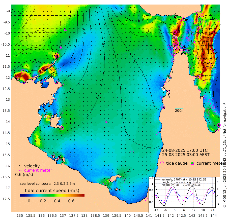 24cm/s -78T +3cm/s rms + 7cm/s -42T. ARA-GOC87 57m 22cm/s 168T +3cm/s rms + 2cm/s -2T. ARA-GOC87 60m 32cm/s -85T +2cm/s rms + 3cm/s 61T. ARA-GOC87 47m 21cm Daru 7cm Bobo Island -35cm Meer Island Barge -39cm Bramble Cay -16cm Unnamed Cay -10cm Pearce Cay -17cm Stephens Island -27cm Merrie England Shoals 6cm Mutacomal Reef -14cm Darnley Island Barge -40cm East Cay 6cm Yorke Island Barge 4cm Rennel Island 10cm Aureed Island 32cm Dungeness Reef 76cm Zagai Island 81cm Yam Island 118cm Dauan Island 114cm Saibai Island 102cm Phipi Reef 91cm Warrior Reef - West 88cm Mabuiag Island Barge 8cm Half Way Island 26cm Coconut Island 24cm Dugong Islet 51cm Poll Island 55cm Kirkcaldie Reef 72cm Suarji Island 61cm Sue Islet 58cm Hawkesbury Island 70cm Alert Patches 71cm Twin Island 57cm Badu Island 89cm St Pauls (Moa Island) 65cm Kubin (Moa Island) 76cm Ince Point 72cm Thursday Island 74cm Nardana Patches 61cm Turtle Head 55cm Round Island 42cm Goods Island 43cm Booby Island 28cm White Rocks Area 55cm Carpentaria 73cm Papou Point 34cm Bampfield Head 46cm Crab Island 48cm Red Wallis Island 57cm Packe Island 25cm Harrington Reef 71cm Herald Camp 39cm Sharp Point 60cm Red Island Point 63cm Possession Island 59cm Alpha Rock 52cm Frederick Point 12cm Wyborn Reef Light 24cm Tetley Island -18cm Triangle Reef 10cm Turtle Head Island -25cm Maclennan Cay -44cm Raine Island -10cm Mcsweeny Reef -18cm Collette Reef -30cm Shadwell Reef -28cm Hannibal Island -44cm Round Point 50cm Vrilya Point -36cm Cape Grenville -34cm Hicks Island -30cm Sir Charles Hardy Island -8cm Harvey Island -51cm Kay Reef -44cm Rocky Island -52cm Chapman Island -42cm Ham Reef -41cm Jubilee Reef -35cm Night Island -45cm Unnamed Reef No. 3 -49cm Morris Island -44cm 1st 3 Mile Opening -41cm Creech Reef -43cm Fife Island -65cm Eden Reef -51cm Stanley Island -60cm Normanby River -197cm Yabooma Island -219cm Hutchison River -195cm Elcho Island -182cm North West Crocodile Island -124cm Cape Wessel -183cm Stevens Island -98cm Guluwuru Island -171cm Hopeful Bay -143cm Auster Point -130cm Two Island Bay -165cm Cadell Strait -81cm Mallison Island -101cm Melville Bay (Gove Harbour) -103cm Truant Island -62cm Cape Arnhem -49cm Cape Grey -39cm Hawk Island -35cm Milner Bay (Groote Eylandt) -21cm Cape Beatrice 8cm West Island 9cm Centre Island 13cm Mornington Island 7cm West Wellesley Islands -17cm Bountiful Island -38cm Albert River Mouth -56cm Sweers Island -17cm Karumba 24cm Nassau River Offshore 39cm Christmas Creek 27cm Archer River 41cm Boyd Point 29cm Weipa (Humbug Point) 36cm Pennefather River 52cm Cullen Point