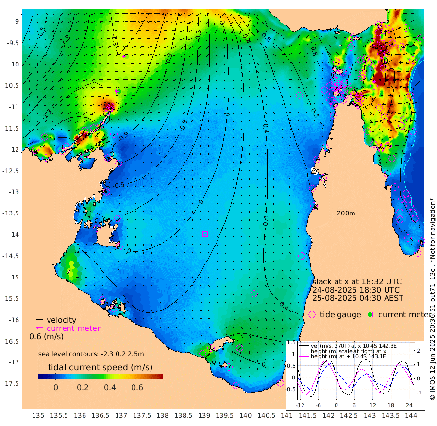 36cm/s -84T +3cm/s rms + 7cm/s -42T. ARA-GOC87 57m 13cm/s -177T +3cm/s rms + 2cm/s -2T. ARA-GOC87 60m 40cm/s -93T +2cm/s rms + 3cm/s 61T. ARA-GOC87 47m -69cm Daru -84cm Bobo Island -68cm Meer Island Barge -90cm Bramble Cay -87cm Unnamed Cay -92cm Pearce Cay -87cm Stephens Island -93cm Merrie England Shoals -79cm Mutacomal Reef -78cm Darnley Island Barge -77cm East Cay -71cm Yorke Island Barge -76cm Rennel Island -76cm Aureed Island -52cm Dungeness Reef -17cm Zagai Island -7cm Yam Island 46cm Dauan Island 43cm Saibai Island 37cm Phipi Reef -5cm Warrior Reef - West 39cm Mabuiag Island Barge -69cm Half Way Island -64cm Coconut Island -61cm Dugong Islet -38cm Poll Island -28cm Kirkcaldie Reef -18cm Suarji Island -24cm Sue Islet 62cm Hawkesbury Island -1cm Alert Patches -9cm Twin Island 51cm Badu Island 5cm St Pauls (Moa Island) 39cm Kubin (Moa Island) 19cm Ince Point 30cm Thursday Island 28cm Nardana Patches 38cm Turtle Head 45cm Round Island 51cm Goods Island 73cm Booby Island 48cm White Rocks Area 79cm Carpentaria 3cm Papou Point 51cm Bampfield Head 78cm Crab Island 68cm Red Wallis Island 45cm Packe Island -72cm Harrington Reef 79cm Herald Camp 14cm Sharp Point 45cm Red Island Point 15cm Possession Island -19cm Alpha Rock -36cm Frederick Point -81cm Wyborn Reef Light -70cm Tetley Island -58cm Triangle Reef -80cm Turtle Head Island -61cm Maclennan Cay -57cm Raine Island -81cm Mcsweeny Reef -78cm Collette Reef -62cm Shadwell Reef -90cm Hannibal Island -95cm Round Point 87cm Vrilya Point -78cm Cape Grenville -74cm Hicks Island -70cm Sir Charles Hardy Island -22cm Harvey Island -78cm Kay Reef -66cm Rocky Island -68cm Chapman Island -57cm Ham Reef -61cm Jubilee Reef -57cm Night Island -61cm Unnamed Reef No. 3 -71cm Morris Island -59cm 1st 3 Mile Opening -61cm Creech Reef -74cm Fife Island -82cm Eden Reef -68cm Stanley Island -85cm Normanby River -183cm Yabooma Island -219cm Hutchison River -184cm Elcho Island -168cm North West Crocodile Island -155cm Cape Wessel -190cm Stevens Island -151cm Guluwuru Island -168cm Hopeful Bay -160cm Auster Point -150cm Two Island Bay -194cm Cadell Strait -177cm Mallison Island -142cm Melville Bay (Gove Harbour) -152cm Truant Island -98cm Cape Arnhem -68cm Cape Grey -51cm Hawk Island -26cm Milner Bay (Groote Eylandt) -10cm Cape Beatrice 30cm West Island 37cm Centre Island 38cm Mornington Island 31cm West Wellesley Islands 20cm Bountiful Island 19cm Albert River Mouth 1cm Sweers Island 39cm Karumba 49cm Nassau River Offshore 57cm Christmas Creek 55cm Archer River 57cm Boyd Point 57cm Weipa (Humbug Point) 65cm Pennefather River 81cm Cullen Point