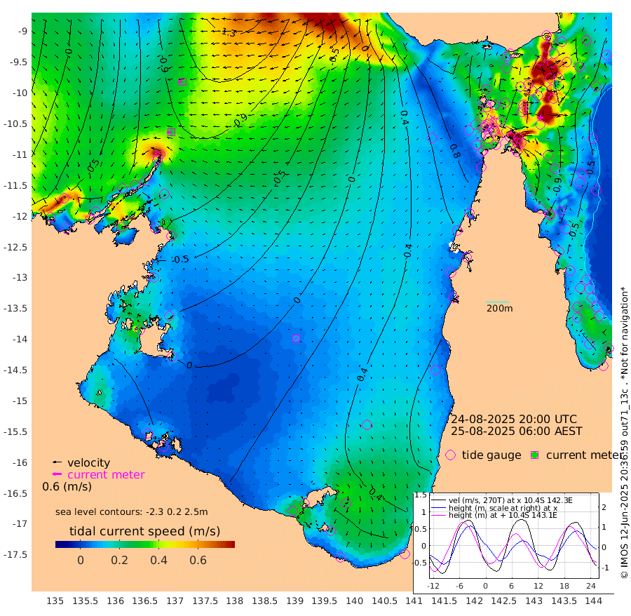32cm/s -90T +3cm/s rms + 7cm/s -42T. ARA-GOC87 57m 8cm/s -113T +3cm/s rms + 2cm/s -2T. ARA-GOC87 60m 32cm/s -100T +2cm/s rms + 3cm/s 61T. ARA-GOC87 47m -109cm Daru -119cm Bobo Island -59cm Meer Island Barge -83cm Bramble Cay -102cm Unnamed Cay -113cm Pearce Cay -100cm Stephens Island -98cm Merrie England Shoals -109cm Mutacomal Reef -91cm Darnley Island Barge -65cm East Cay -101cm Yorke Island Barge -103cm Rennel Island -111cm Aureed Island -96cm Dungeness Reef -89cm Zagai Island -76cm Yam Island -33cm Dauan Island -36cm Saibai Island -27cm Phipi Reef -82cm Warrior Reef - West -19cm Mabuiag Island Barge -98cm Half Way Island -108cm Coconut Island -102cm Dugong Islet -94cm Poll Island -80cm Kirkcaldie Reef -86cm Suarji Island -85cm Sue Islet 52cm Hawkesbury Island -58cm Alert Patches -70cm Twin Island 34cm Badu Island -68cm St Pauls (Moa Island) 9cm Kubin (Moa Island) -34cm Ince Point -14cm Thursday Island -19cm Nardana Patches 11cm Turtle Head 25cm Round Island 49cm Goods Island 77cm Booby Island 56cm White Rocks Area 63cm Carpentaria -56cm Papou Point 49cm Bampfield Head 82cm Crab Island 66cm Red Wallis Island 27cm Packe Island -118cm Harrington Reef 63cm Herald Camp -14cm Sharp Point 24cm Red Island Point -29cm Possession Island -77cm Alpha Rock -92cm Frederick Point -120cm Wyborn Reef Light -116cm Tetley Island -60cm Triangle Reef -116cm Turtle Head Island -57cm Maclennan Cay -33cm Raine Island -100cm Mcsweeny Reef -86cm Collette Reef -53cm Shadwell Reef -95cm Hannibal Island -86cm Round Point 89cm Vrilya Point -70cm Cape Grenville -66cm Hicks Island -65cm Sir Charles Hardy Island -21cm Harvey Island -57cm Kay Reef -46cm Rocky Island -41cm Chapman Island -37cm Ham Reef -43cm Jubilee Reef -43cm Night Island -39cm Unnamed Reef No. 3 -48cm Morris Island -38cm 1st 3 Mile Opening -42cm Creech Reef -58cm Fife Island -49cm Eden Reef -43cm Stanley Island -57cm Normanby River -83cm Yabooma Island -113cm Hutchison River -86cm Elcho Island -73cm North West Crocodile Island -118cm Cape Wessel -109cm Stevens Island -134cm Guluwuru Island -87cm Hopeful Bay -104cm Auster Point -102cm Two Island Bay -127cm Cadell Strait -189cm Mallison Island -119cm Melville Bay (Gove Harbour) -132cm Truant Island -91cm Cape Arnhem -59cm Cape Grey -41cm Hawk Island -14cm Milner Bay (Groote Eylandt) 1cm Cape Beatrice 29cm West Island 38cm Centre Island 51cm Mornington Island 46cm West Wellesley Islands 53cm Bountiful Island 73cm Albert River Mouth 58cm Sweers Island 87cm Karumba 65cm Nassau River Offshore 65cm Christmas Creek 70cm Archer River 56cm Boyd Point 70cm Weipa (Humbug Point) 72cm Pennefather River 78cm Cullen Point