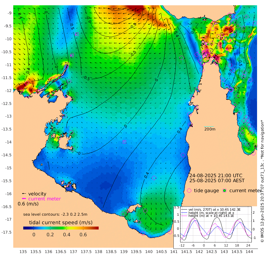 21cm/s -97T +3cm/s rms + 7cm/s -42T. ARA-GOC87 57m 11cm/s -78T +3cm/s rms + 2cm/s -2T. ARA-GOC87 60m 19cm/s -107T +2cm/s rms + 3cm/s 61T. ARA-GOC87 47m -98cm Daru -102cm Bobo Island -34cm Meer Island Barge -51cm Bramble Cay -78cm Unnamed Cay -88cm Pearce Cay -75cm Stephens Island -69cm Merrie England Shoals -92cm Mutacomal Reef -70cm Darnley Island Barge -34cm East Cay -87cm Yorke Island Barge -85cm Rennel Island -98cm Aureed Island -91cm Dungeness Reef -106cm Zagai Island -94cm Yam Island -69cm Dauan Island -73cm Saibai Island -52cm Phipi Reef -102cm Warrior Reef - West -49cm Mabuiag Island Barge -84cm Half Way Island -101cm Coconut Island -95cm Dugong Islet -100cm Poll Island -86cm Kirkcaldie Reef -103cm Suarji Island -97cm Sue Islet 34cm Hawkesbury Island -75cm Alert Patches -87cm Twin Island 17cm Badu Island -93cm St Pauls (Moa Island) -11cm Kubin (Moa Island) -56cm Ince Point -37cm Thursday Island -42cm Nardana Patches -7cm Turtle Head 7cm Round Island 35cm Goods Island 58cm Booby Island 45cm White Rocks Area 29cm Carpentaria -76cm Papou Point 30cm Bampfield Head 63cm Crab Island 47cm Red Wallis Island 11cm Packe Island -109cm Harrington Reef 36cm Herald Camp -27cm Sharp Point 9cm Red Island Point -46cm Possession Island -91cm Alpha Rock -98cm Frederick Point -107cm Wyborn Reef Light -109cm Tetley Island -41cm Triangle Reef -102cm Turtle Head Island -35cm Maclennan Cay -6cm Raine Island -79cm Mcsweeny Reef -63cm Collette Reef -29cm Shadwell Reef -66cm Hannibal Island -51cm Round Point 66cm Vrilya Point -41cm Cape Grenville -38cm Hicks Island -40cm Sir Charles Hardy Island -14cm Harvey Island -24cm Kay Reef -17cm Rocky Island -9cm Chapman Island -10cm Ham Reef -16cm Jubilee Reef -19cm Night Island -10cm Unnamed Reef No. 3 -17cm Morris Island -12cm 1st 3 Mile Opening -15cm Creech Reef -26cm Fife Island -10cm Eden Reef -11cm Stanley Island -19cm Normanby River 5cm Yabooma Island -13cm Hutchison River 0cm Elcho Island 9cm North West Crocodile Island -66cm Cape Wessel -28cm Stevens Island -89cm Guluwuru Island -11cm Hopeful Bay -42cm Auster Point -45cm Two Island Bay -46cm Cadell Strait -145cm Mallison Island -73cm Melville Bay (Gove Harbour) -85cm Truant Island -63cm Cape Arnhem -38cm Cape Grey -23cm Hawk Island -4cm Milner Bay (Groote Eylandt) 8cm Cape Beatrice 20cm West Island 28cm Centre Island 55cm Mornington Island 51cm West Wellesley Islands 70cm Bountiful Island 101cm Albert River Mouth 91cm Sweers Island 110cm Karumba 69cm Nassau River Offshore 62cm Christmas Creek 67cm Archer River 42cm Boyd Point 62cm Weipa (Humbug Point) 59cm Pennefather River 55cm Cullen Point