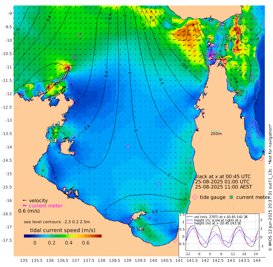29cm/s 88T +3cm/s rms + 7cm/s -42T. ARA-GOC87 57m 14cm/s -31T +3cm/s rms + 2cm/s -2T. ARA-GOC87 60m 35cm/s 76T +2cm/s rms + 3cm/s 61T. ARA-GOC87 47m 73cm Daru 86cm Bobo Island 50cm Meer Island Barge 74cm Bramble Cay 73cm Unnamed Cay 89cm Pearce Cay 75cm Stephens Island 80cm Merrie England Shoals 73cm Mutacomal Reef 66cm Darnley Island Barge 61cm East Cay 65cm Yorke Island Barge 70cm Rennel Island 75cm Aureed Island 58cm Dungeness Reef 31cm Zagai Island 17cm Yam Island -19cm Dauan Island -22cm Saibai Island 11cm Phipi Reef 31cm Warrior Reef - West -39cm Mabuiag Island Barge 63cm Half Way Island 67cm Coconut Island 55cm Dugong Islet 42cm Poll Island 37cm Kirkcaldie Reef 23cm Suarji Island 28cm Sue Islet -99cm Hawkesbury Island 2cm Alert Patches 9cm Twin Island -68cm Badu Island -1cm St Pauls (Moa Island) -66cm Kubin (Moa Island) -25cm Ince Point -43cm Thursday Island -38cm Nardana Patches -54cm Turtle Head -76cm Round Island -87cm Goods Island -120cm Booby Island -97cm White Rocks Area -141cm Carpentaria -2cm Papou Point -123cm Bampfield Head -99cm Crab Island -110cm Red Wallis Island -72cm Packe Island 69cm Harrington Reef -121cm Herald Camp -3cm Sharp Point -45cm Red Island Point -24cm Possession Island 9cm Alpha Rock 35cm Frederick Point 70cm Wyborn Reef Light 61cm Tetley Island 43cm Triangle Reef 66cm Turtle Head Island 42cm Maclennan Cay 40cm Raine Island 71cm Mcsweeny Reef 67cm Collette Reef 47cm Shadwell Reef 78cm Hannibal Island 78cm Round Point -109cm Vrilya Point 58cm Cape Grenville 58cm Hicks Island 43cm Sir Charles Hardy Island 17cm Harvey Island 54cm Kay Reef 46cm Rocky Island 47cm Chapman Island 35cm Ham Reef 41cm Jubilee Reef 42cm Night Island 41cm Unnamed Reef No. 3 49cm Morris Island 35cm 1st 3 Mile Opening 41cm Creech Reef 59cm Fife Island 55cm Eden Reef 45cm Stanley Island 59cm Normanby River 103cm Yabooma Island 137cm Hutchison River 111cm Elcho Island 104cm North West Crocodile Island 85cm Cape Wessel 121cm Stevens Island 99cm Guluwuru Island 104cm Hopeful Bay 93cm Auster Point 80cm Two Island Bay 140cm Cadell Strait 138cm Mallison Island 97cm Melville Bay (Gove Harbour) 97cm Truant Island 70cm Cape Arnhem 60cm Cape Grey 56cm Hawk Island 44cm Milner Bay (Groote Eylandt) 38cm Cape Beatrice 15cm West Island 13cm Centre Island 61cm Mornington Island 57cm West Wellesley Islands 80cm Bountiful Island 112cm Albert River Mouth 130cm Sweers Island 104cm Karumba 41cm Nassau River Offshore 5cm Christmas Creek -30cm Archer River -60cm Boyd Point -58cm Weipa (Humbug Point) -61cm Pennefather River -104cm Cullen Point